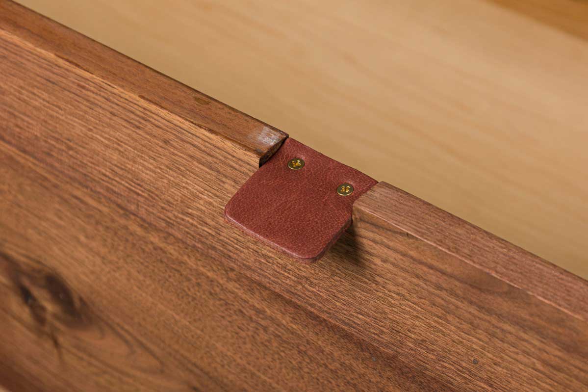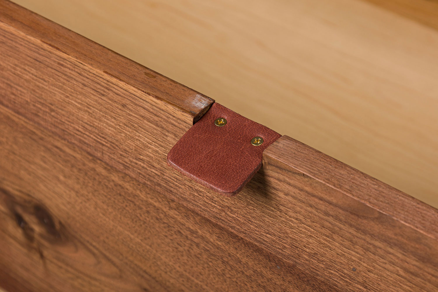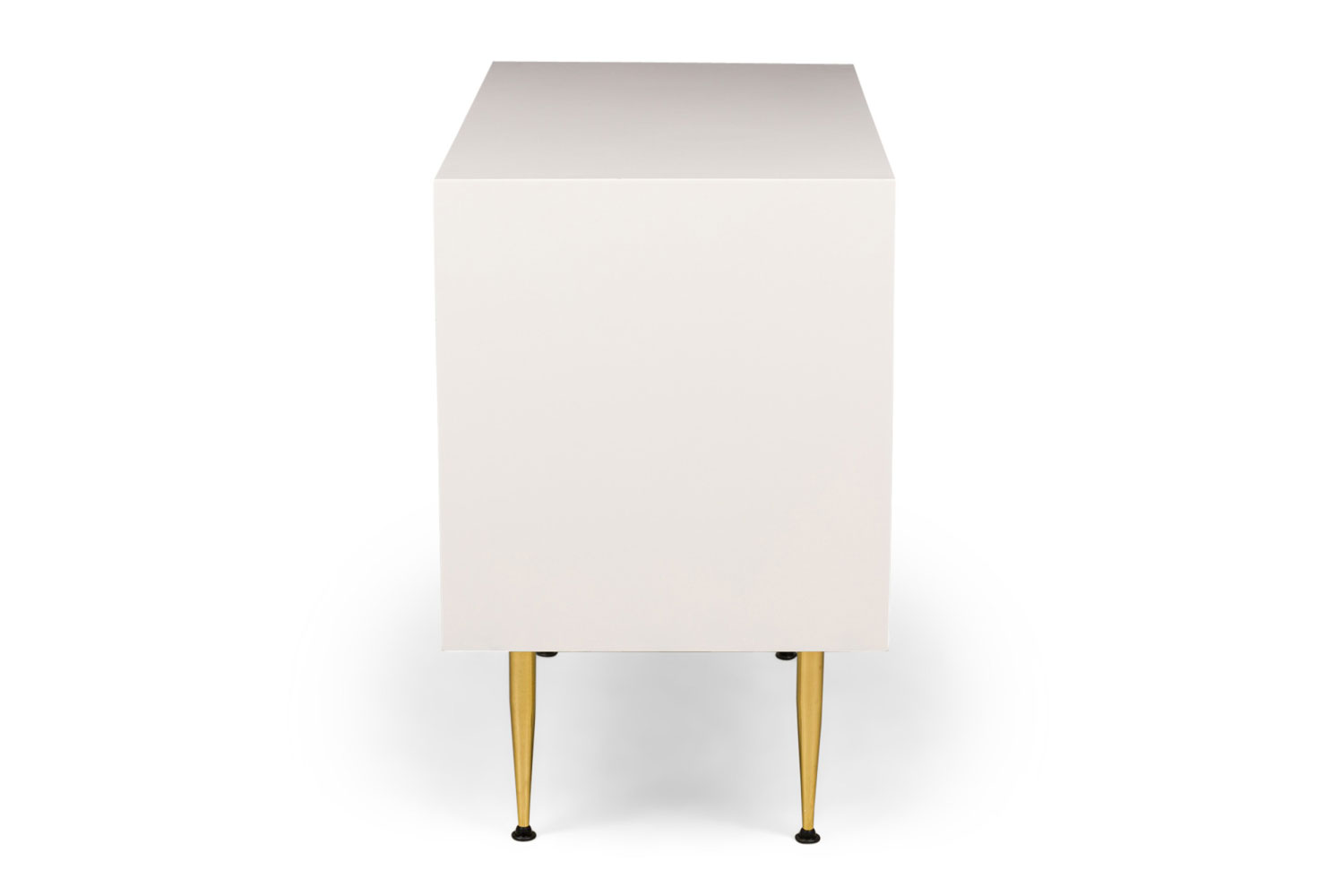 Contemporary / Modern 2-drawer chest featuring a white finished wood cabinet containing 2 drawers with a natural walnut finish, each with two top mounted drawer pulls, resting on brass legs. (Companion chest of drawers: MOD2026, bedside tables: MOD2028)