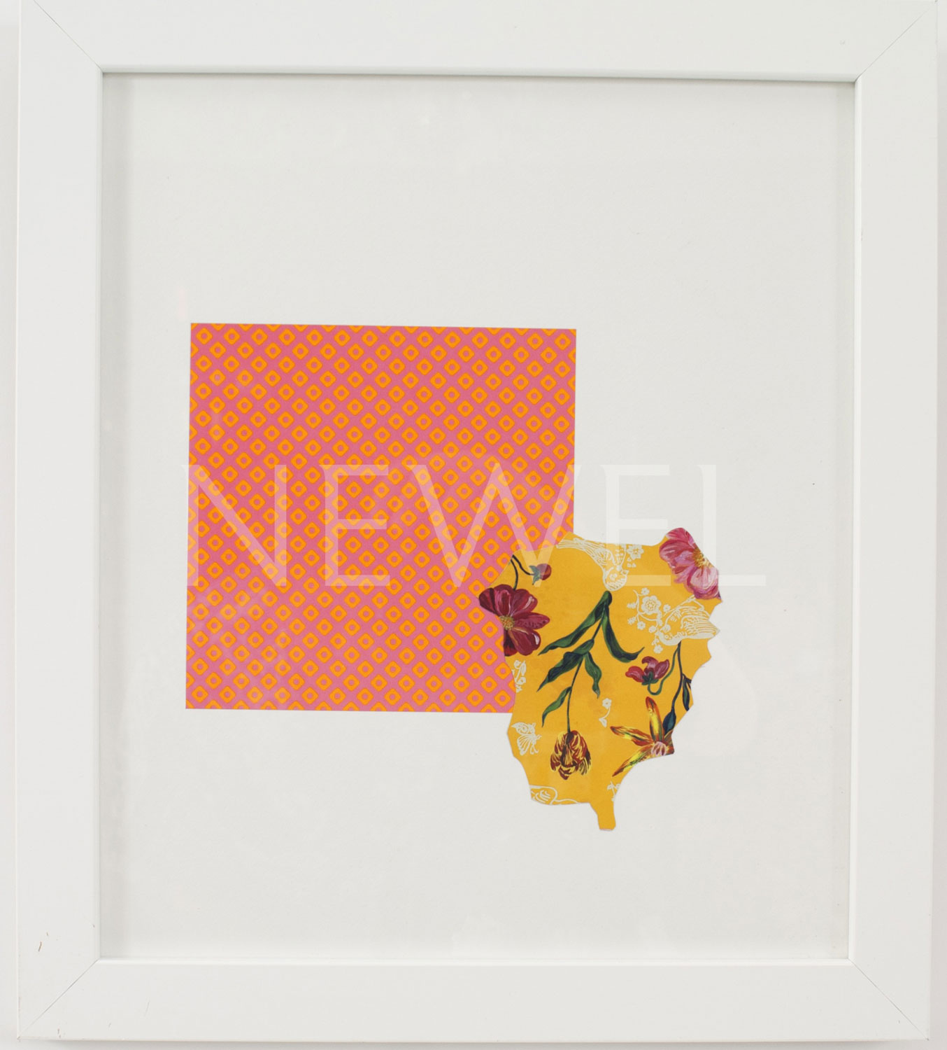 Contemporary pink and yellow patterned origami paper collage on a white background in a white rectangular frame (Companion pieces: AAP209, AAP210, AAP211, AAP212, AAP213)