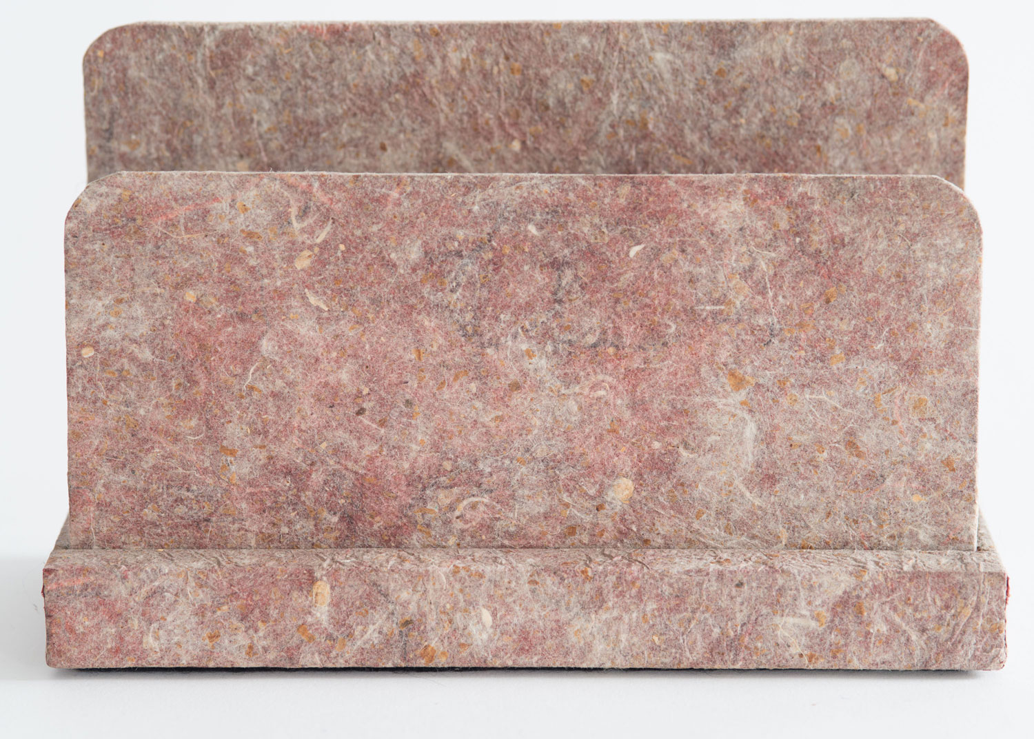 Contemporary cardboard letter holder with textured paper finish in maroon, pink and white