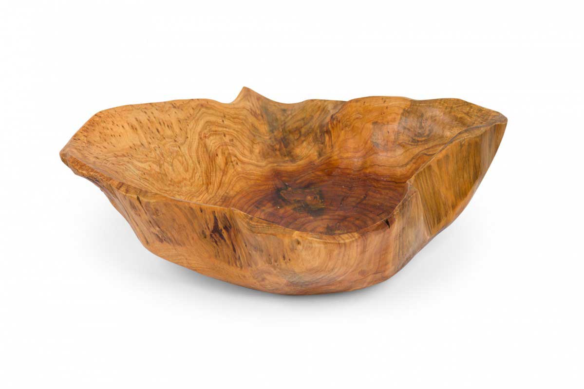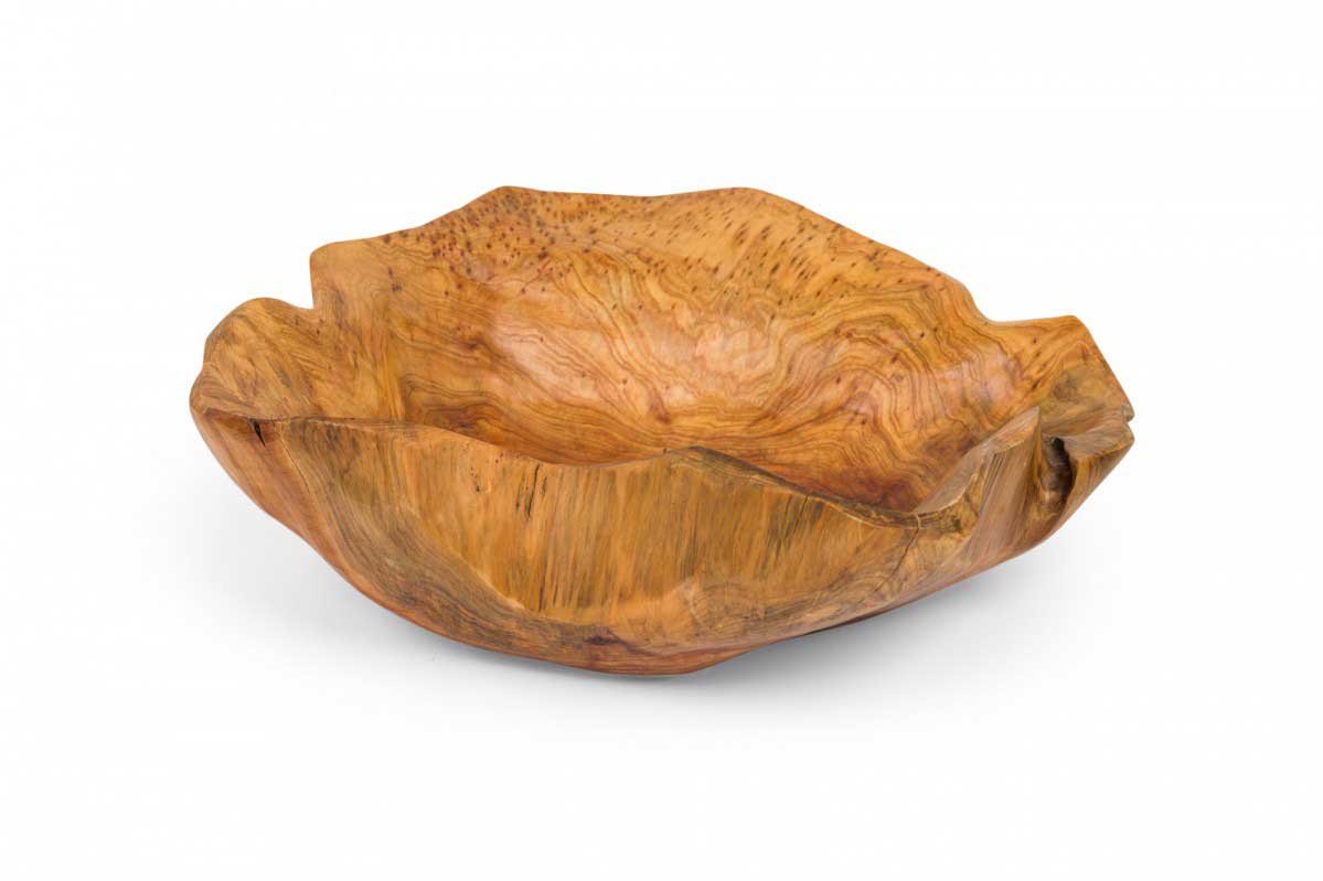 Contemporary Rustic organically-shaped carved olive wood decorative bowl / centerpiece.