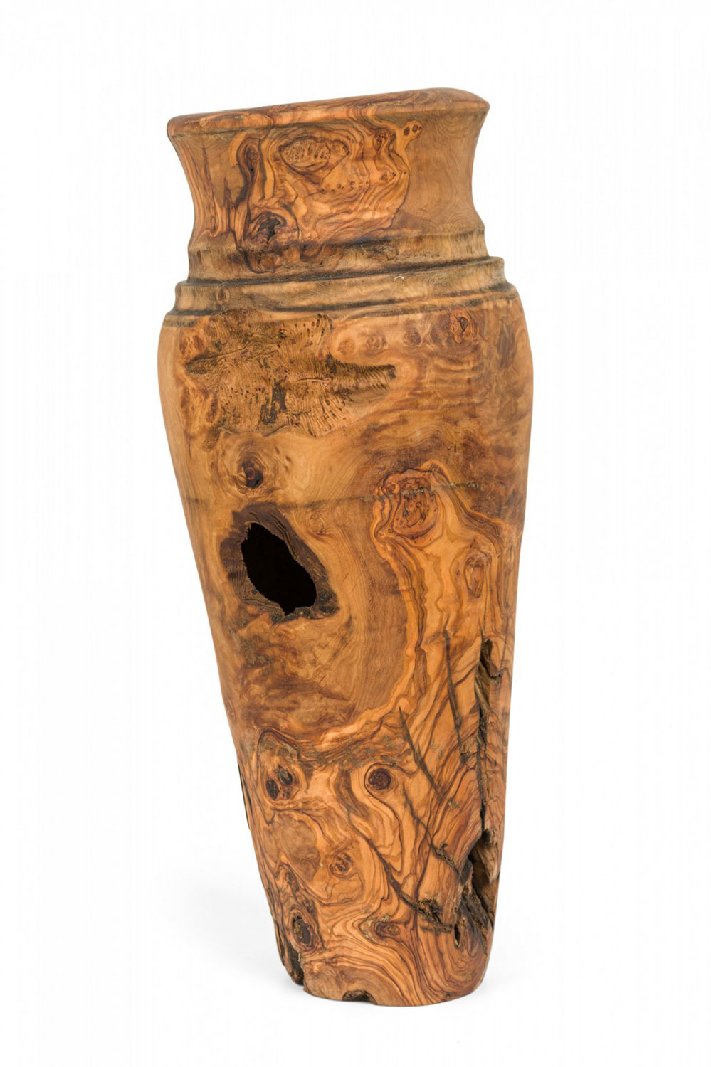 * Condition: Contains natural holes from wood knots throughout form.