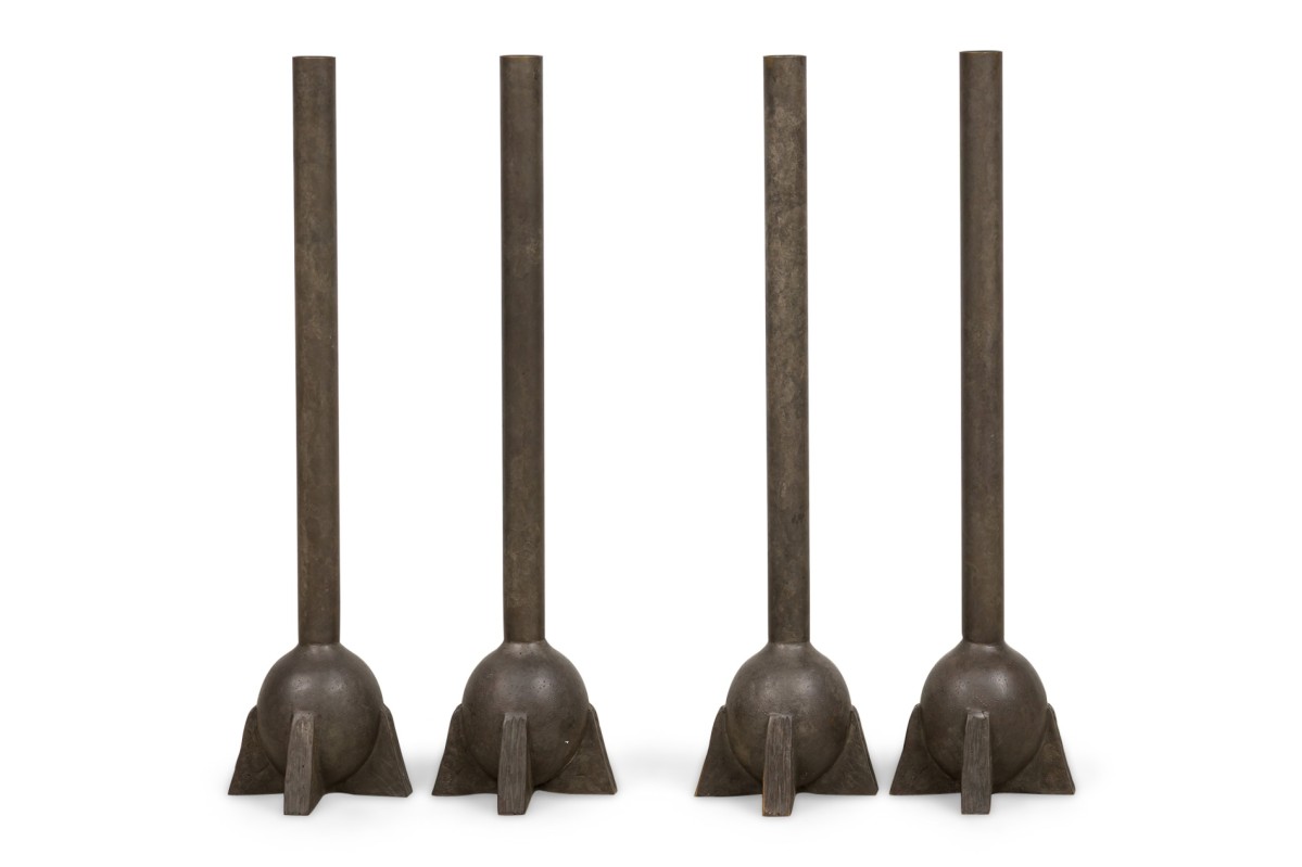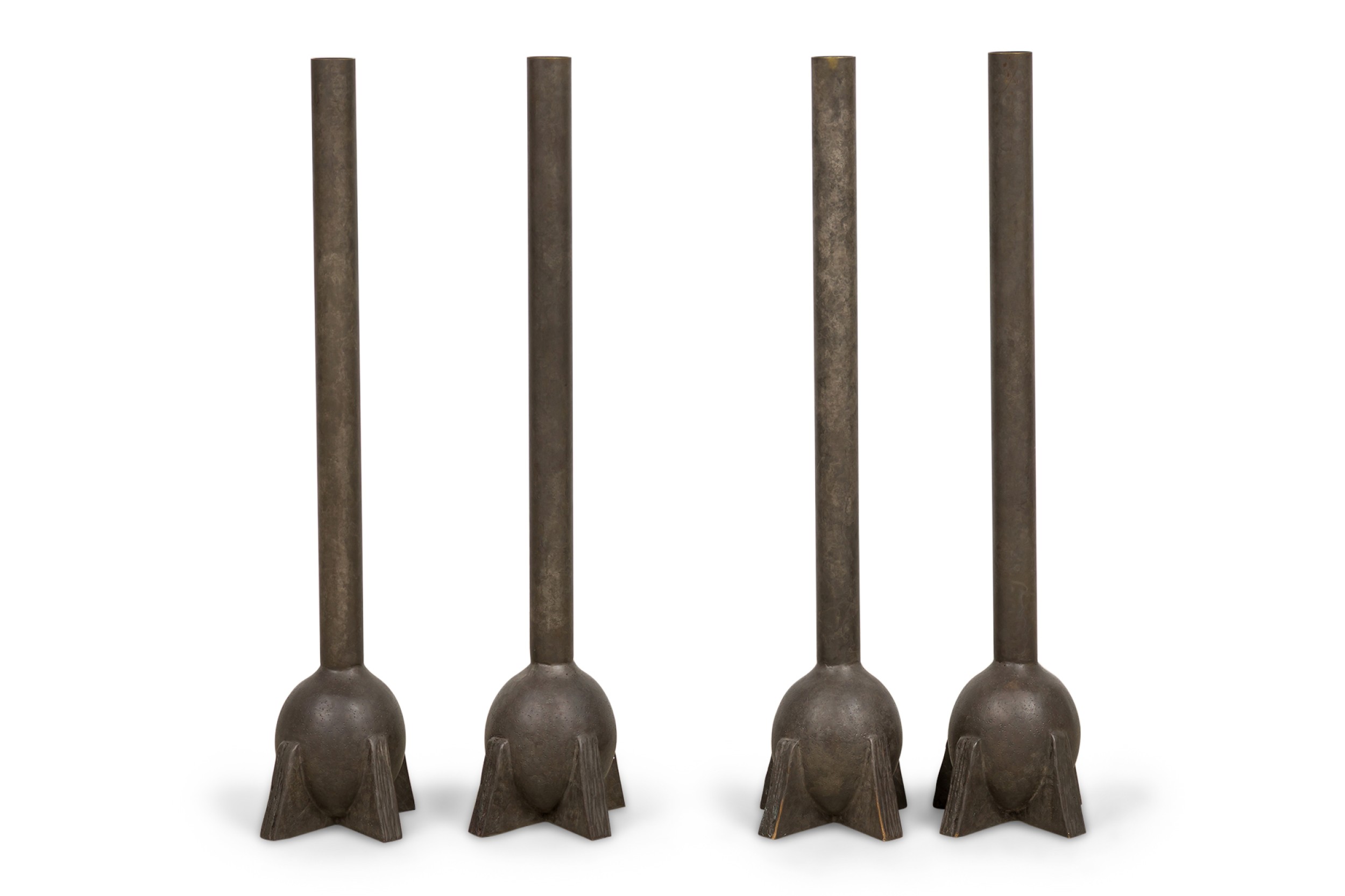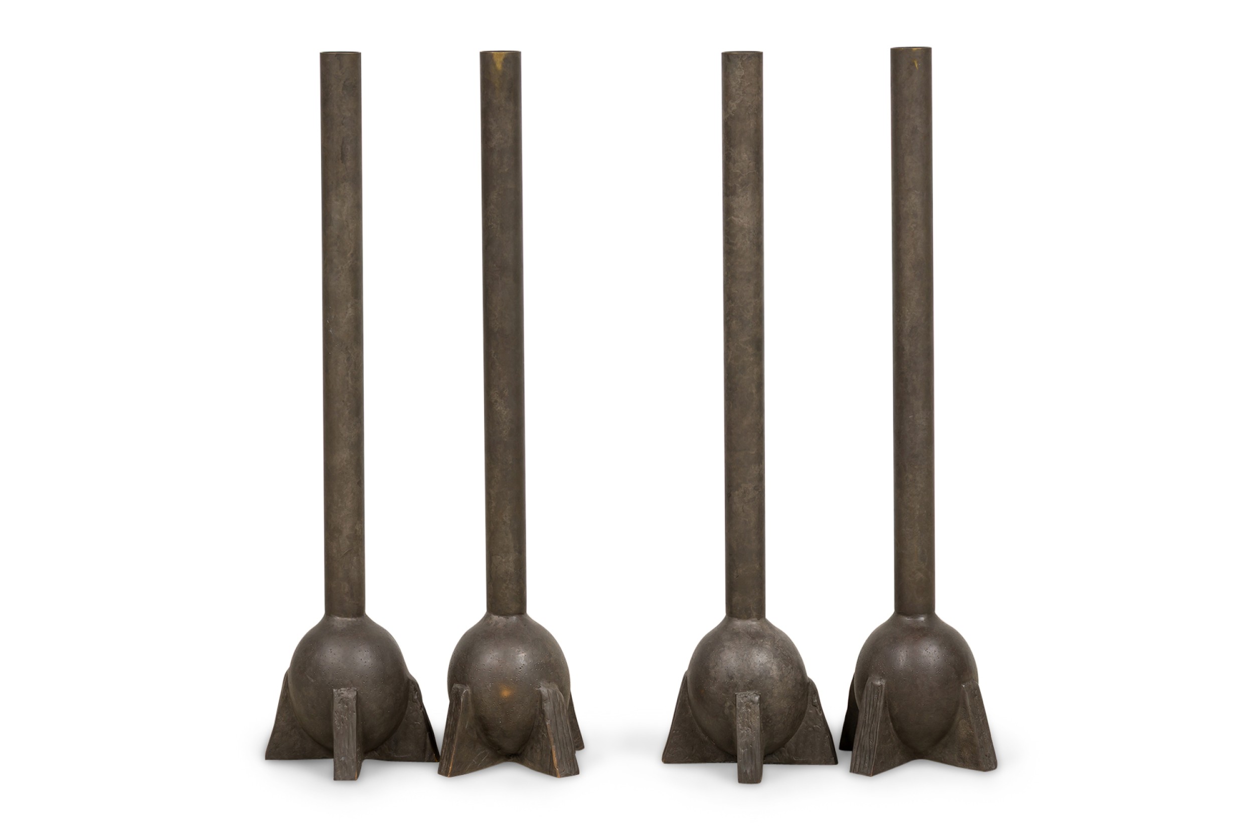 4 American Contemporary Swan Neck Bronze Sculptural Tall Urn