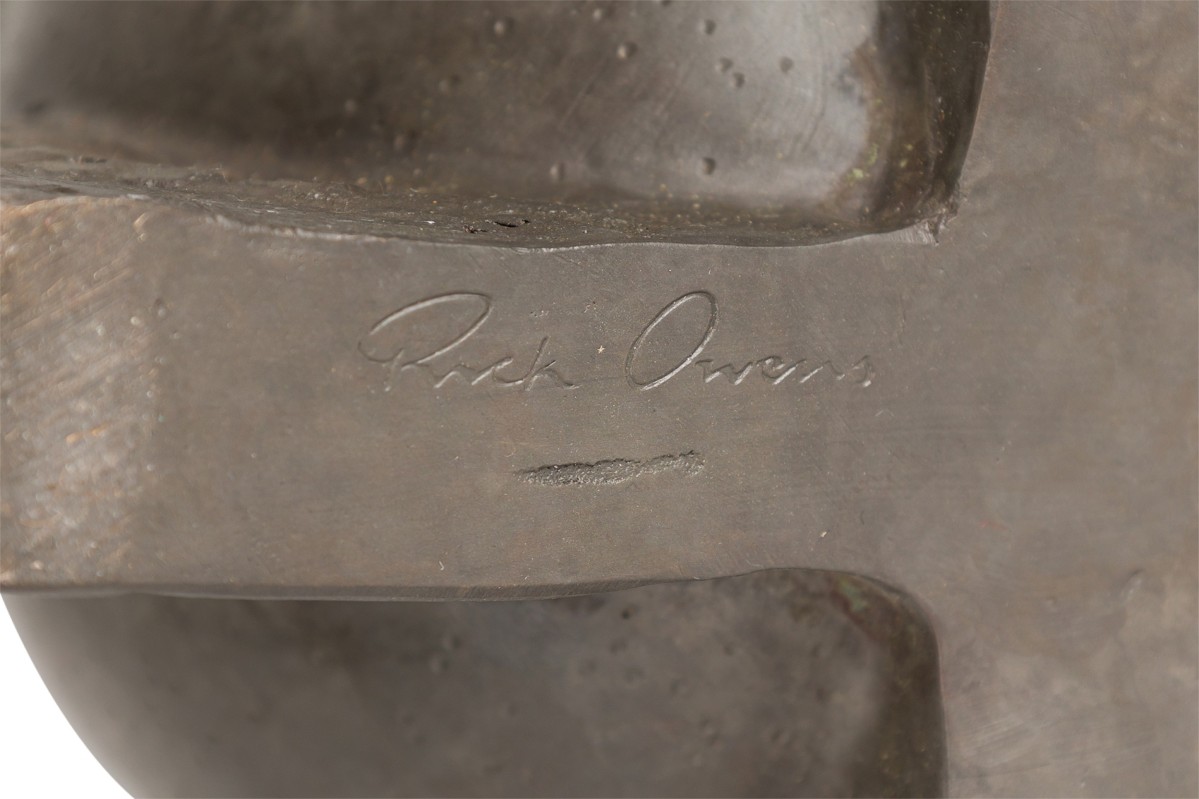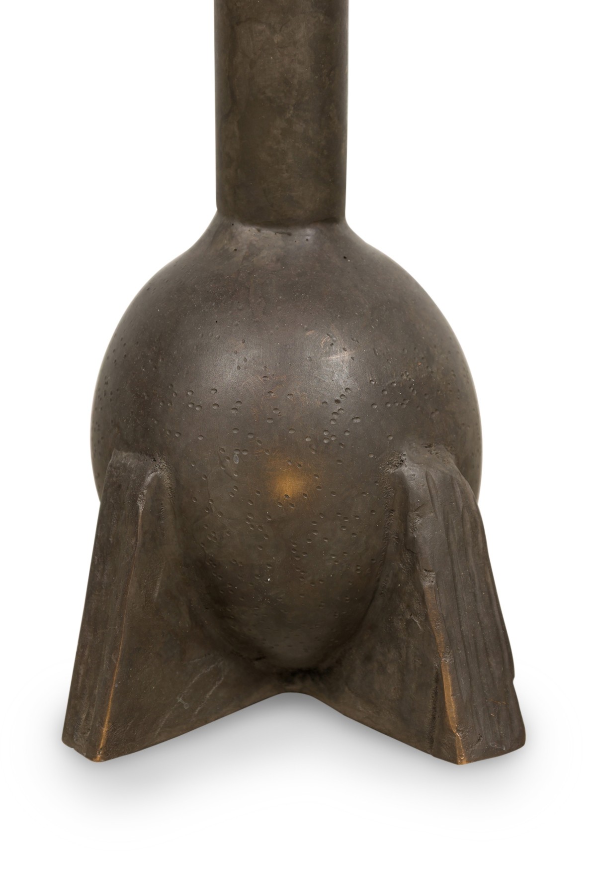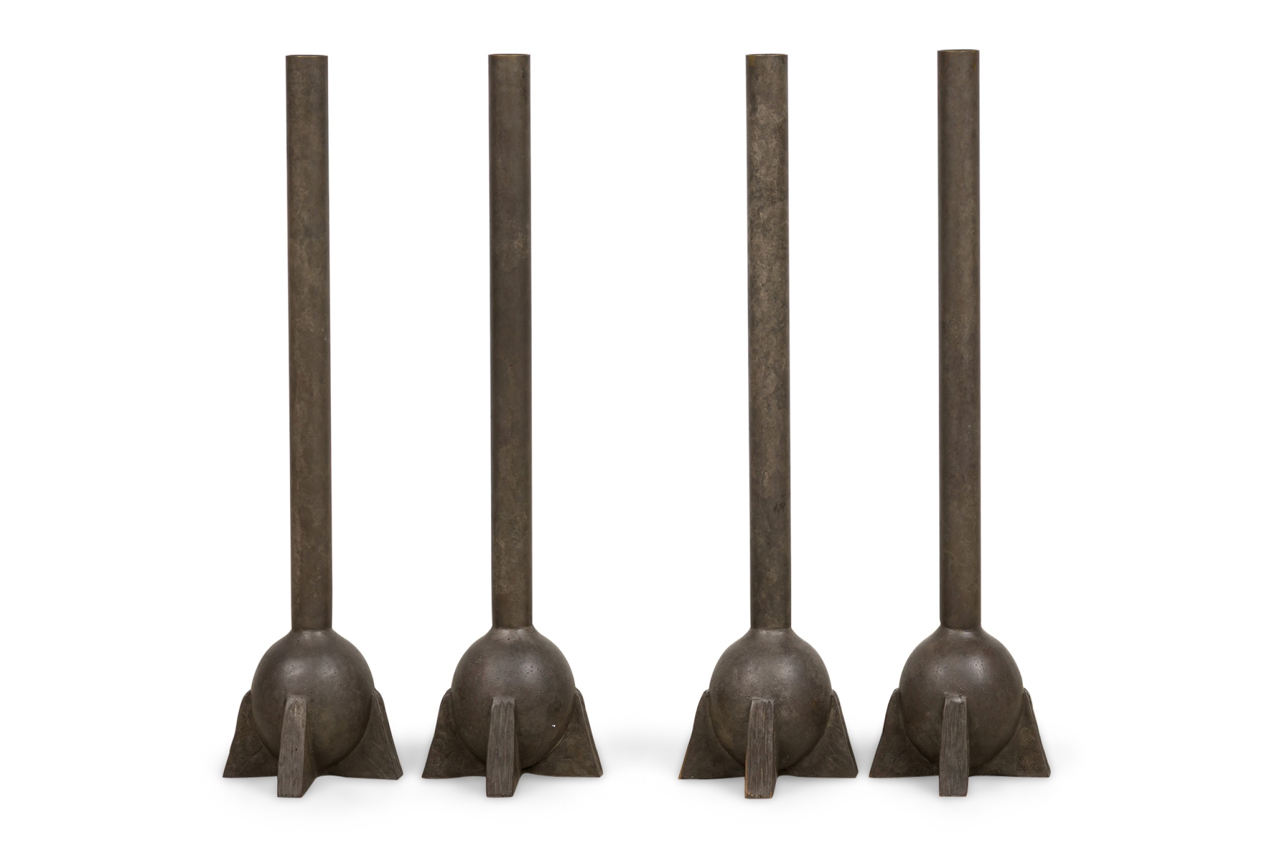 4 Contemporary "Swan Neck" bronze sculptural urns with spherical bodies resting on three triangular ledges featuring elongated necks in black finish (PRICED EACH)