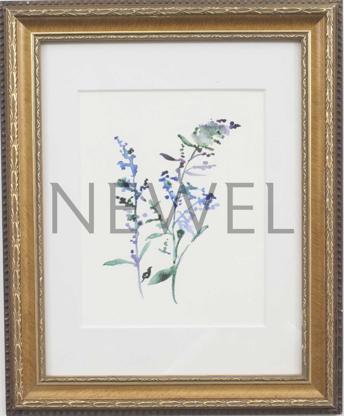 Contemporary watercolor painting of a flower in a rectangular gilt wood frame with carved details (Companion piece: AAP190)