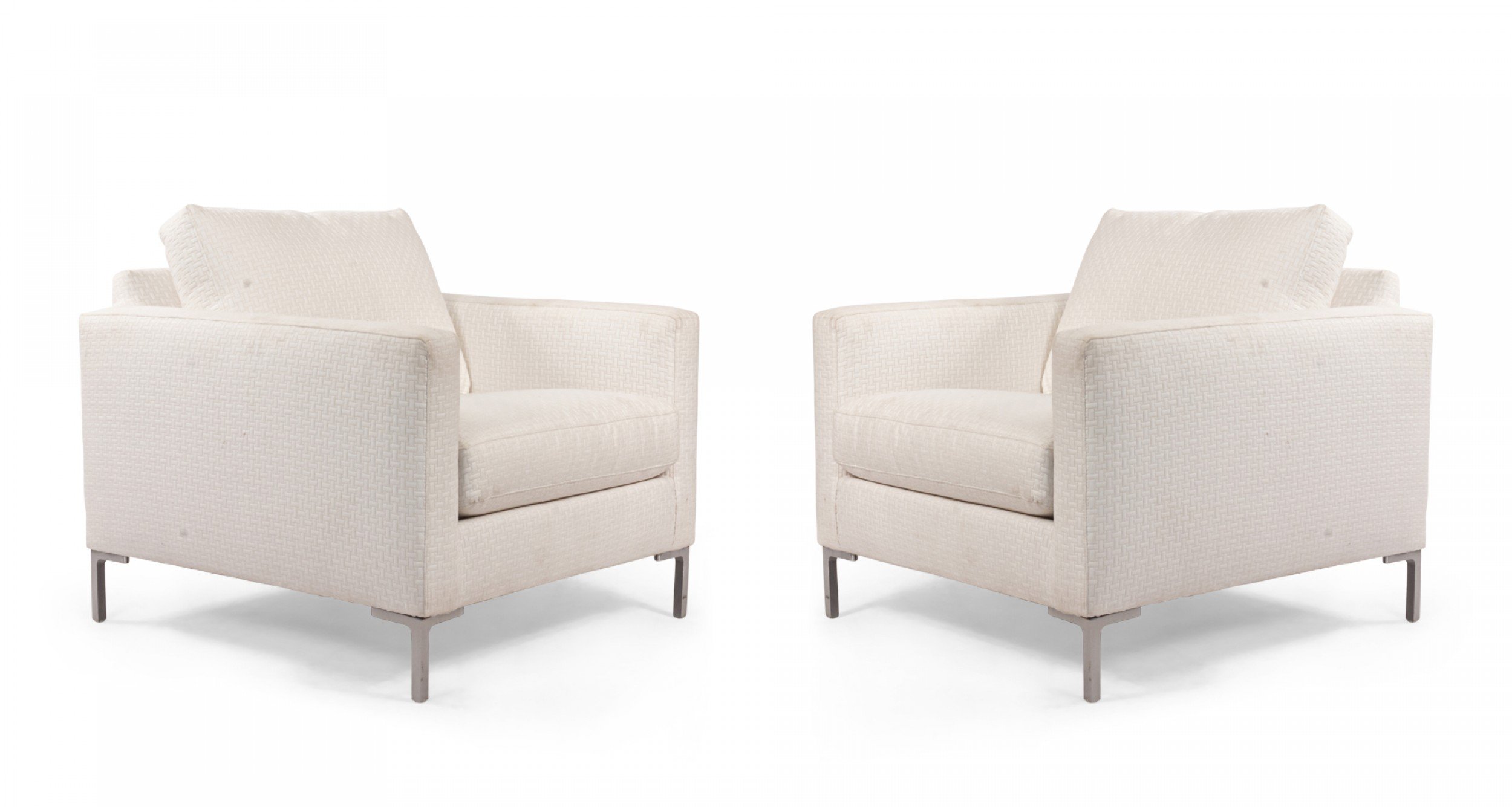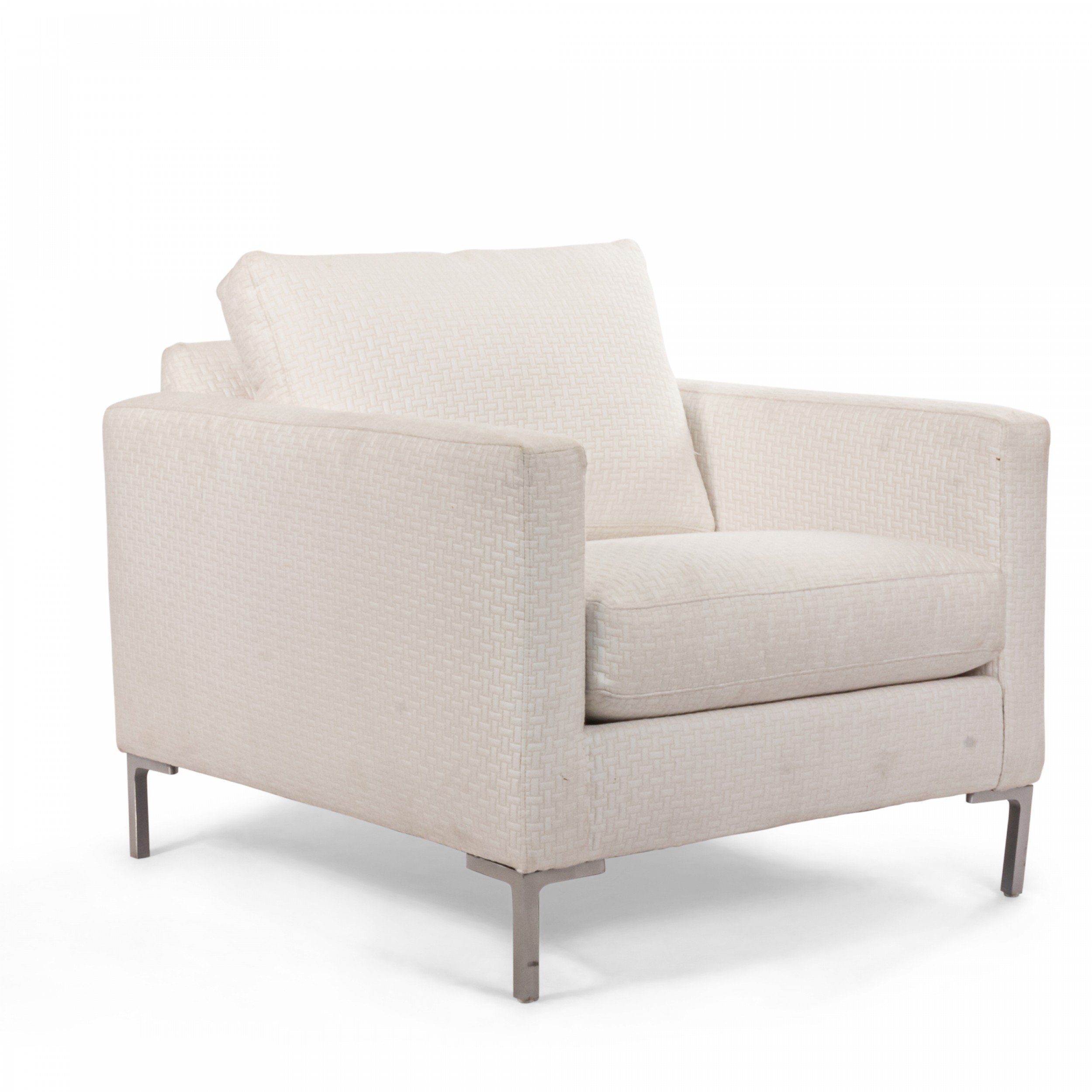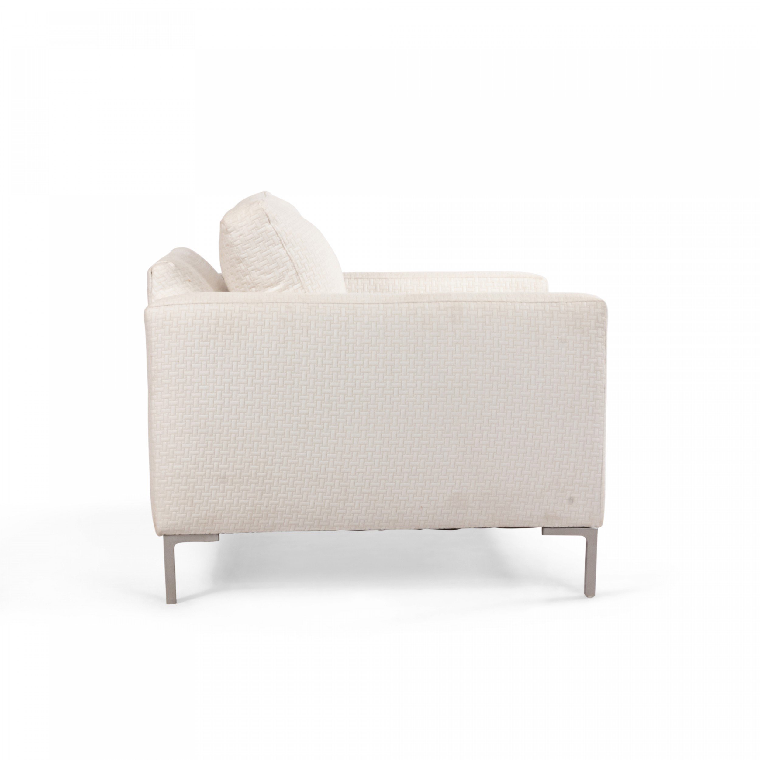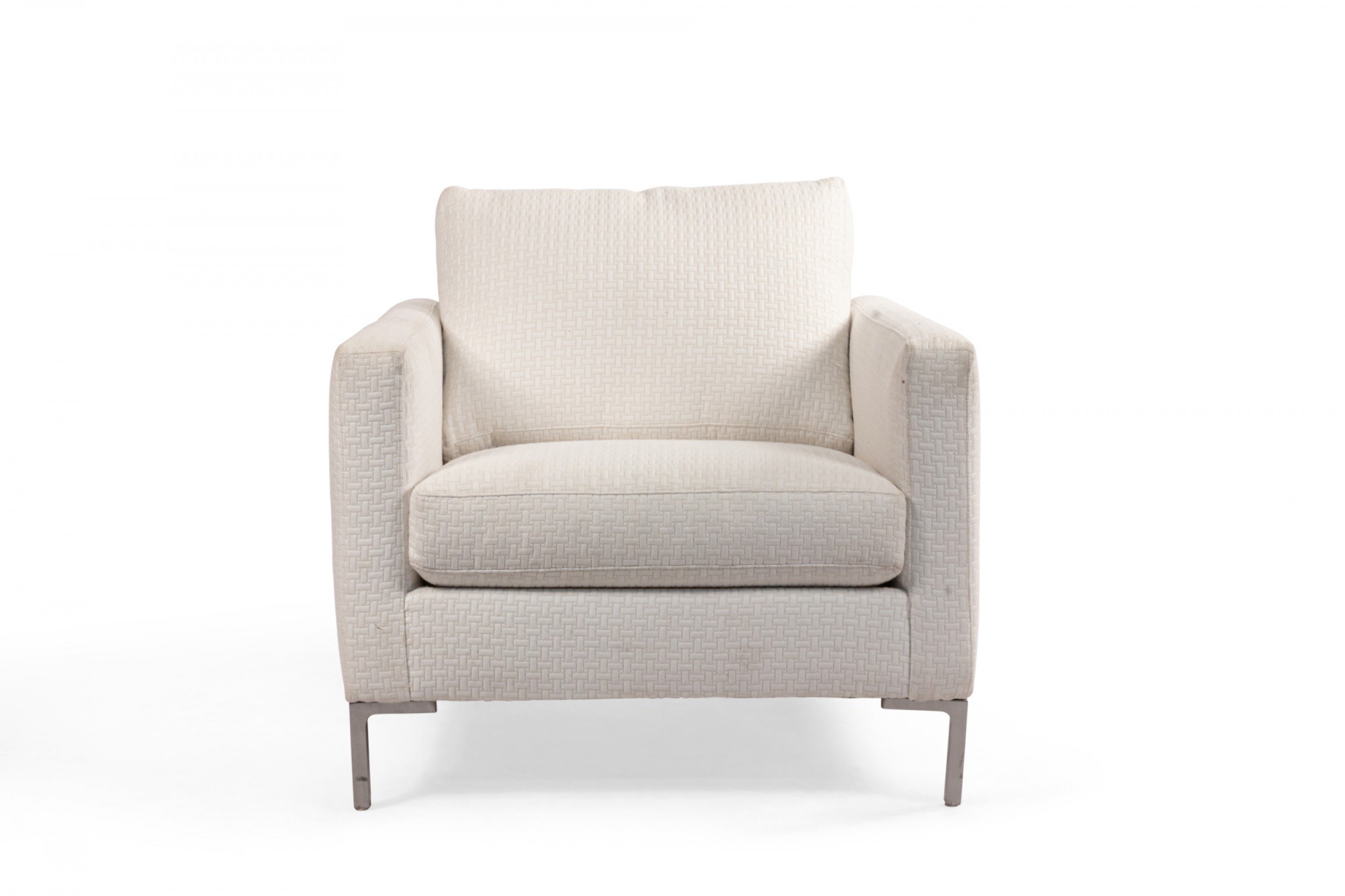2 Contemporary-style white upholstered armchair with burnished silver metal corner legs (PRICED EACH) (Related items: matching sofa 060889, matching loveseat 060891)