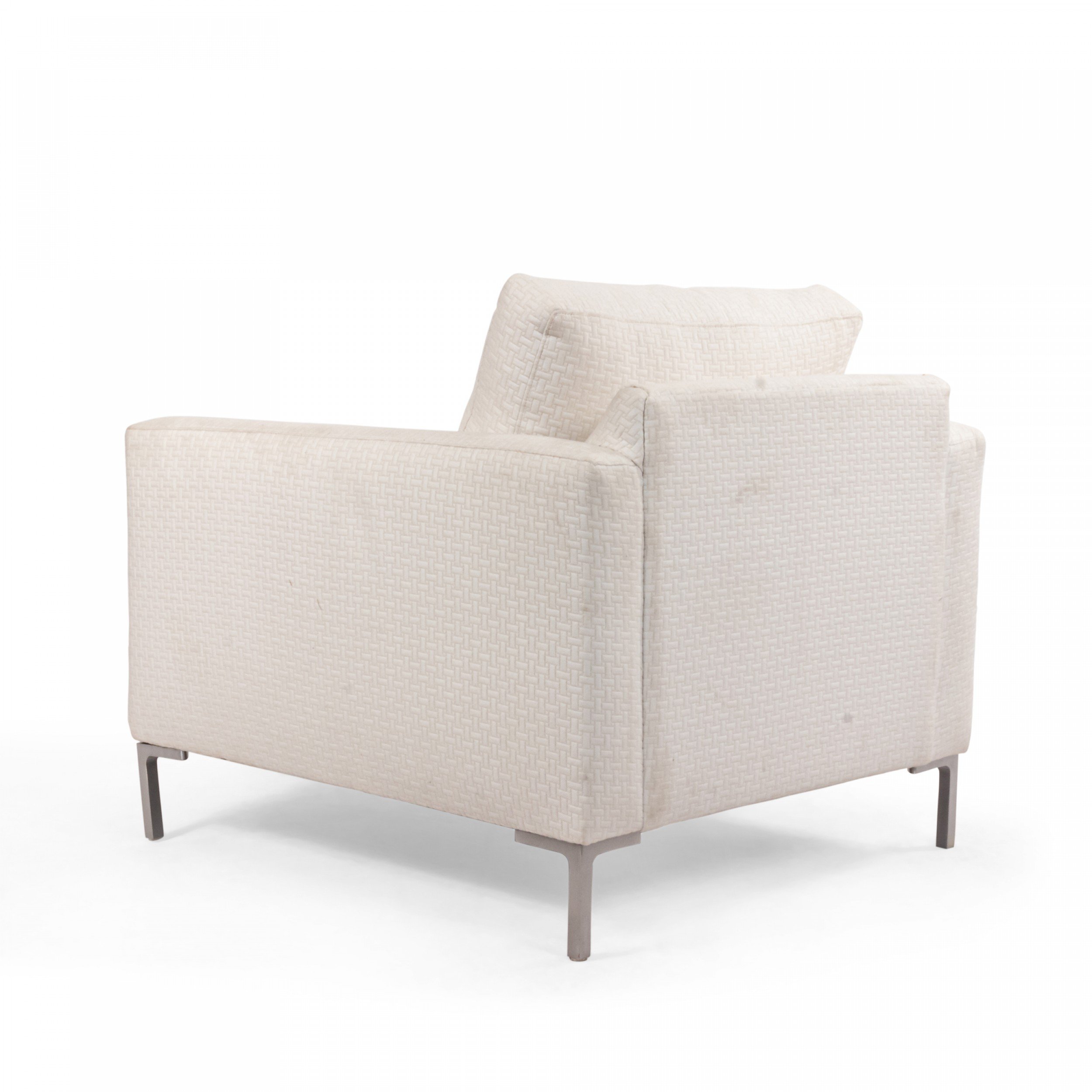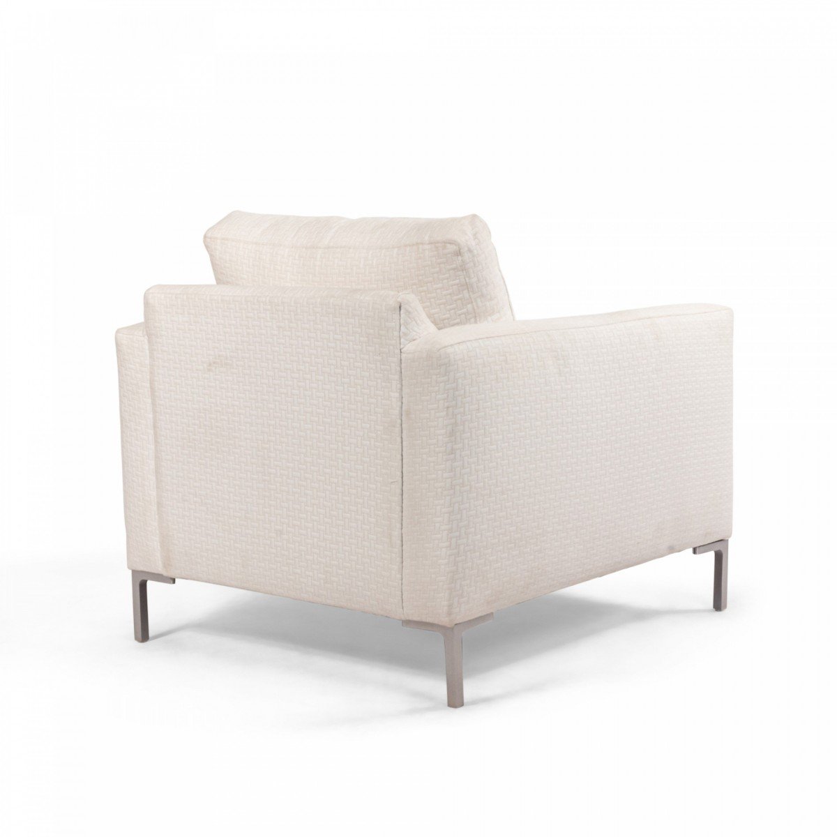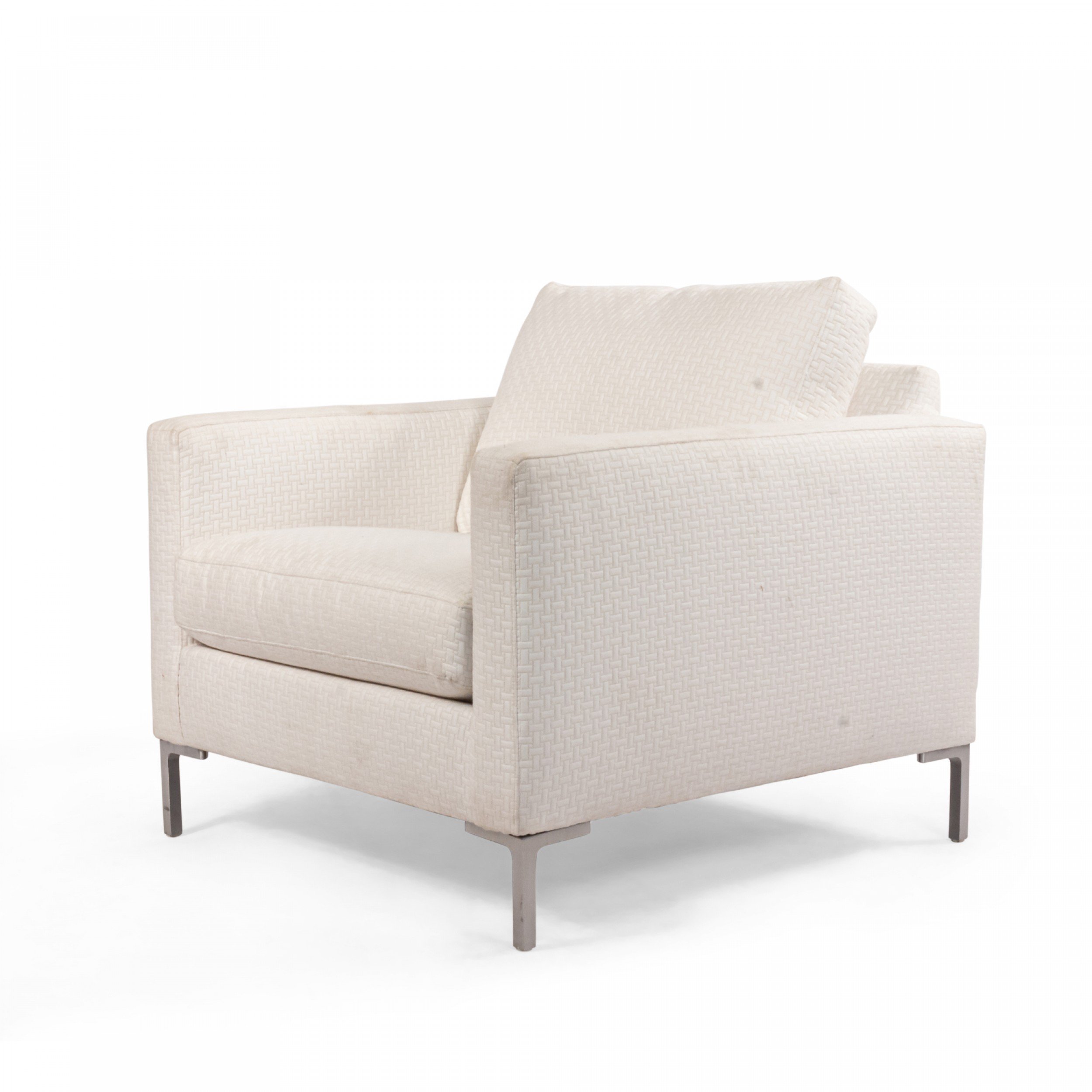 2 Contemporary-style white upholstered armchair with burnished silver metal corner legs (PRICED EACH) (Related items: matching sofa 060889, matching loveseat 060891)