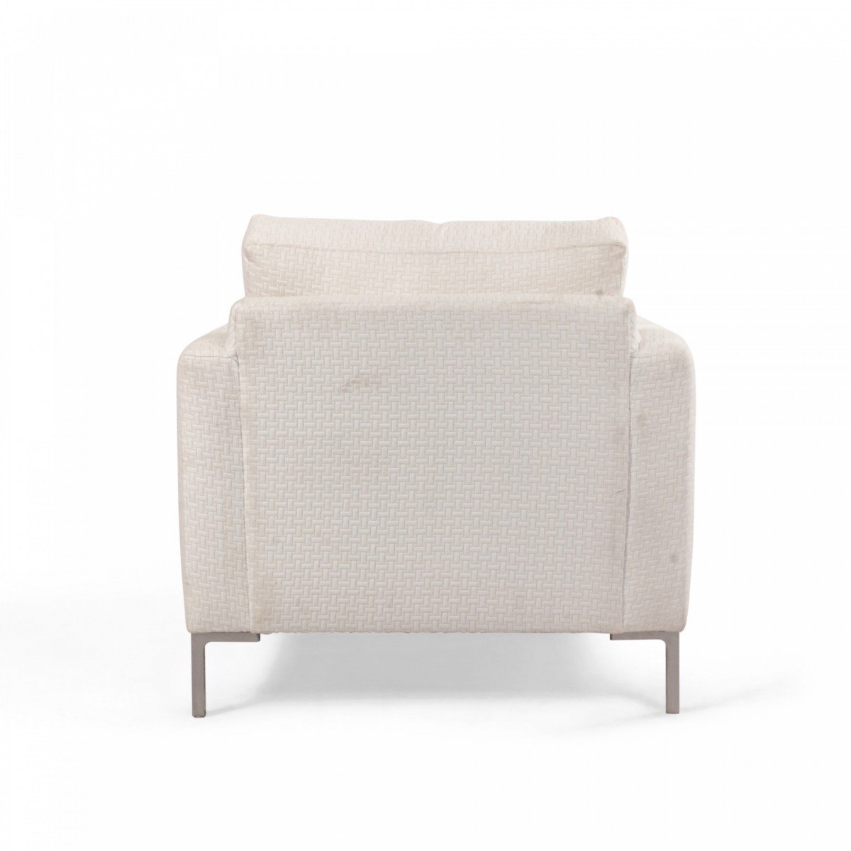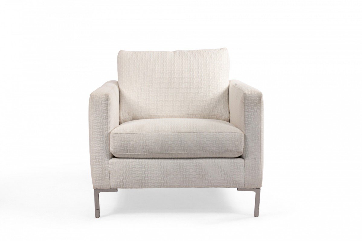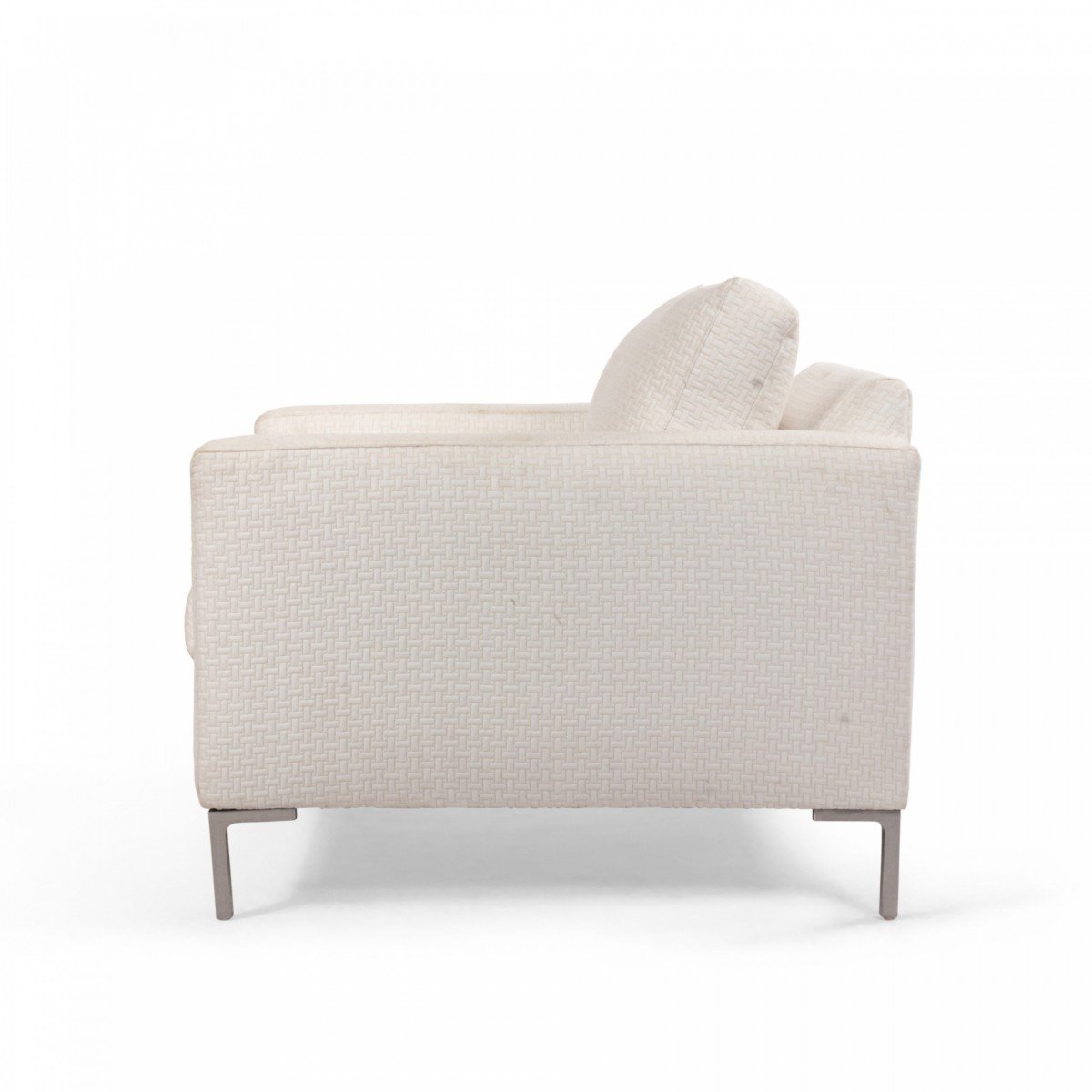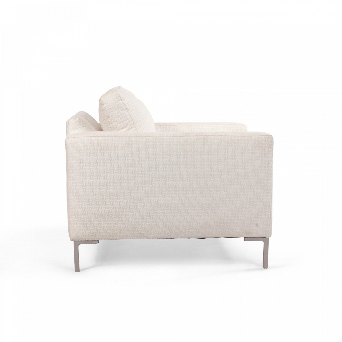 2 Contemporary-style white upholstered armchair with burnished silver metal corner legs (PRICED EACH) (Related items: matching sofa 060889, matching loveseat 060891)