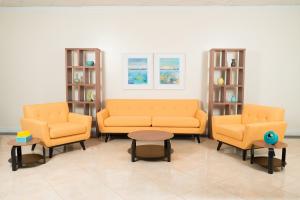 Contemporary Wood and Black Metal Metal Coffee Table