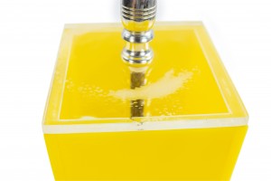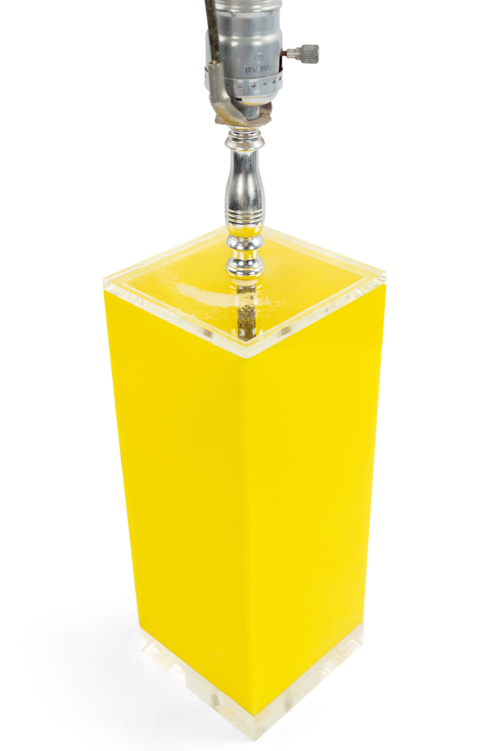 2 Contemporary American yellow square Lucite table lamps with clear Lucite top and bottom (PRICED EACH)