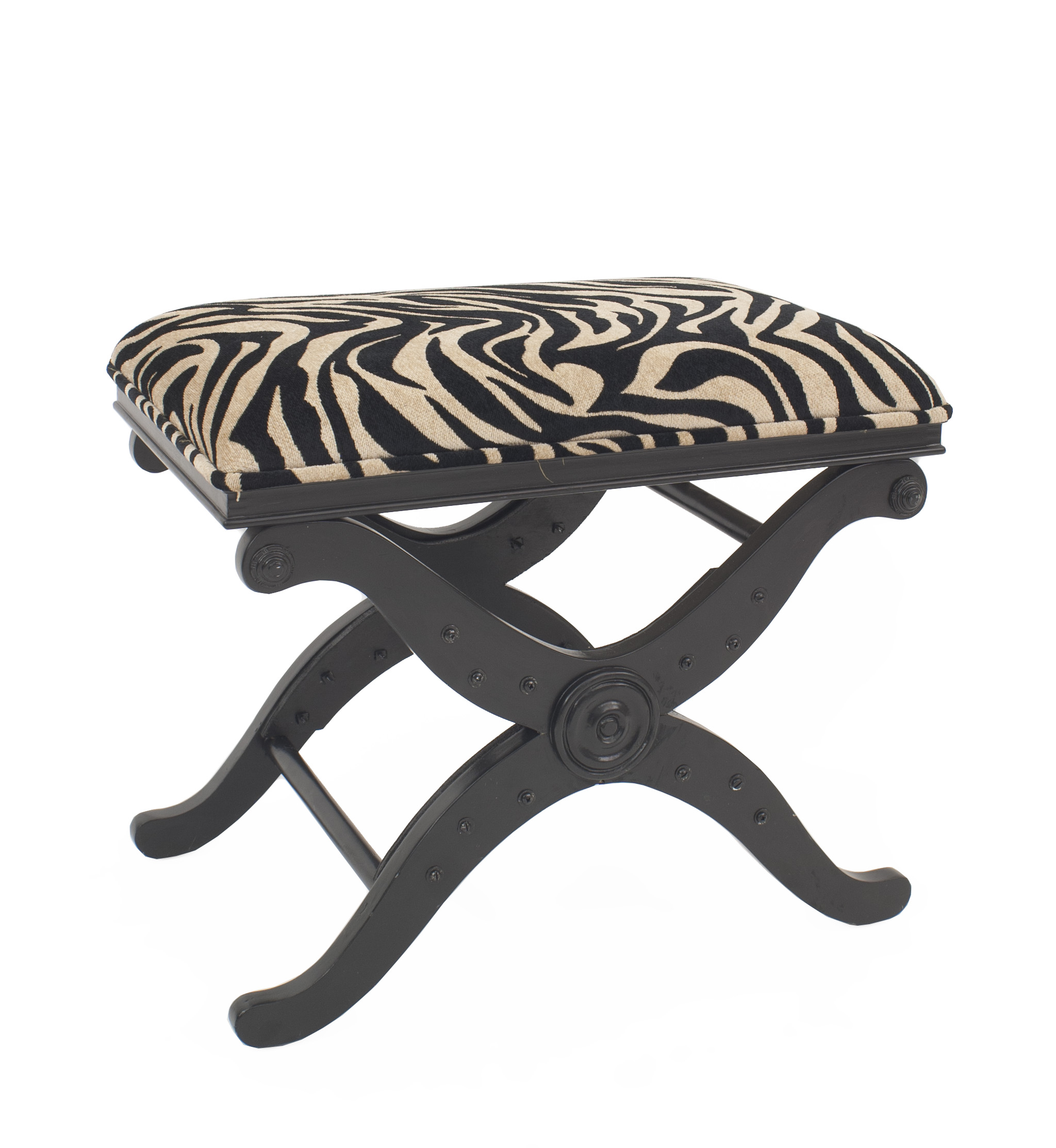 Contemporary cross-legged bench/stool with zebra print upholstery