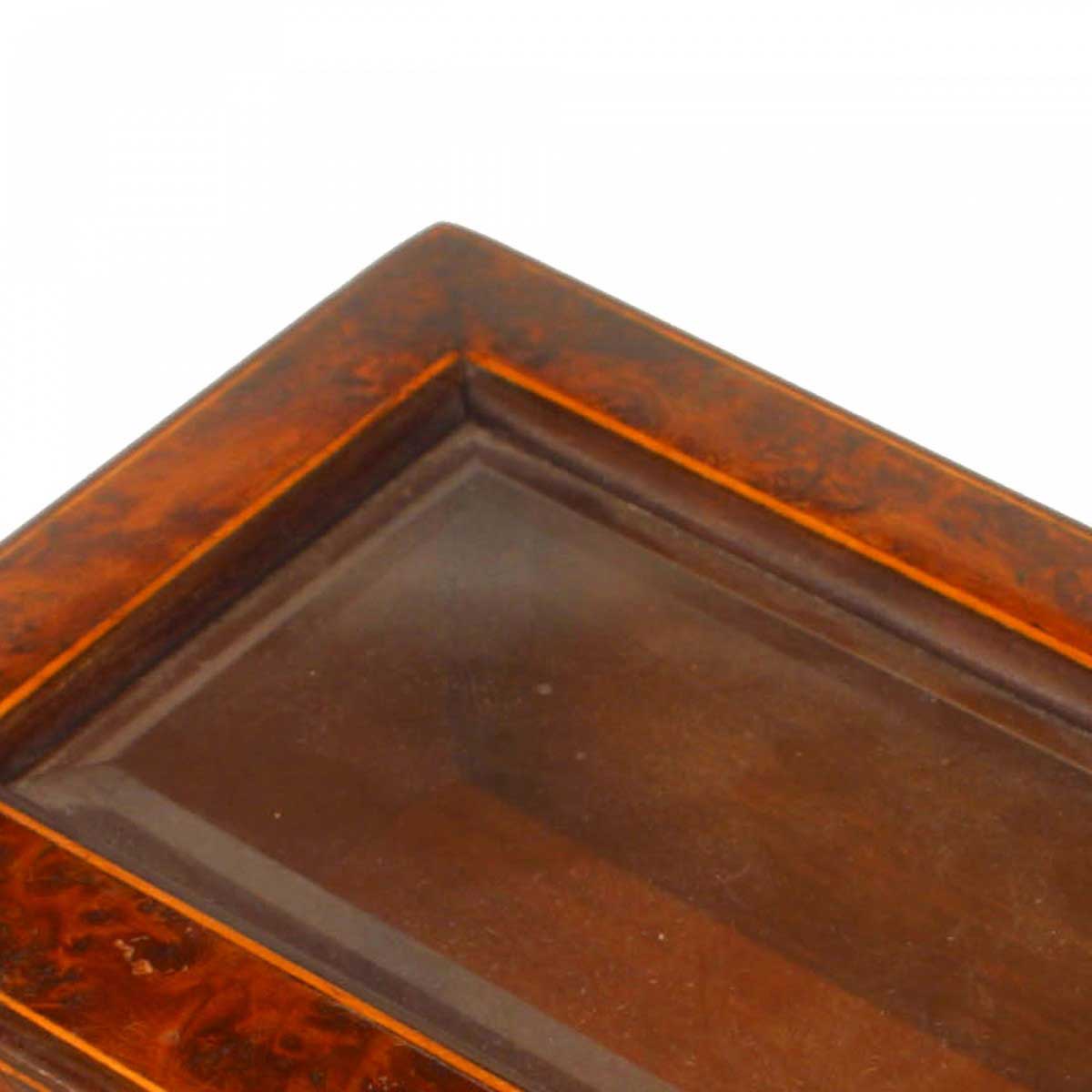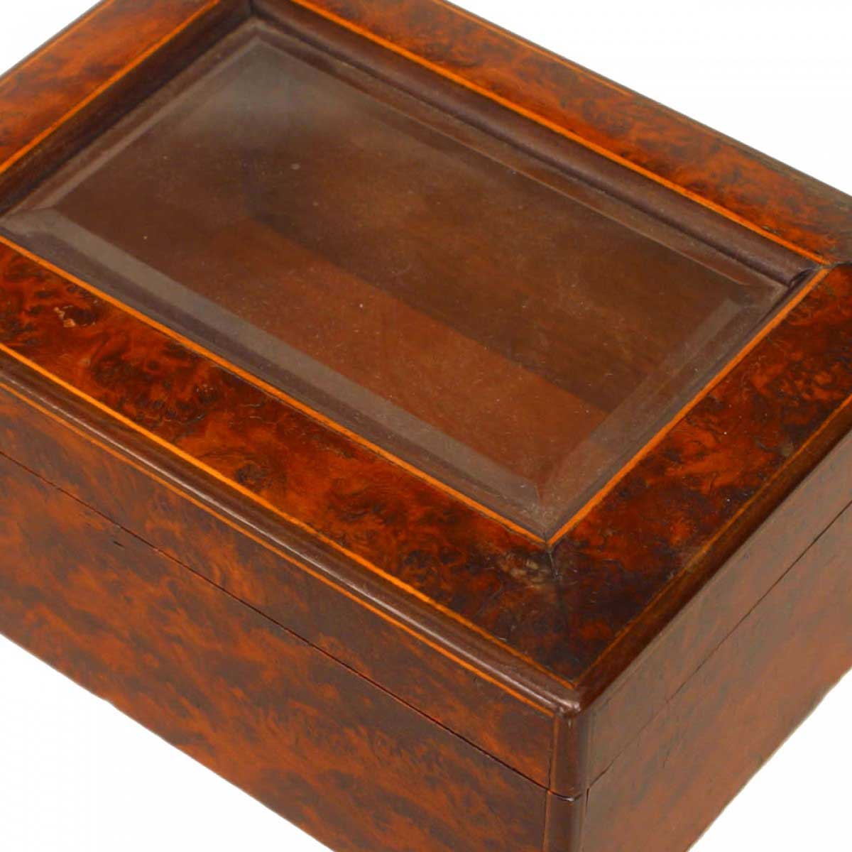 Continental Austrian burl walnut and satinwood banded small box with a bevelled glass inset top