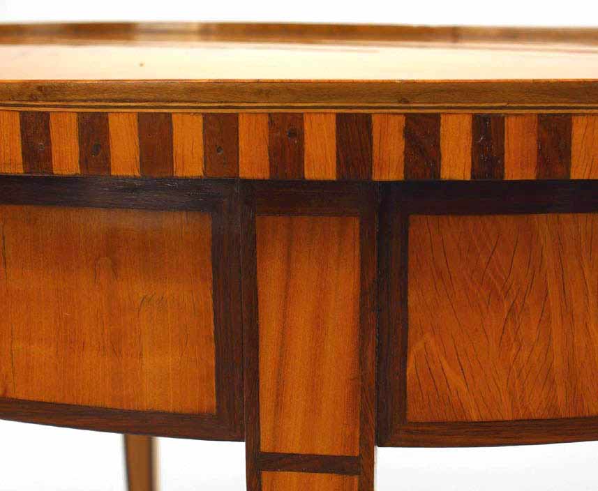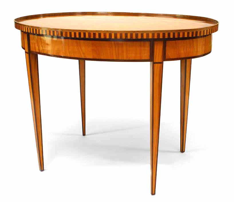 Continental Dutch (18/19th Century) oval satinwood and rosewood inlaid 4 legged center table with gallery and inlaid medallion center.