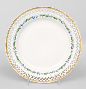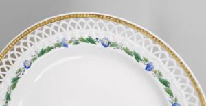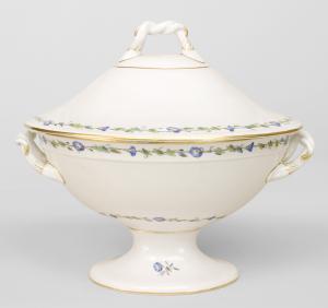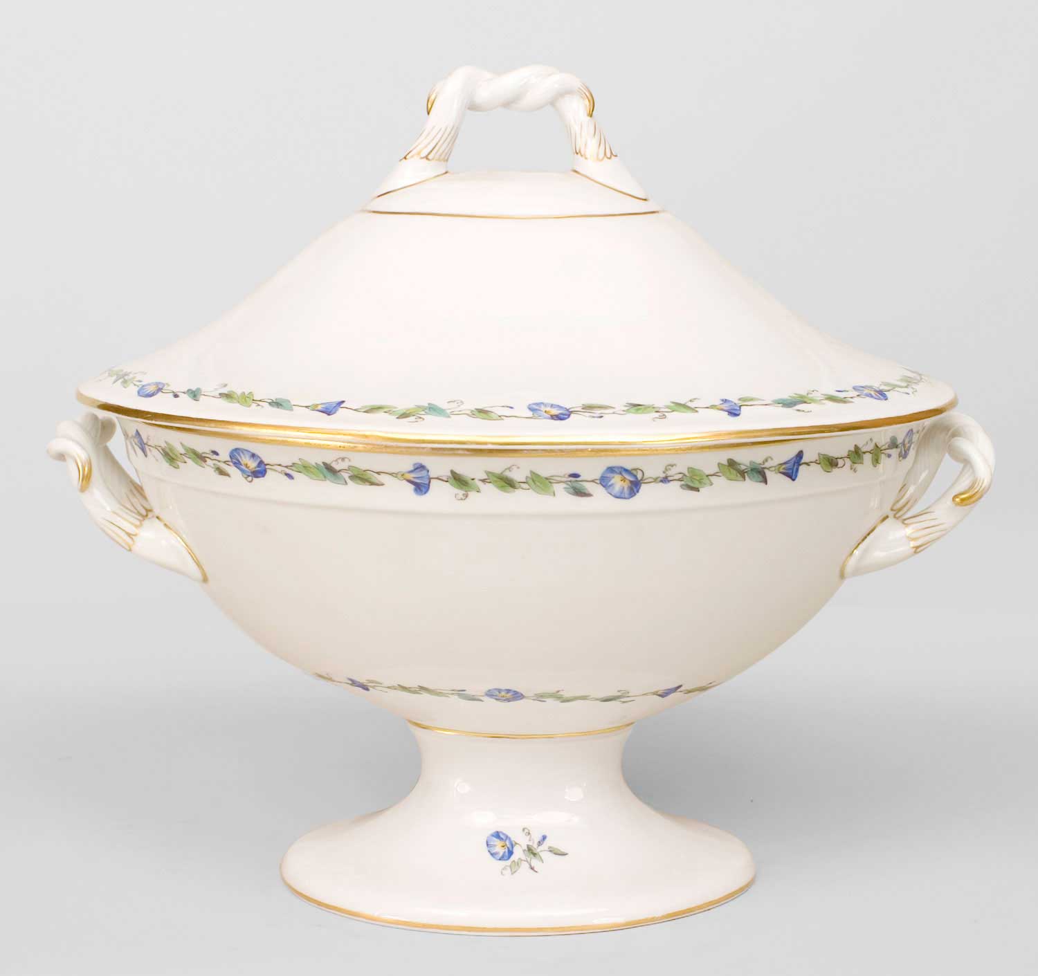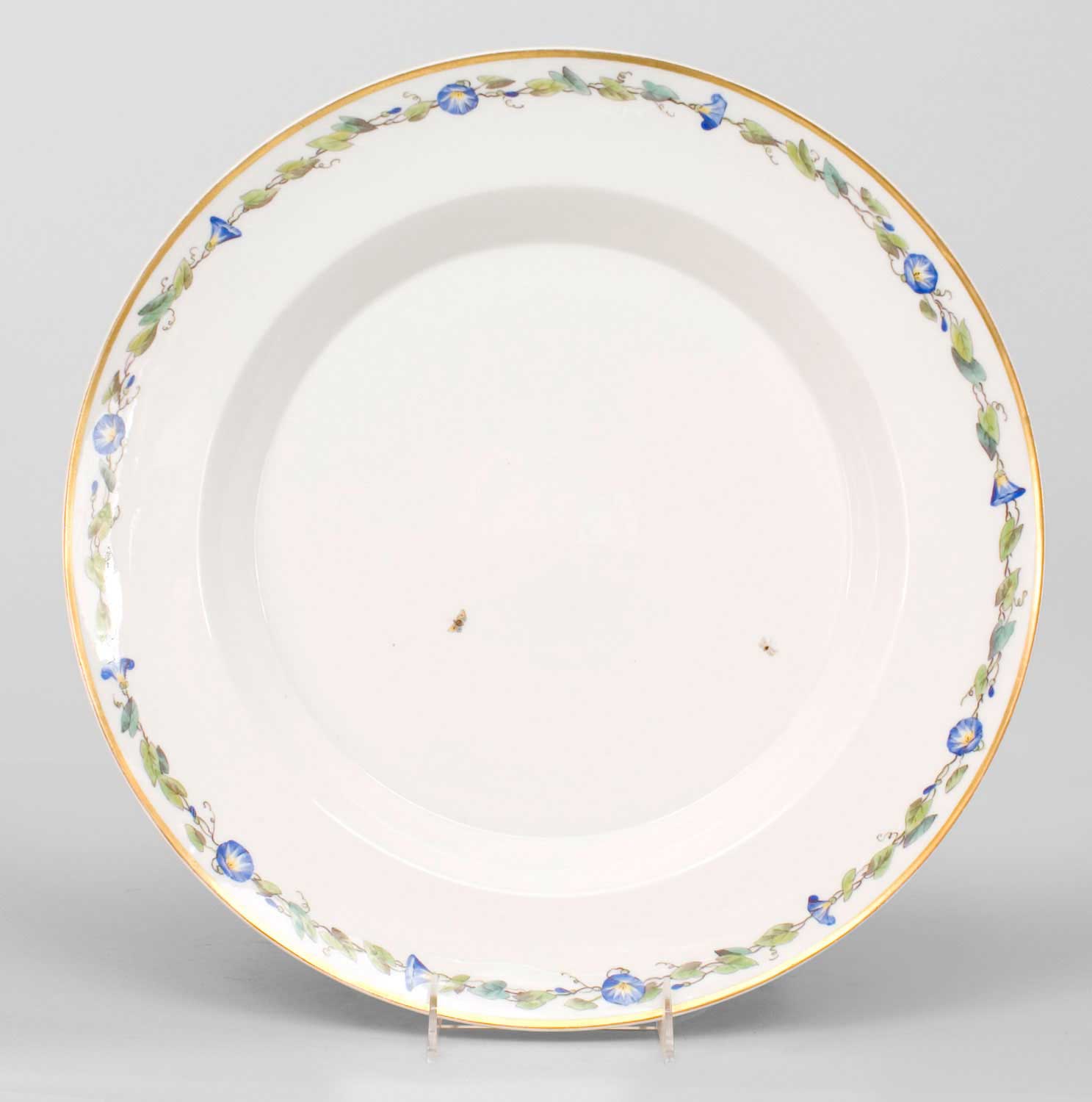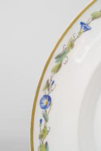 78 Piece Continental German (18/19th Century) dinner service with a blue "Morning Glory" design and gilt trim (mfg by KPM, Royal Berlin)