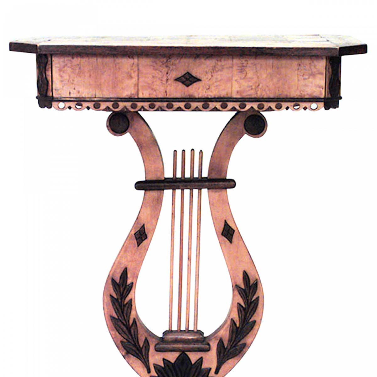 Choose one of the options below.Continental Neoclassic Karelian Birch Lyre Side Table