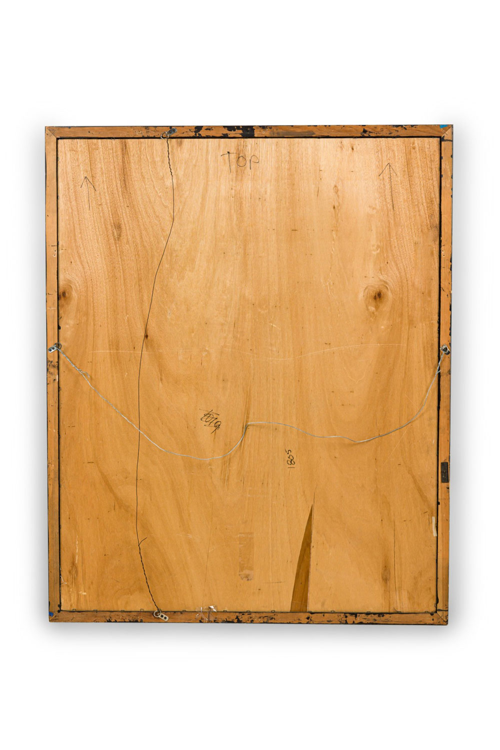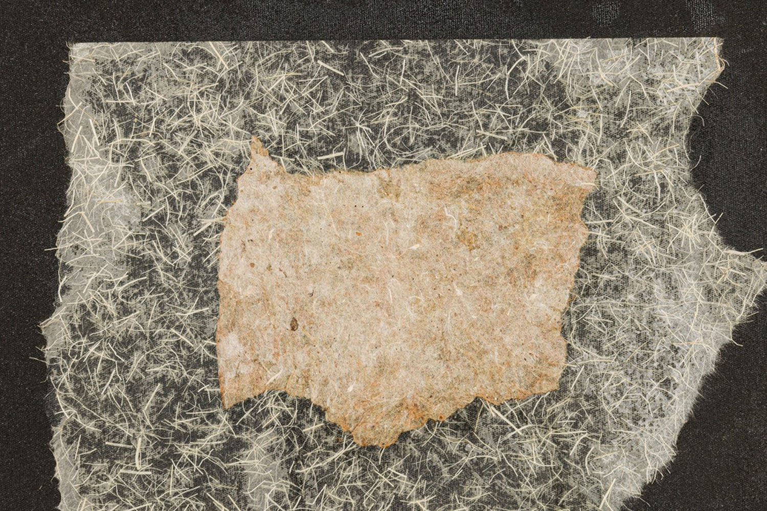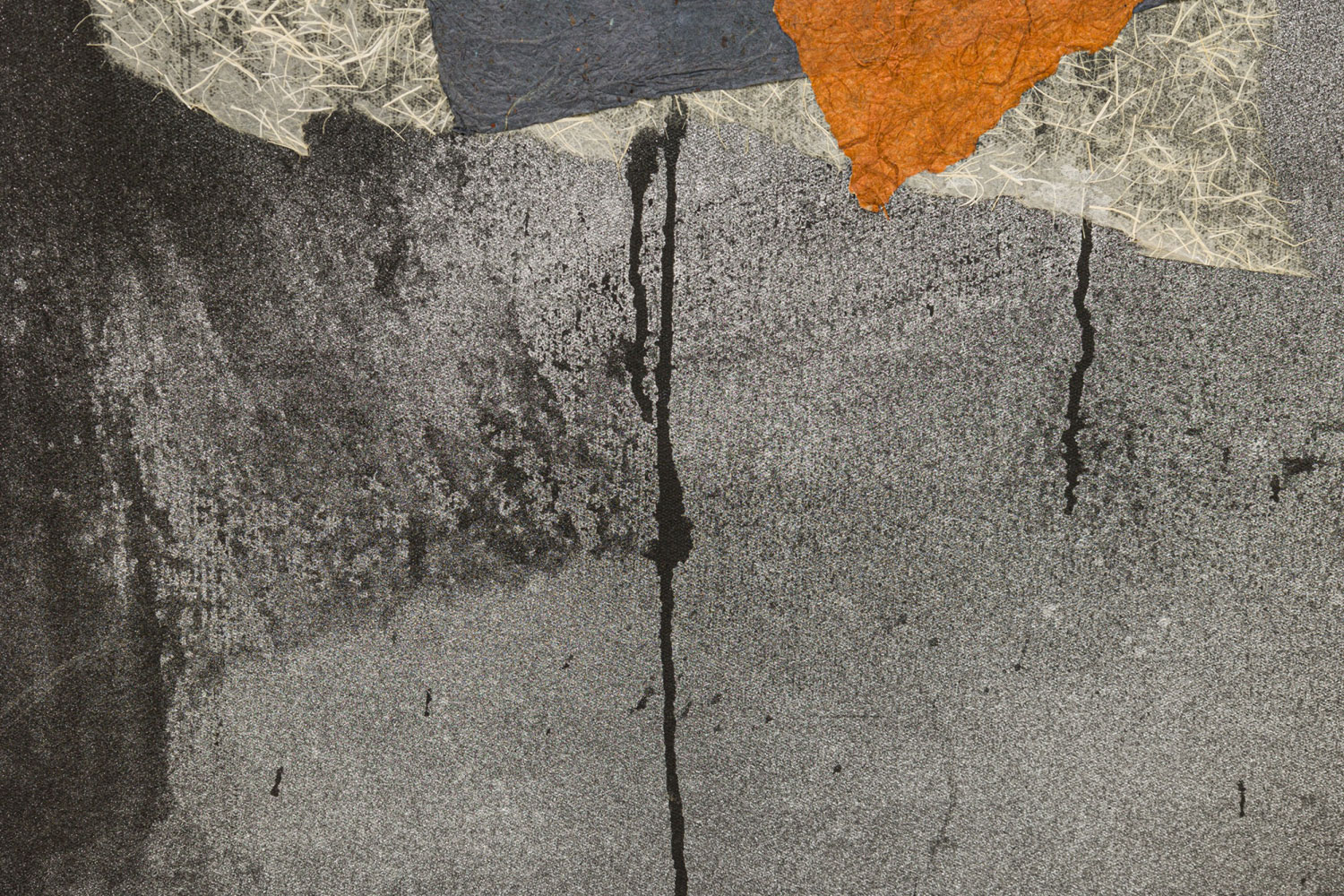 Copy of Abstract multimedia painting having a black ground with collage in grey, yellow, umber and black collage, partial letters