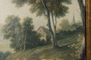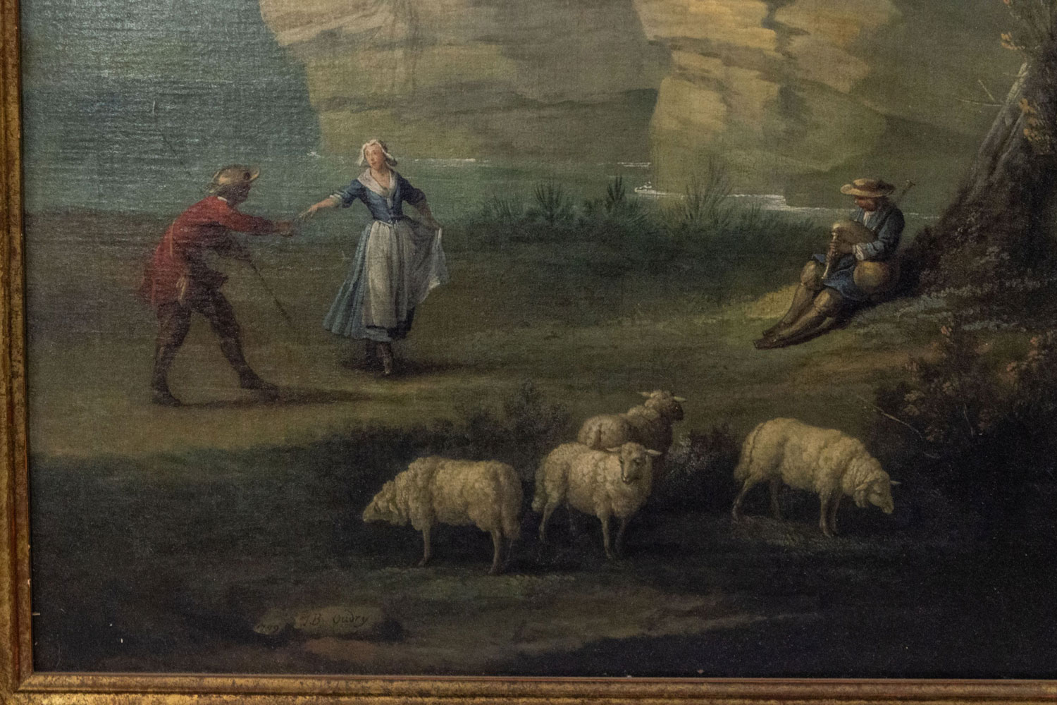 Copy of a vertical landscape painting showing a couple dancing al fresco