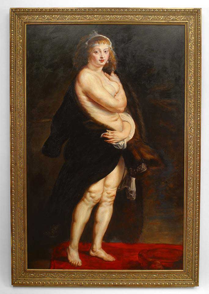 Copy of a painting titled "The Furlet" (1638) a portrait of the artist's second wife semi nude with a fur cloak