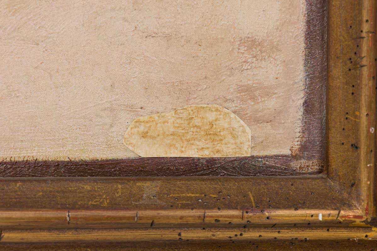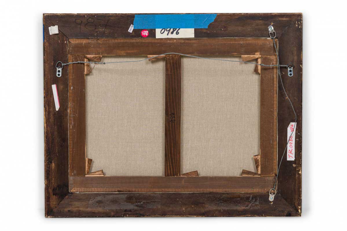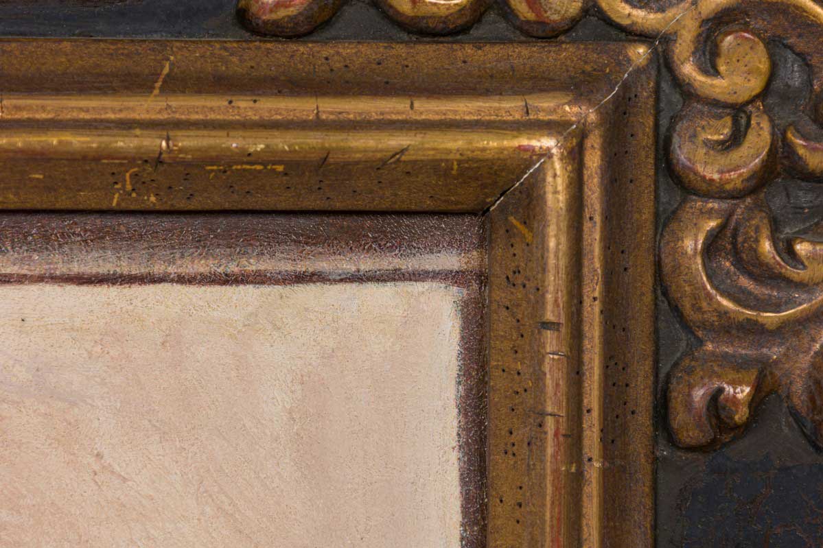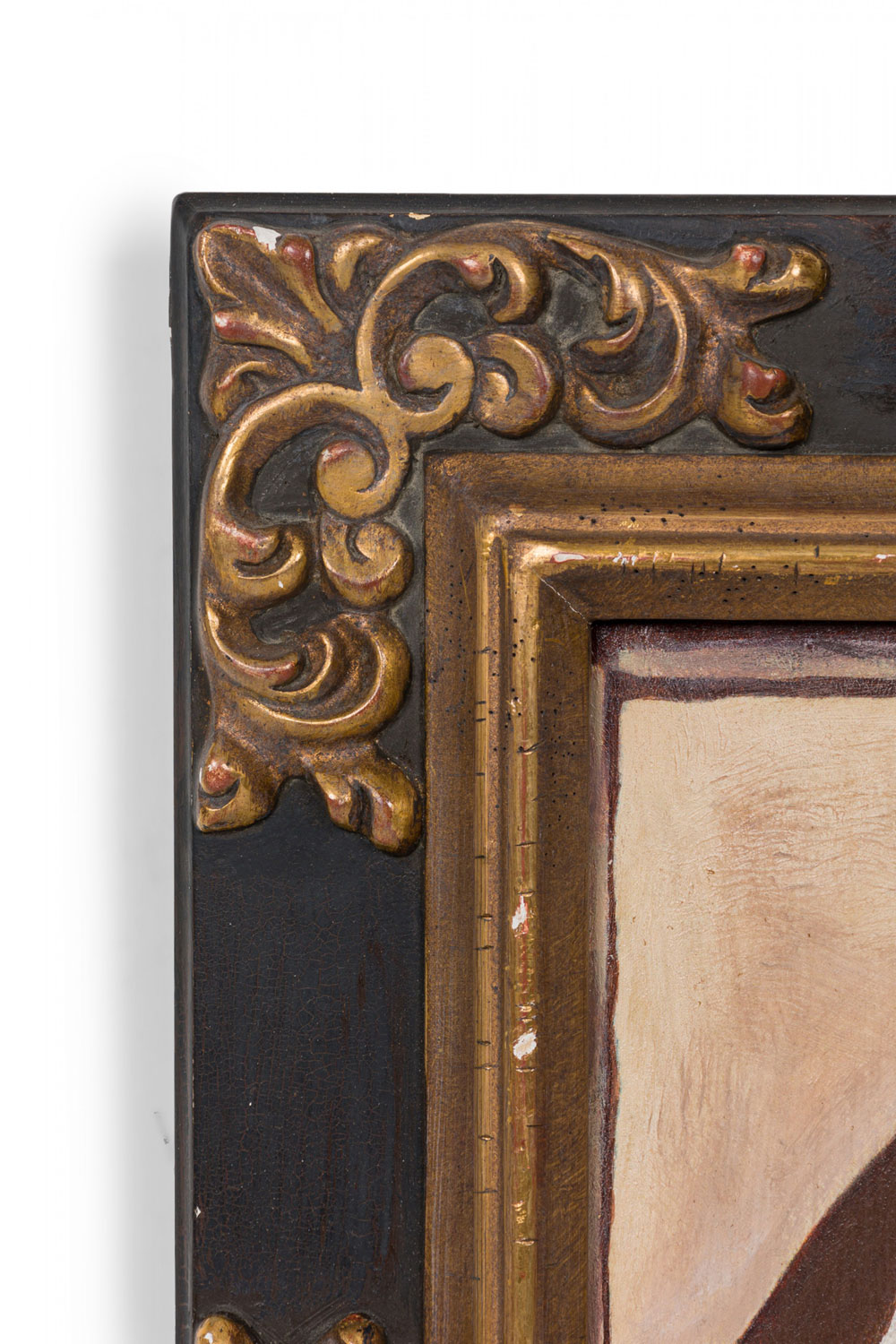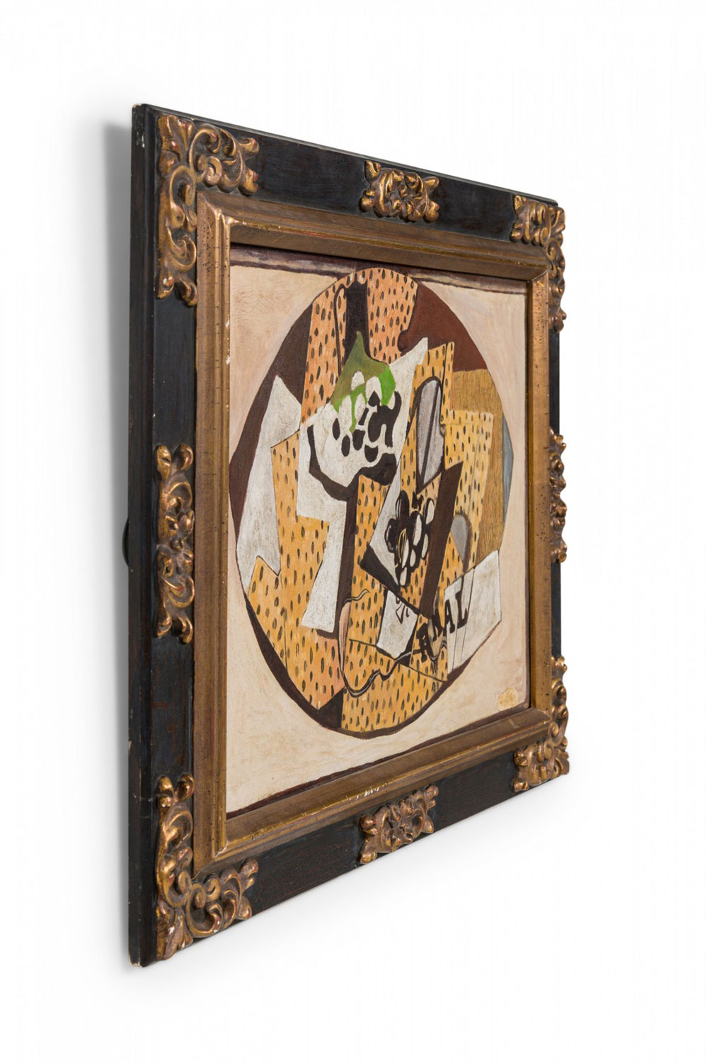 Abstract Painting of a oval styllized Still Life in black frame with gold carved trim