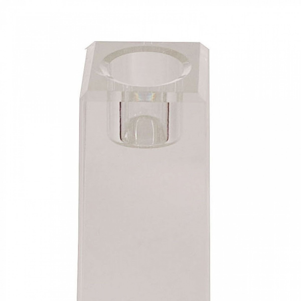 PAIR of clear crystal taper candlesticks with square bases and slightly tapered bodies (PRICED AS PAIR).