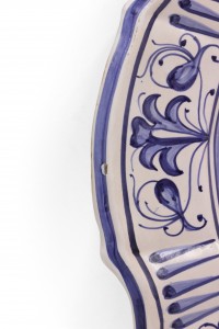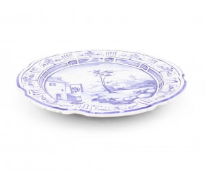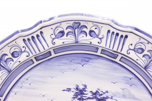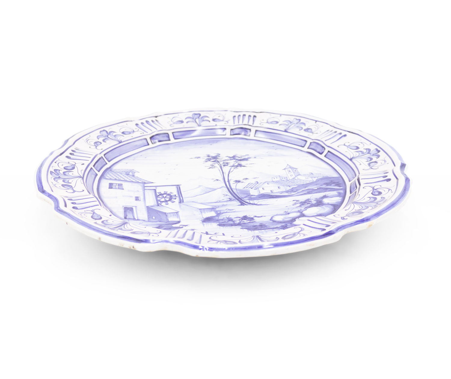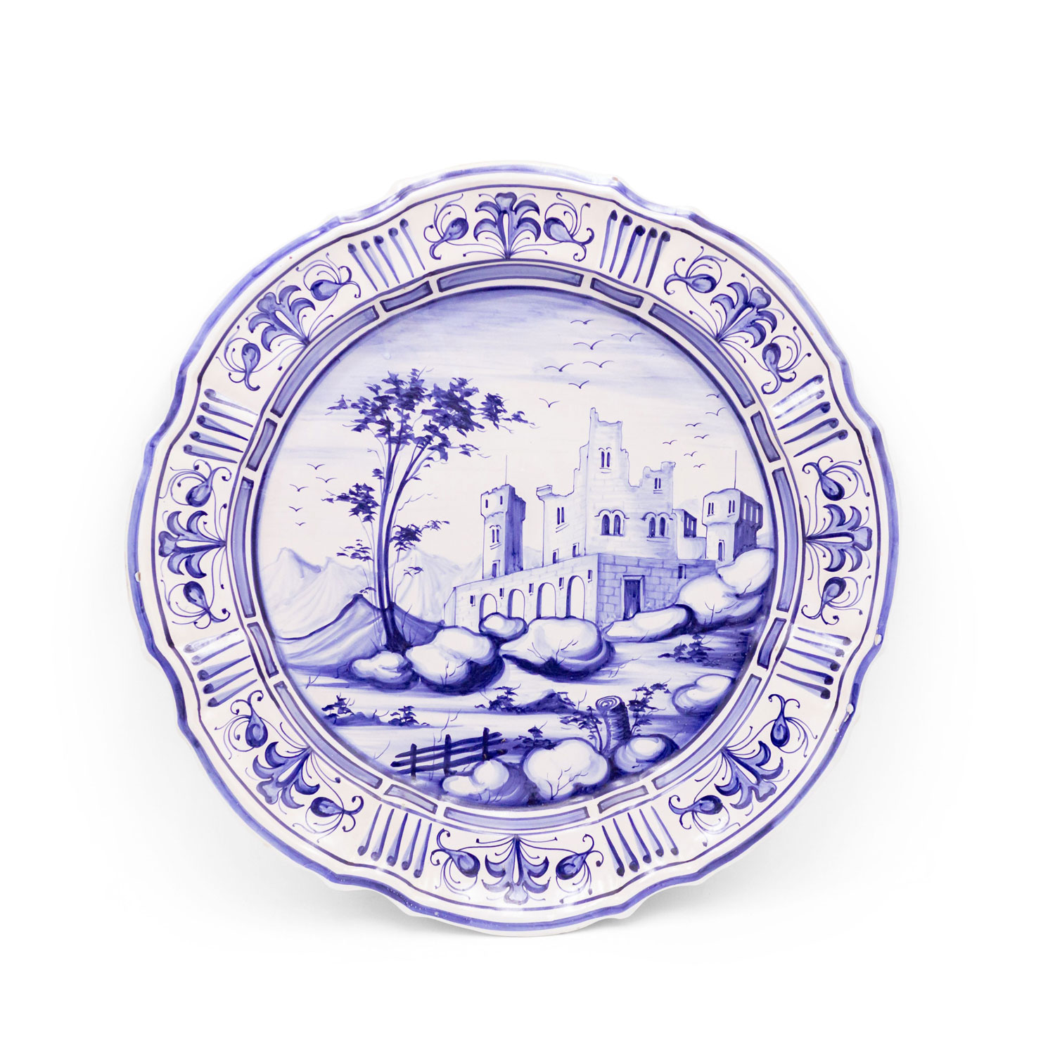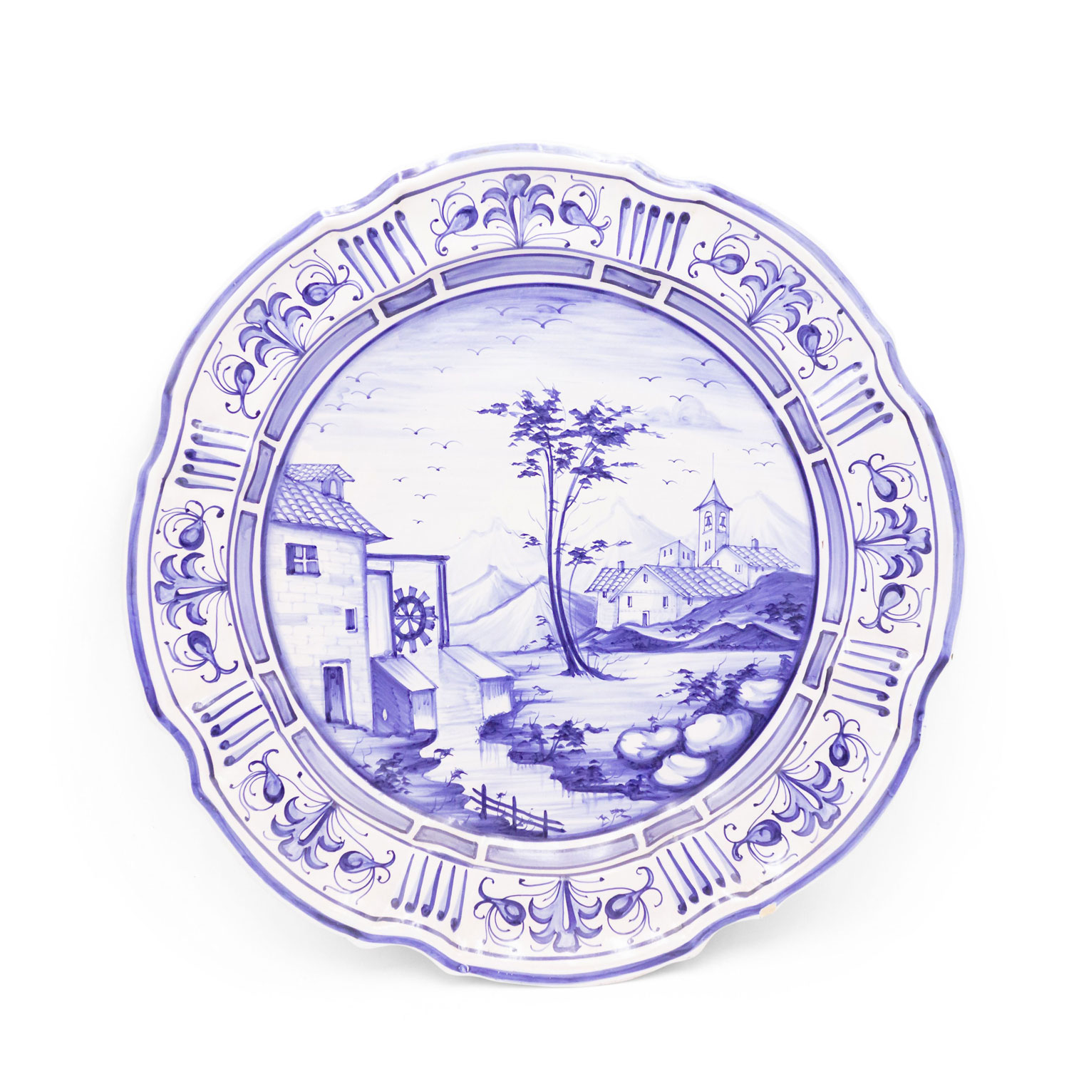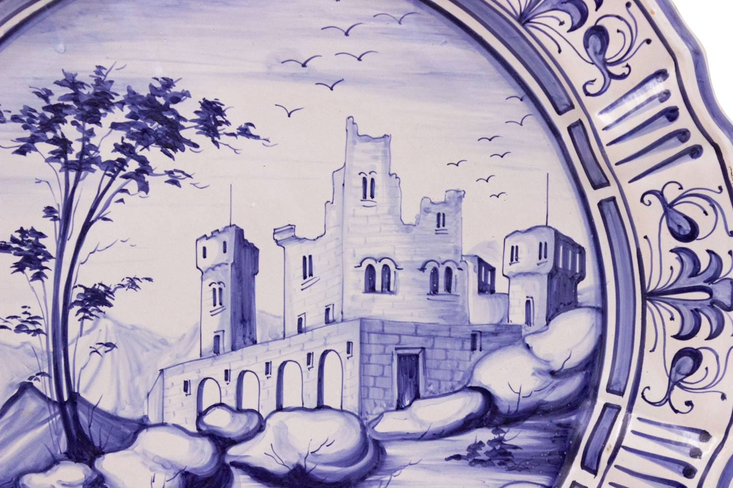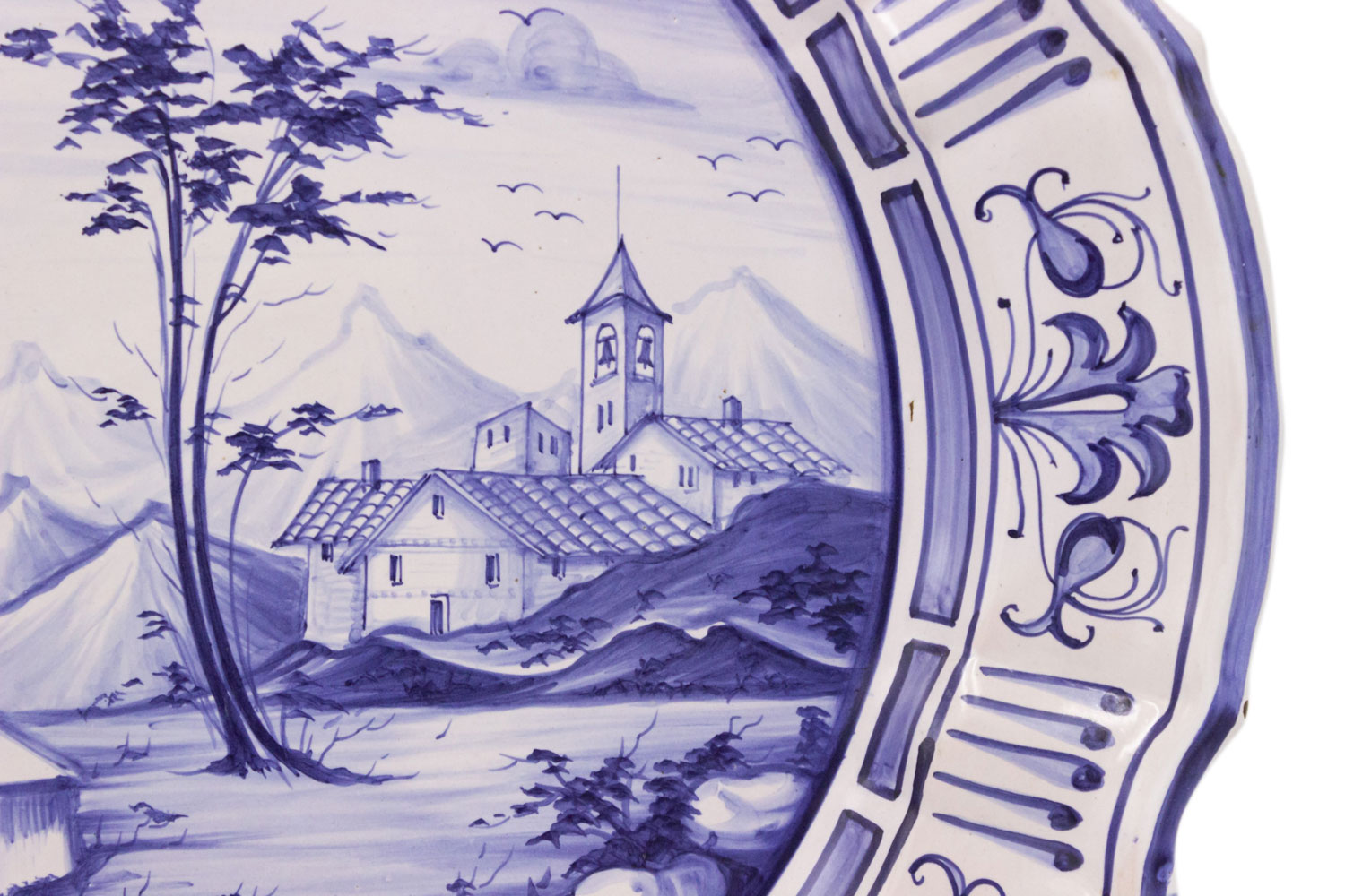 PAIR of Dutch blue and white Delft porcelain (19th Century) wall plaques with scalloped edge and landscape scene (PRICED AS PAIR).