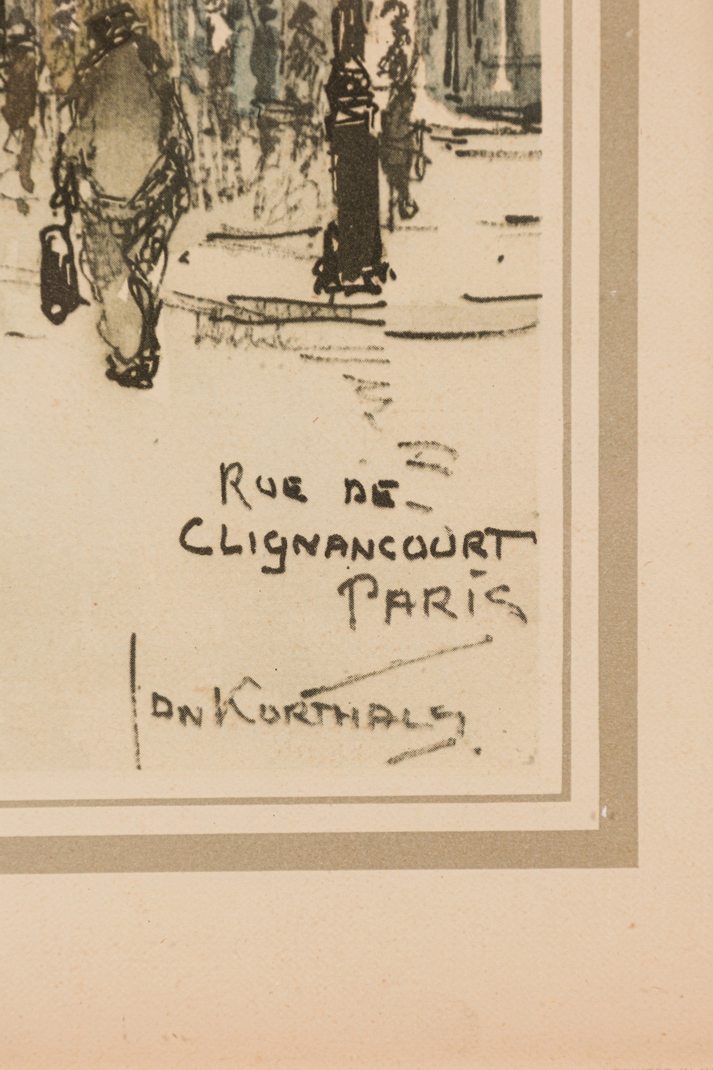 French Mid-Century framed genre scene print of a Parisian street featuring large group of people walking around (similar to: NWL7294B, NWL7294C, NWL7294A)
