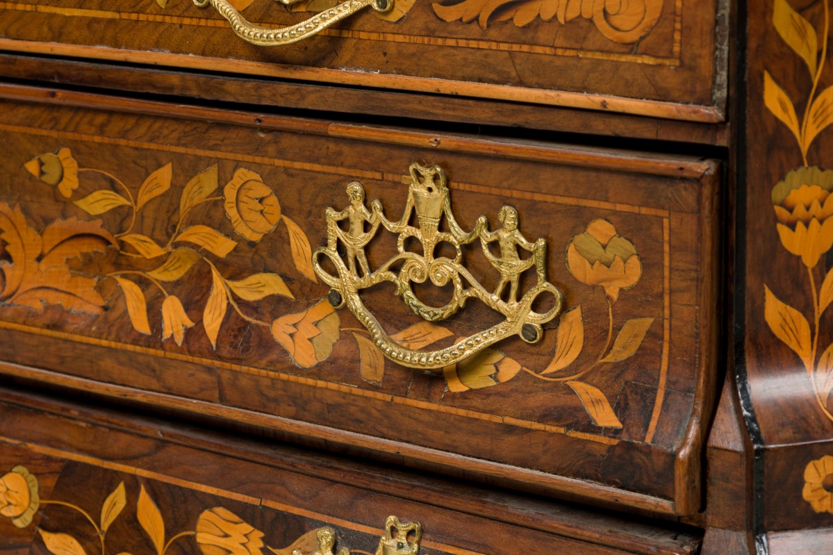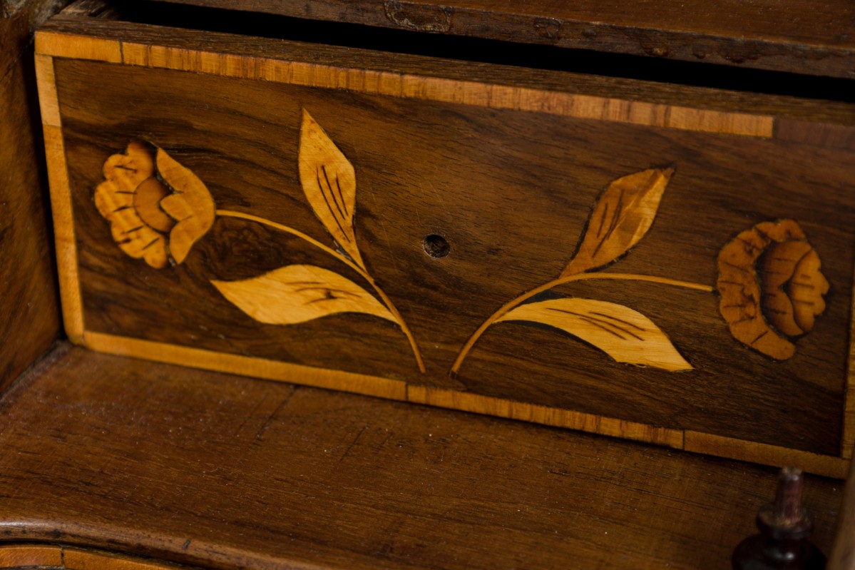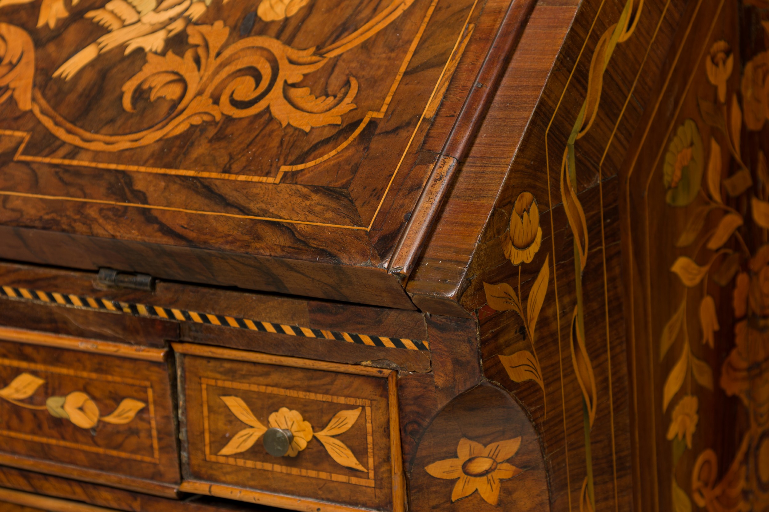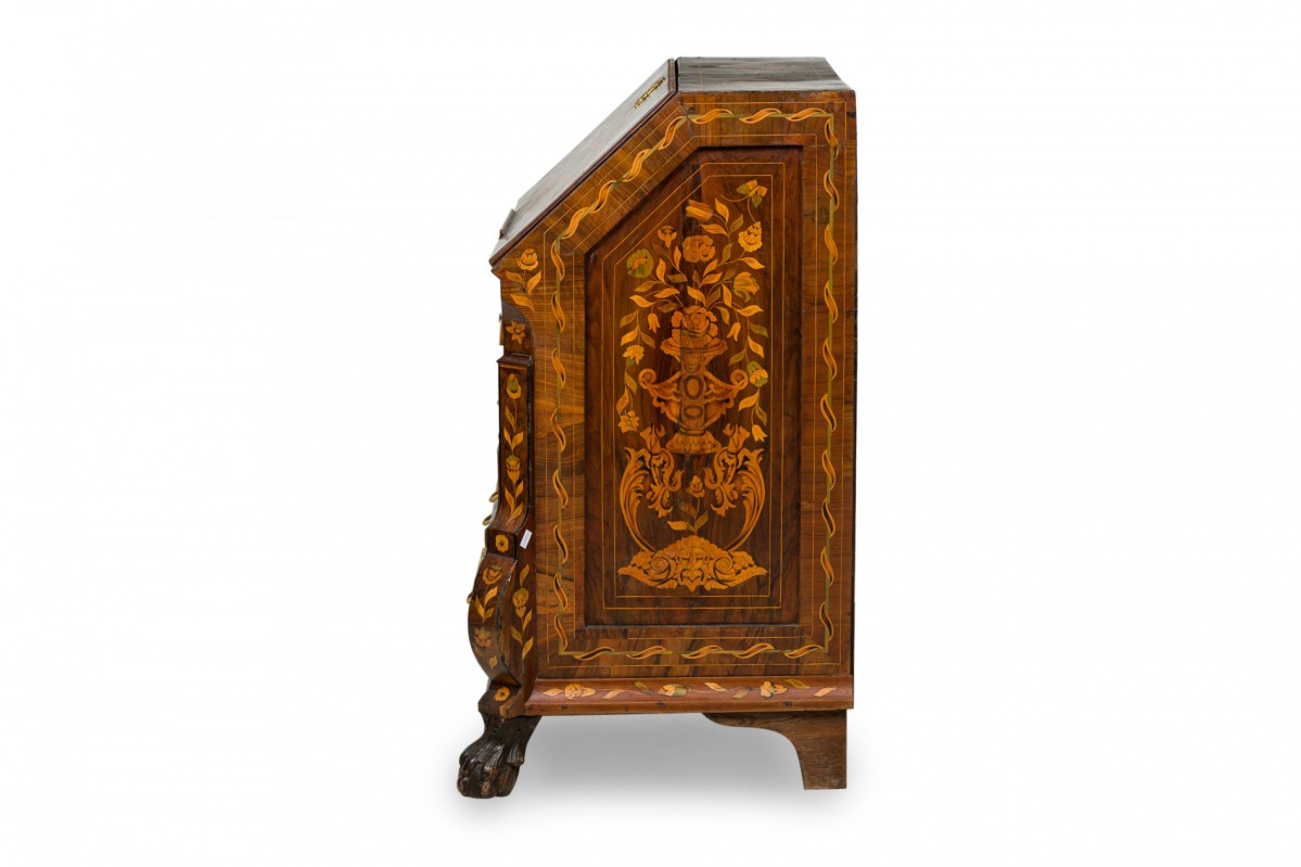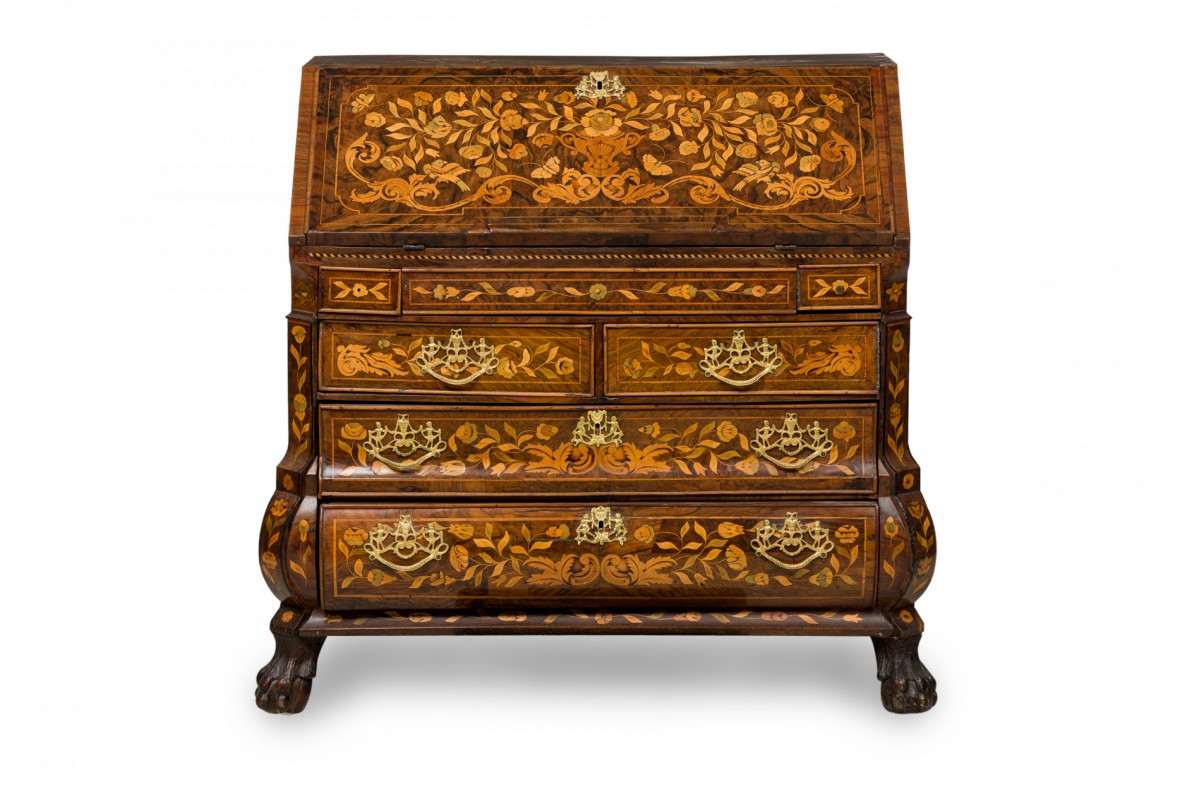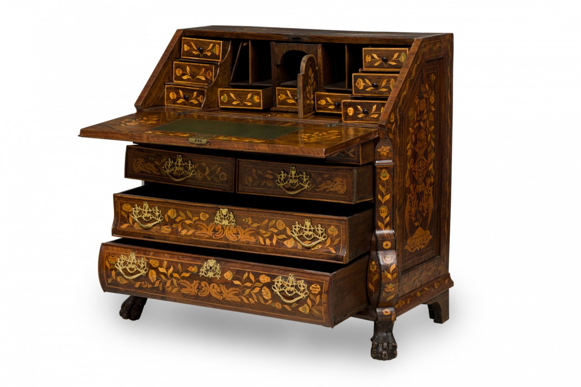 Choose one of the options below.Dutch Rococo Bombe Marquetry Inlaid Drop Front Desk / Secretary