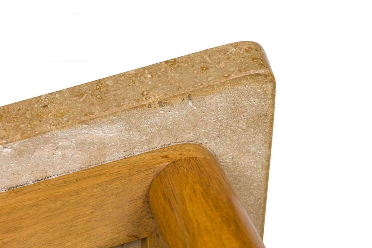 Choose one of the options below.American Mid-Century Travertine and Light Wood Wedge End / Side Table