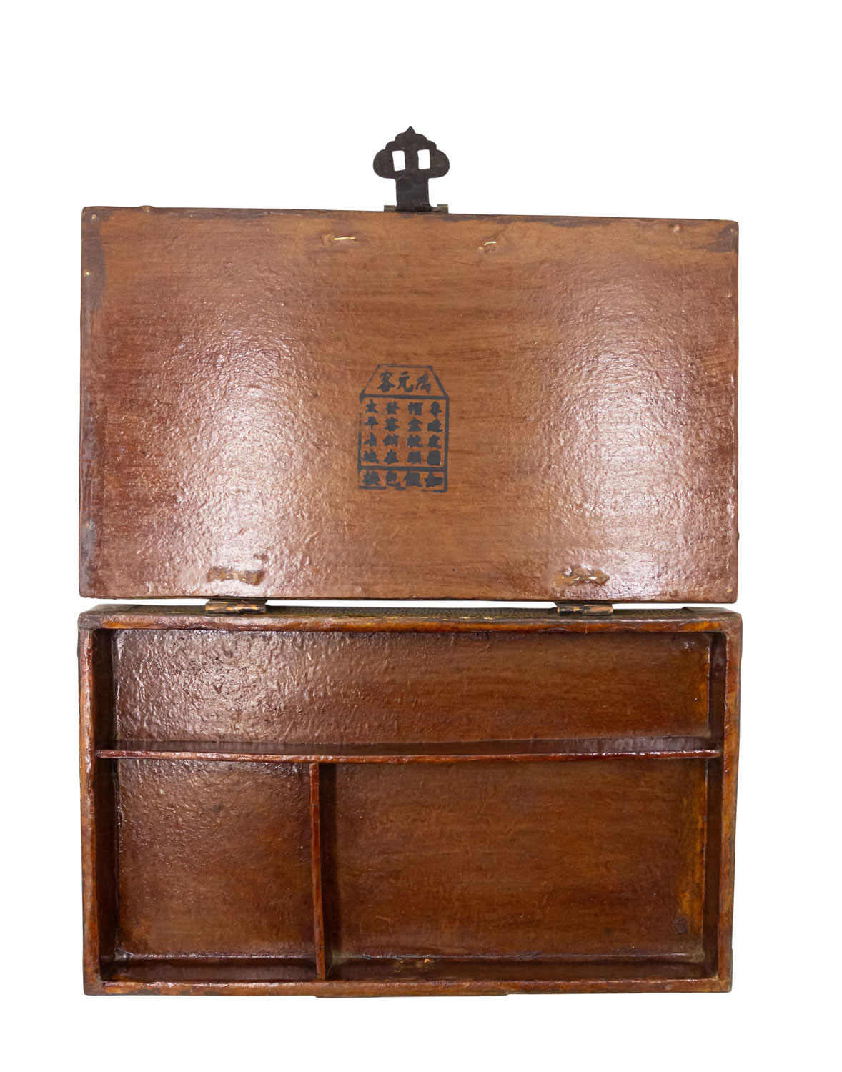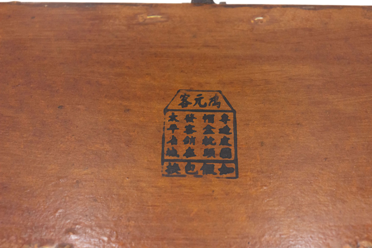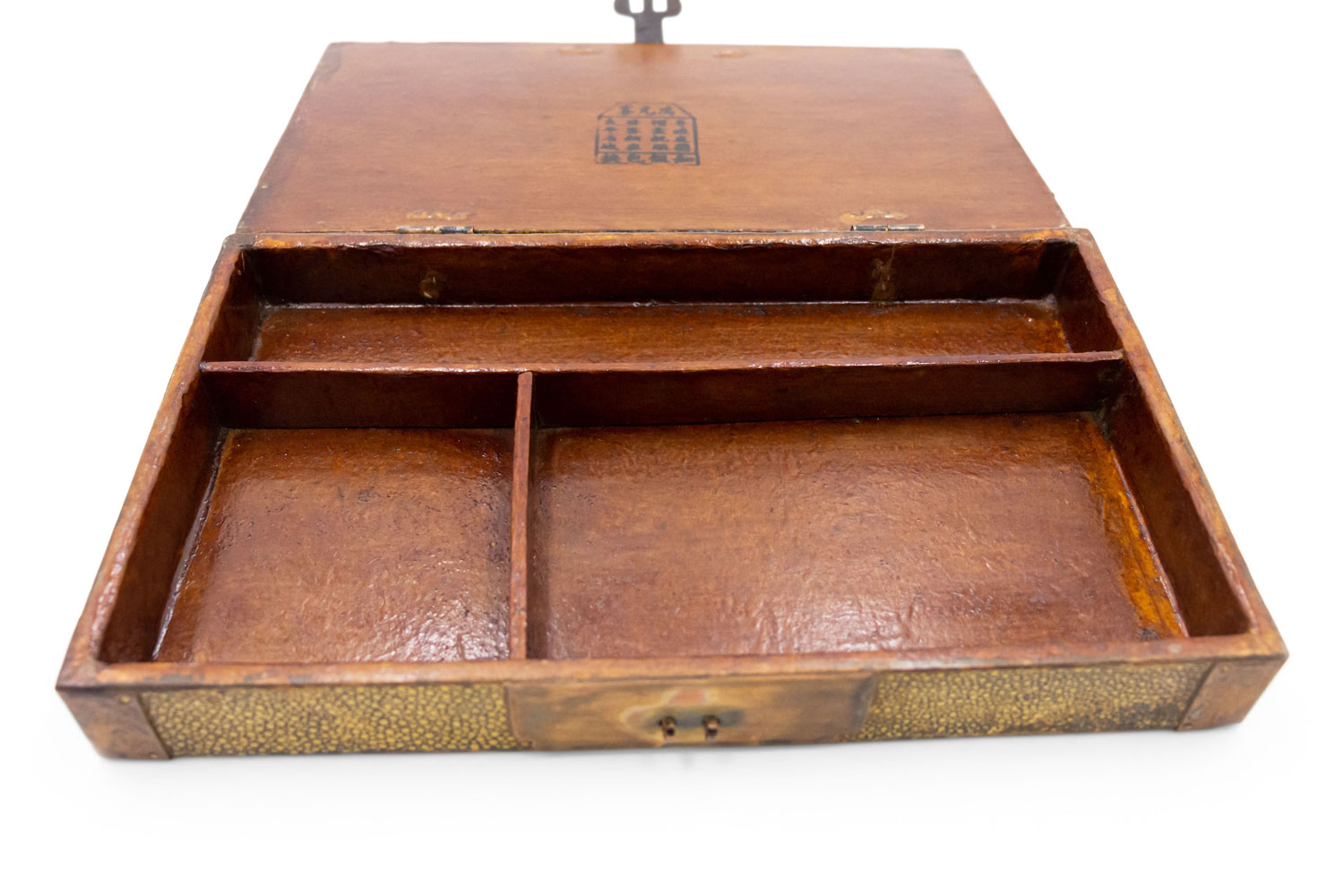 English Art Deco large rectangular dark yellow shagreen box with a copper latch and trim.