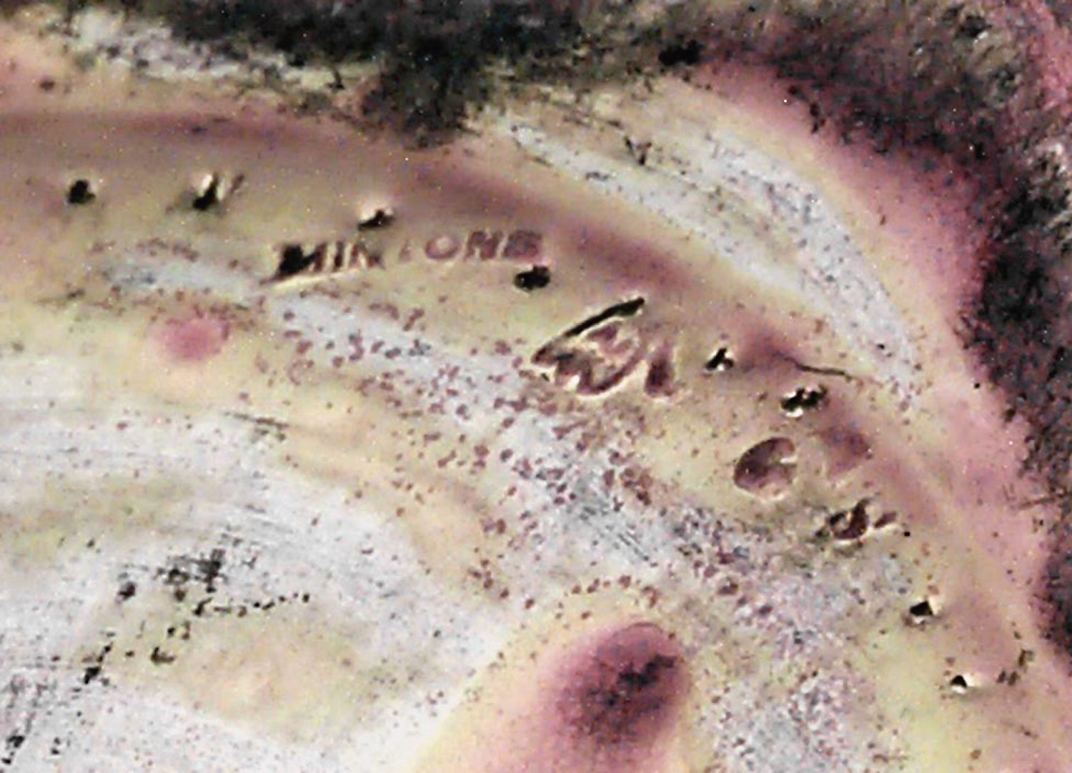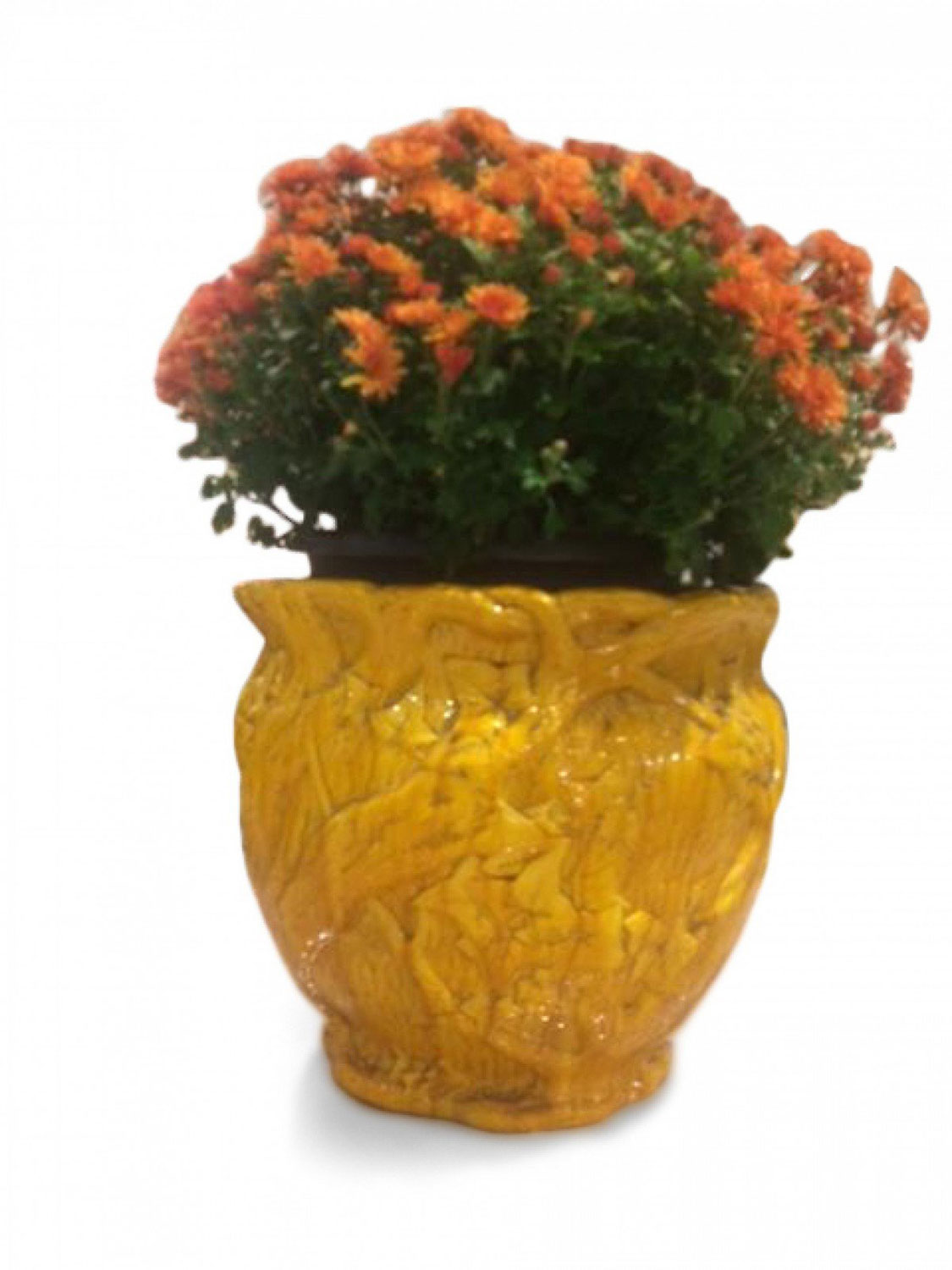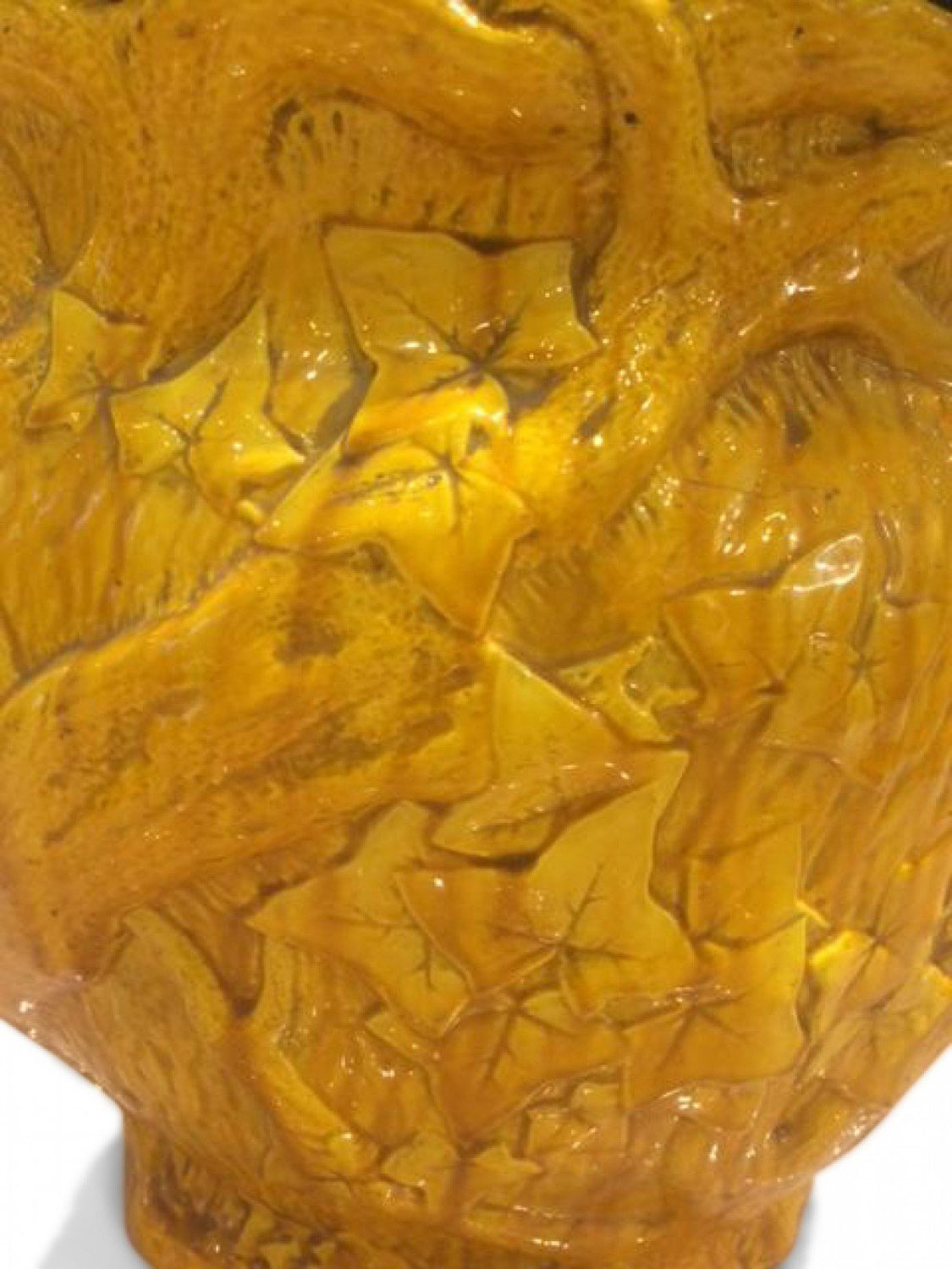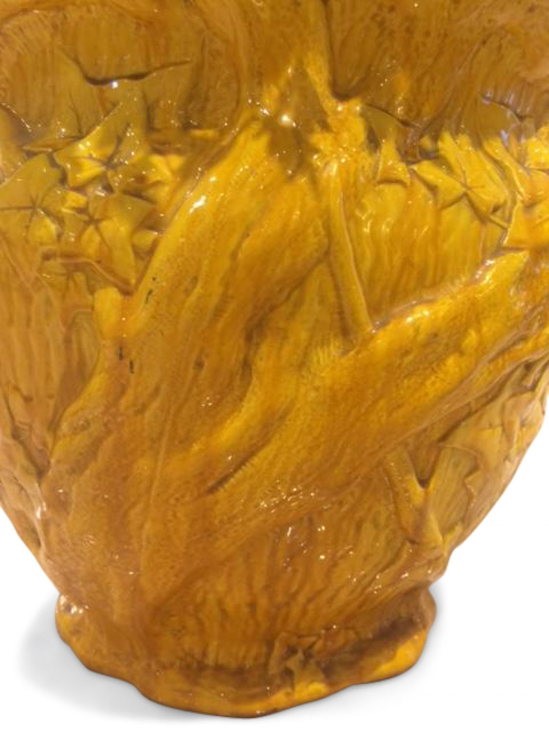 English Arts and Crafts yellow porcelain jardiniere with twig and floral design (signed MINTON)