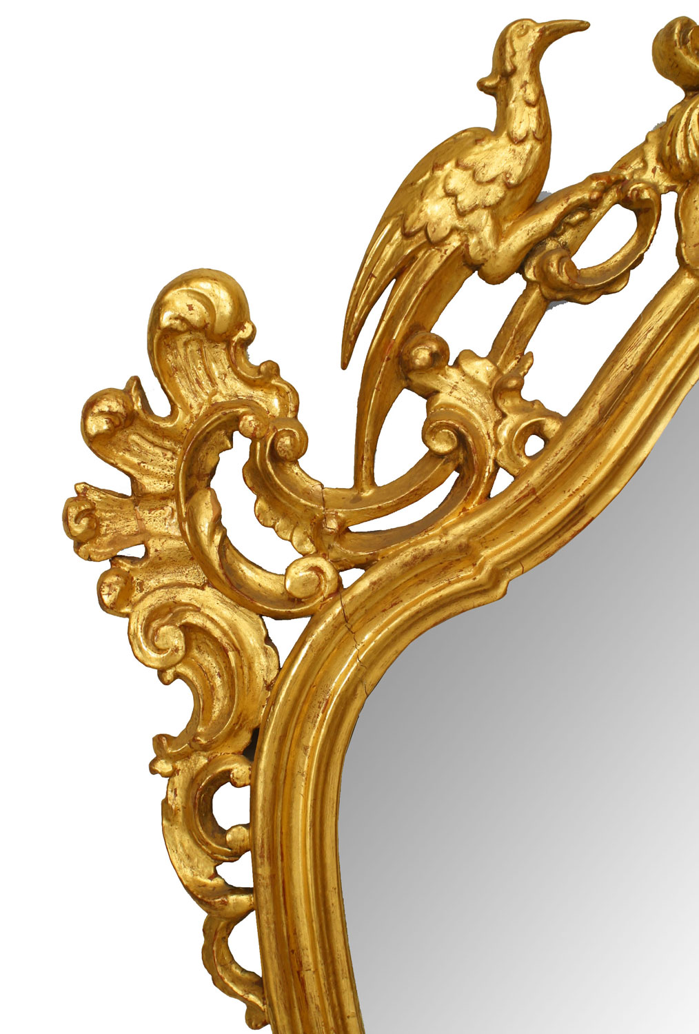 English Chinese Chippendale-style (19/20th Century) vertical giltwood wall mirror with bird design.