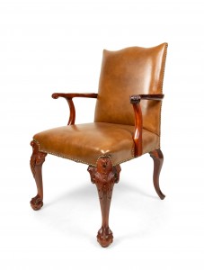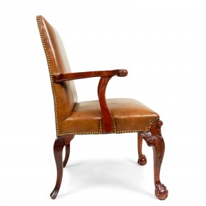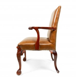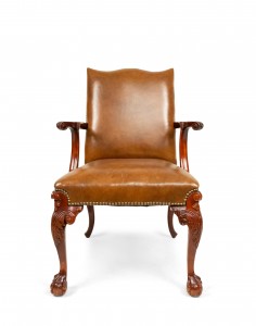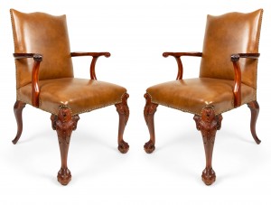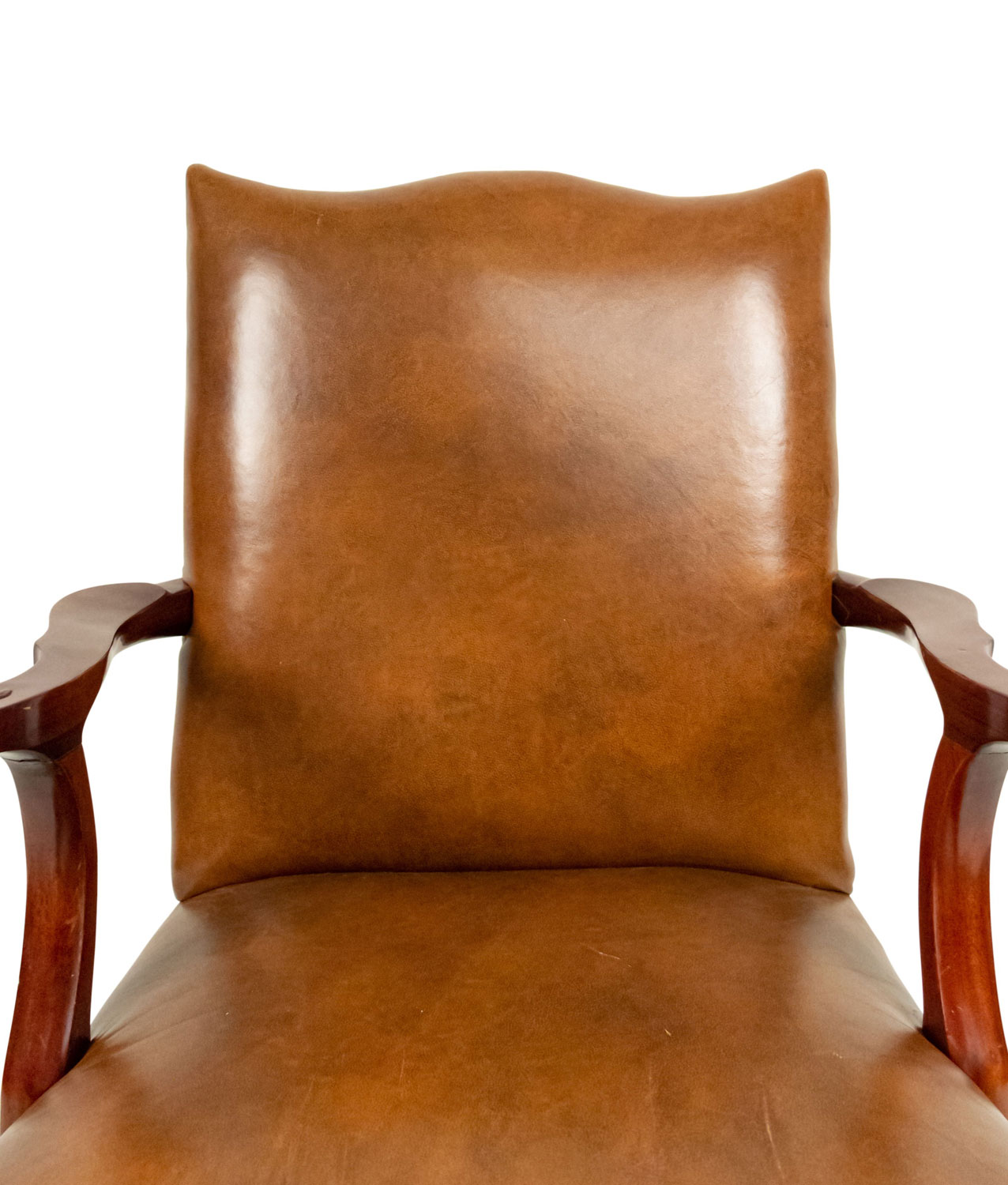 Choose one of the options below.17 English Chippendale Brown Leather Arm Chairs
