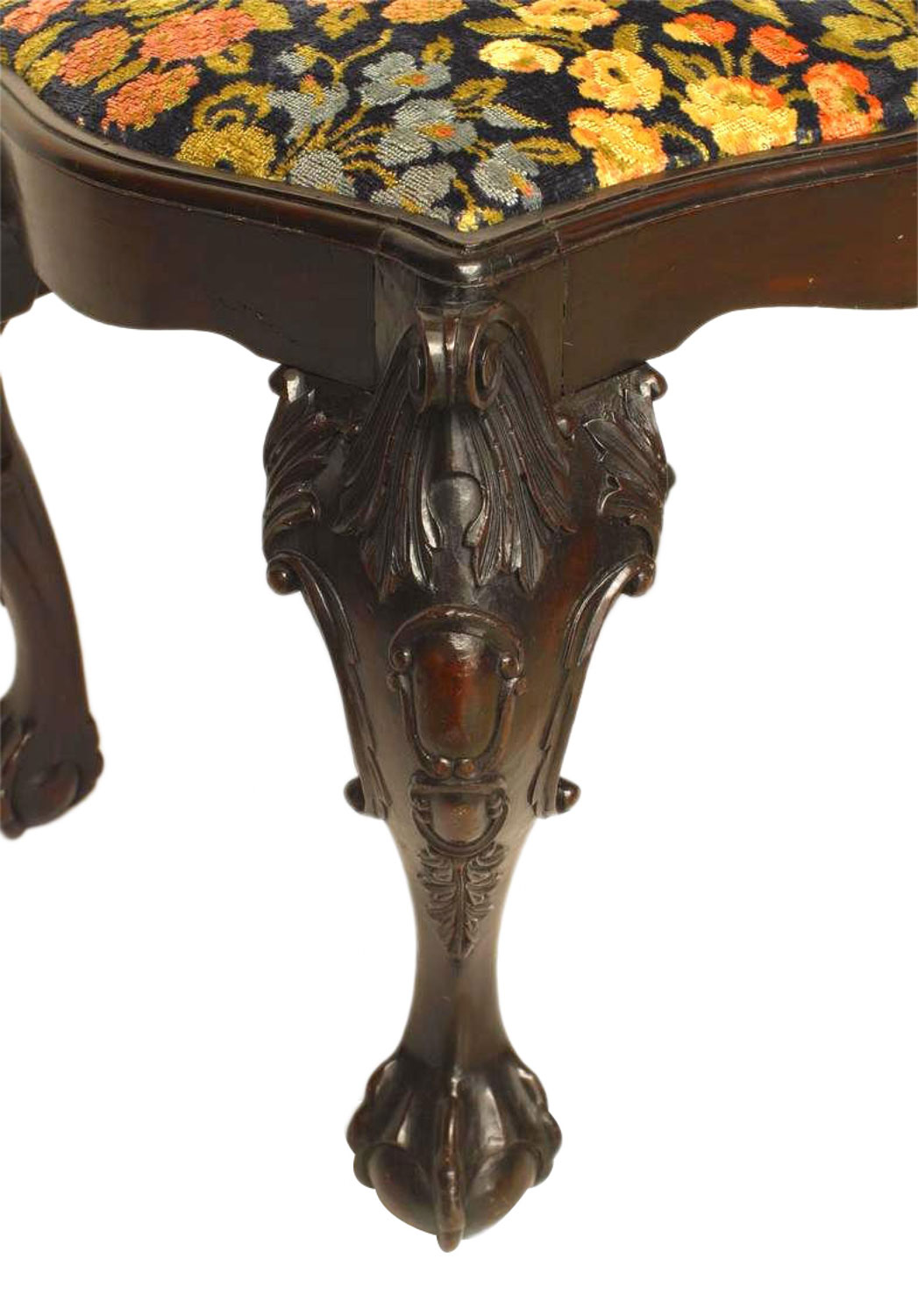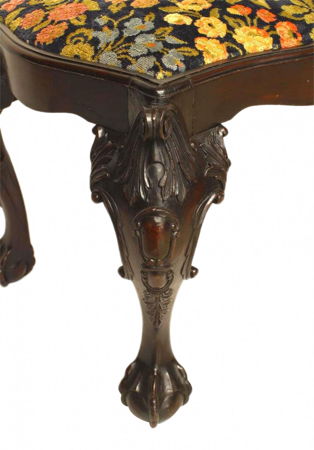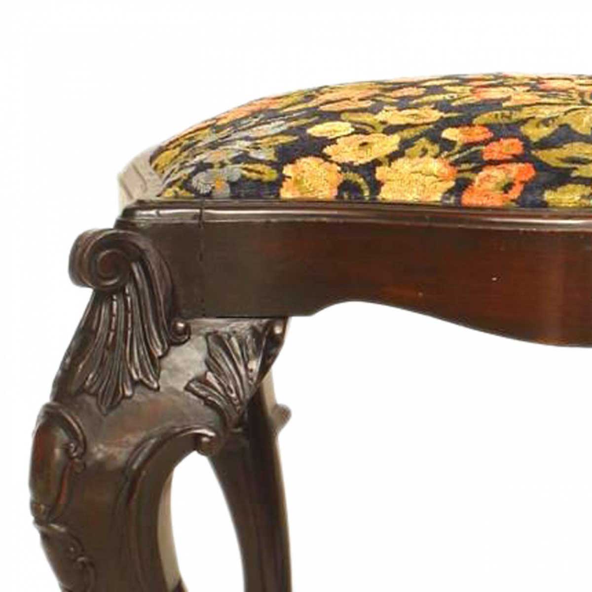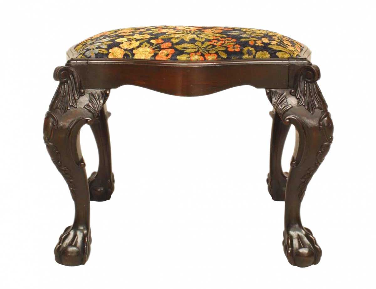 English Chippendale Style Cut Velvet Mahogany Bench