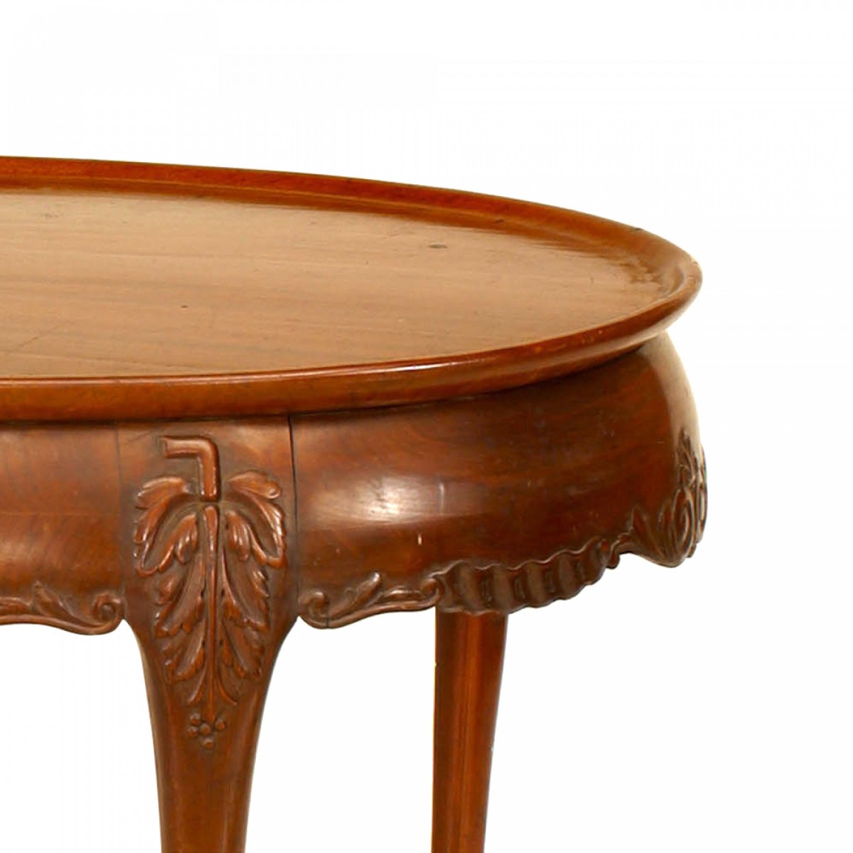 English Chippendale style (19/20th Century) oval mahogany center/tea table with ball and claw feet and carved apron.