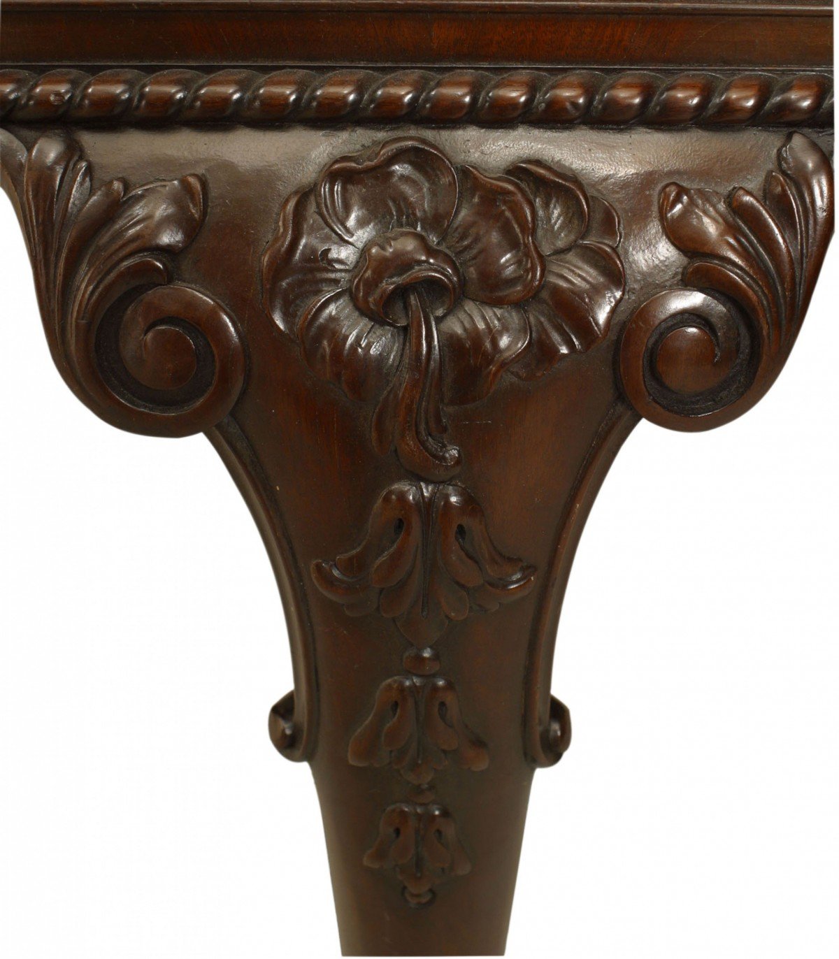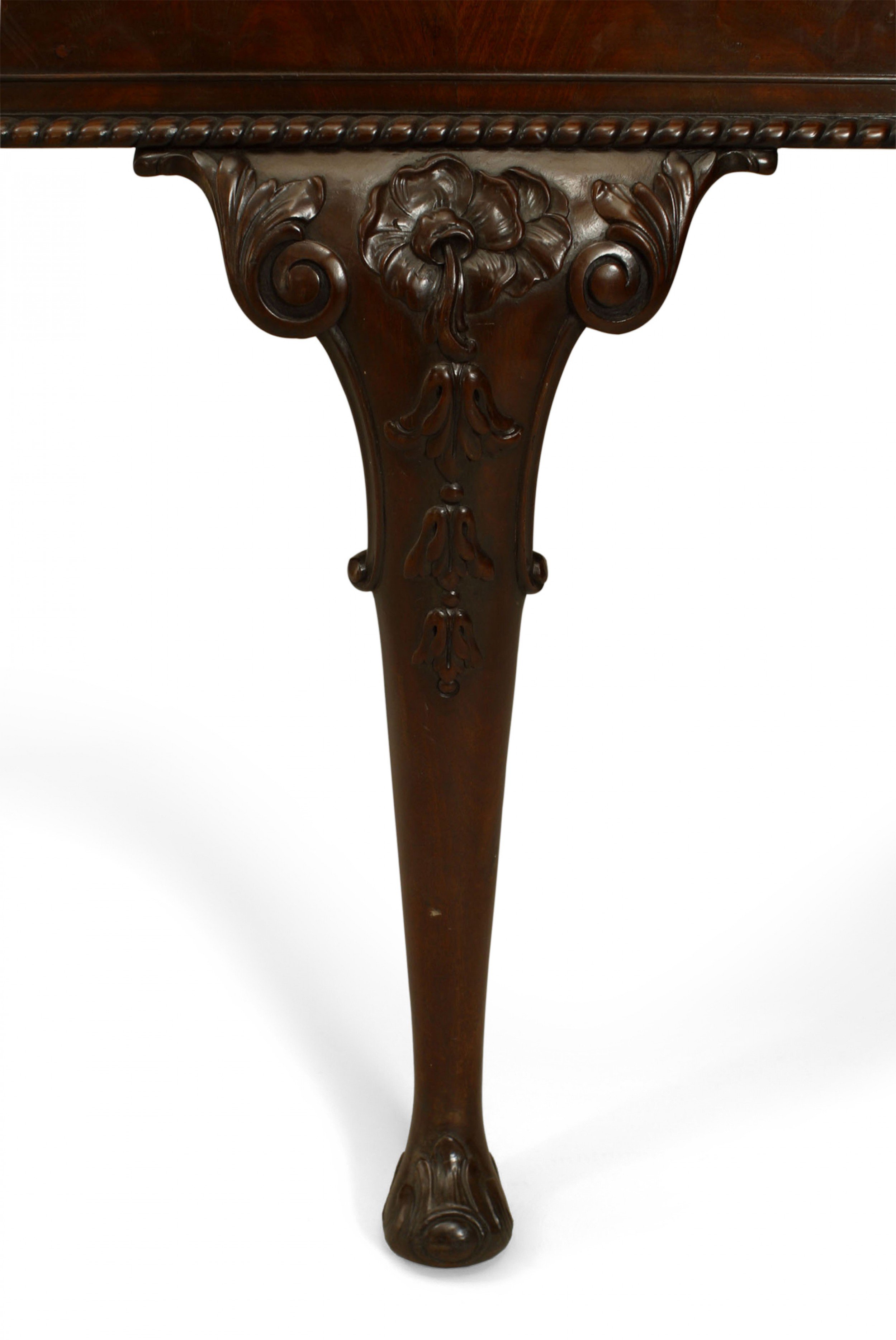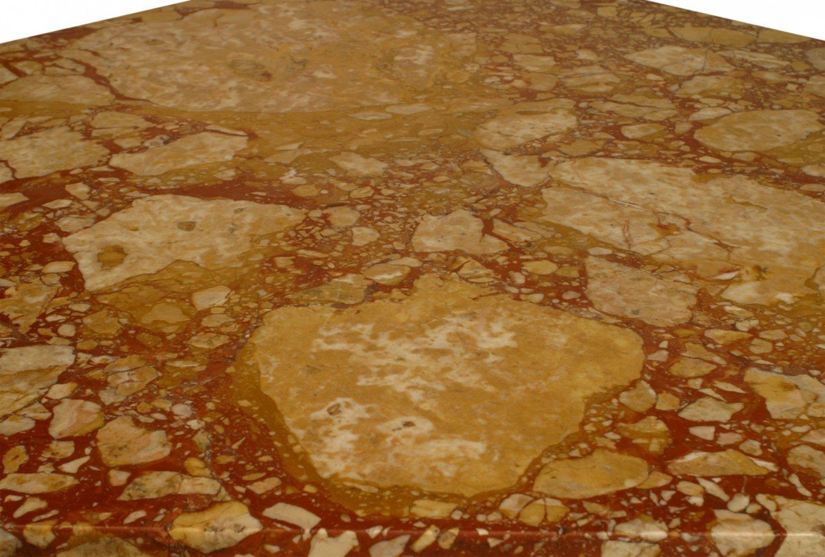 English Chippendale/Georgian (19th Century) mahogany center table with carved cabriole legs supporting an octagonal rouge marble top.
