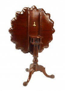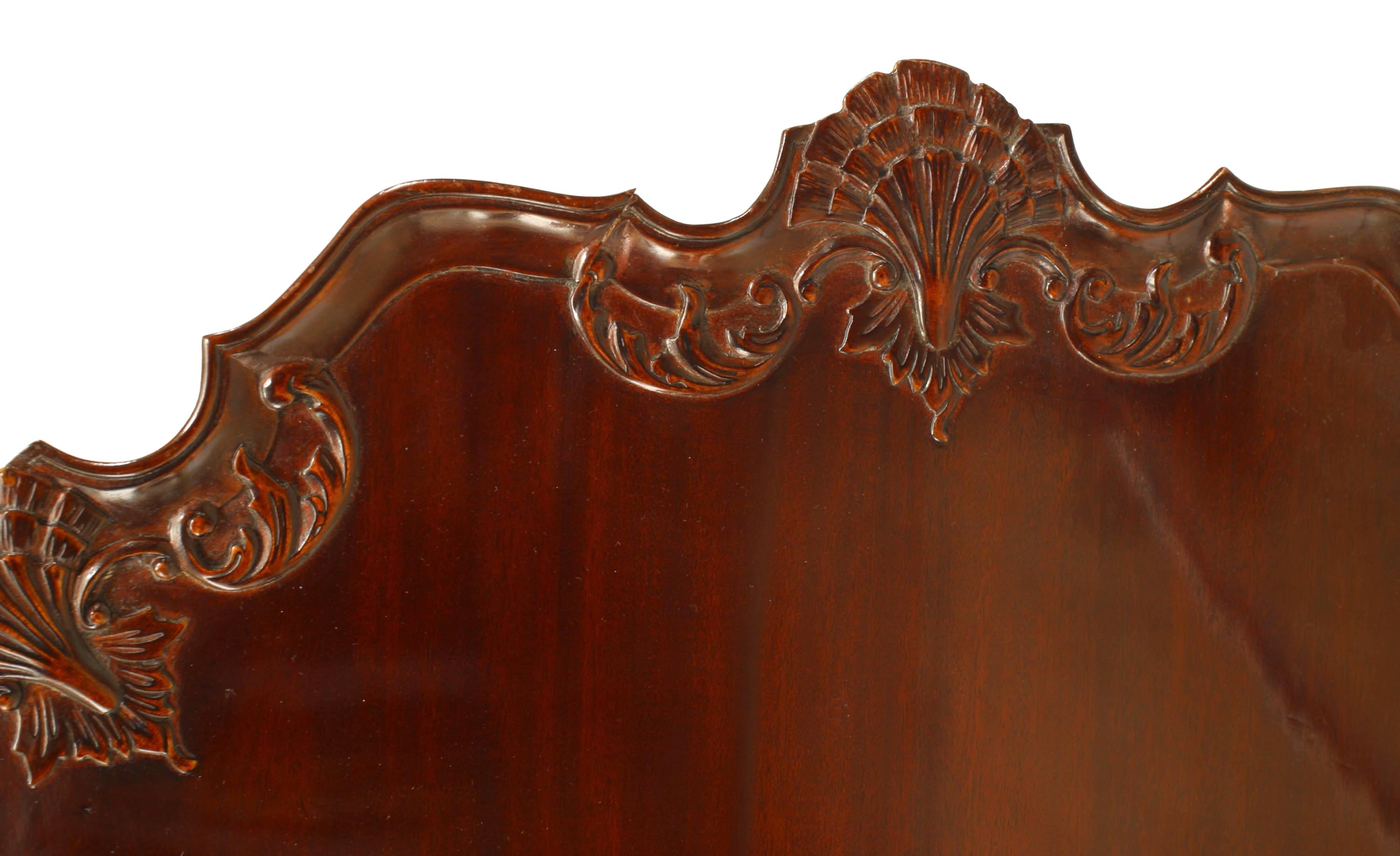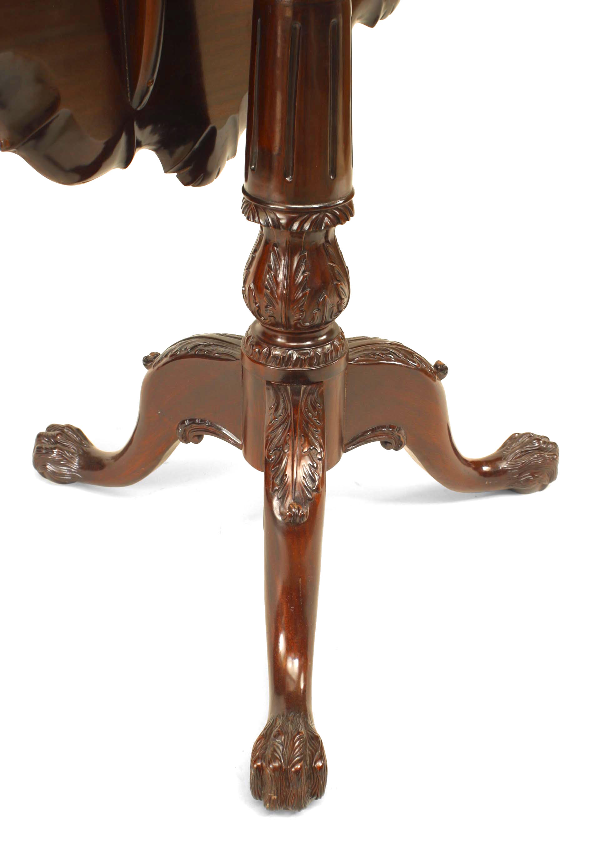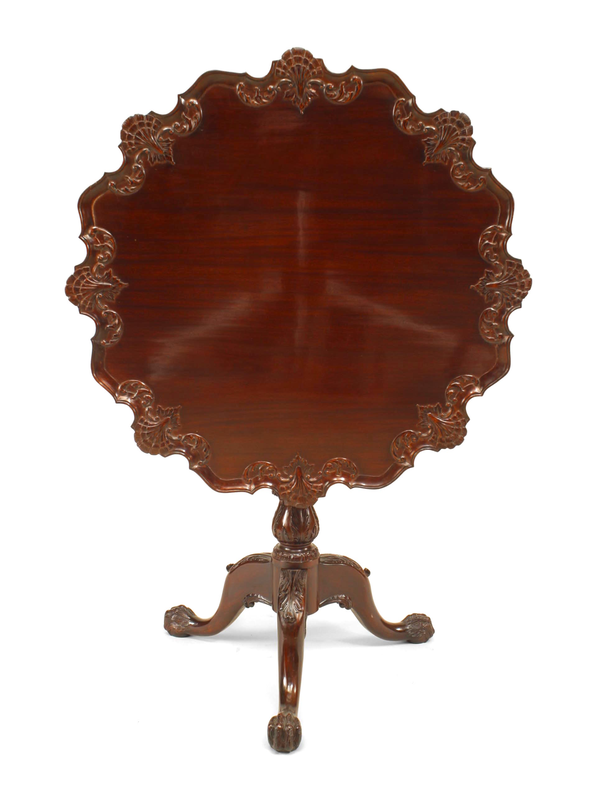 English Chippendale-style (20th Century) mahogany tilt top end table with shell design carving to top edge.