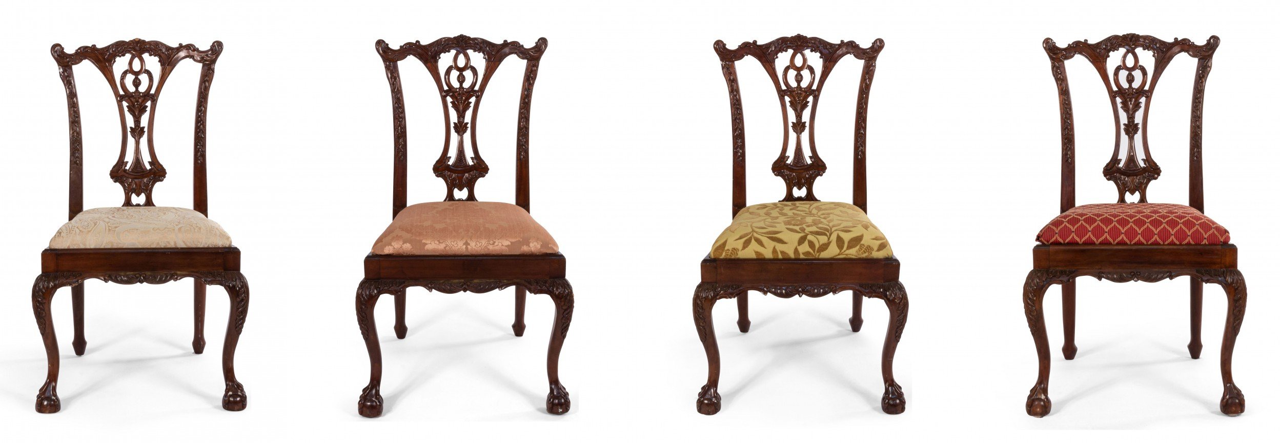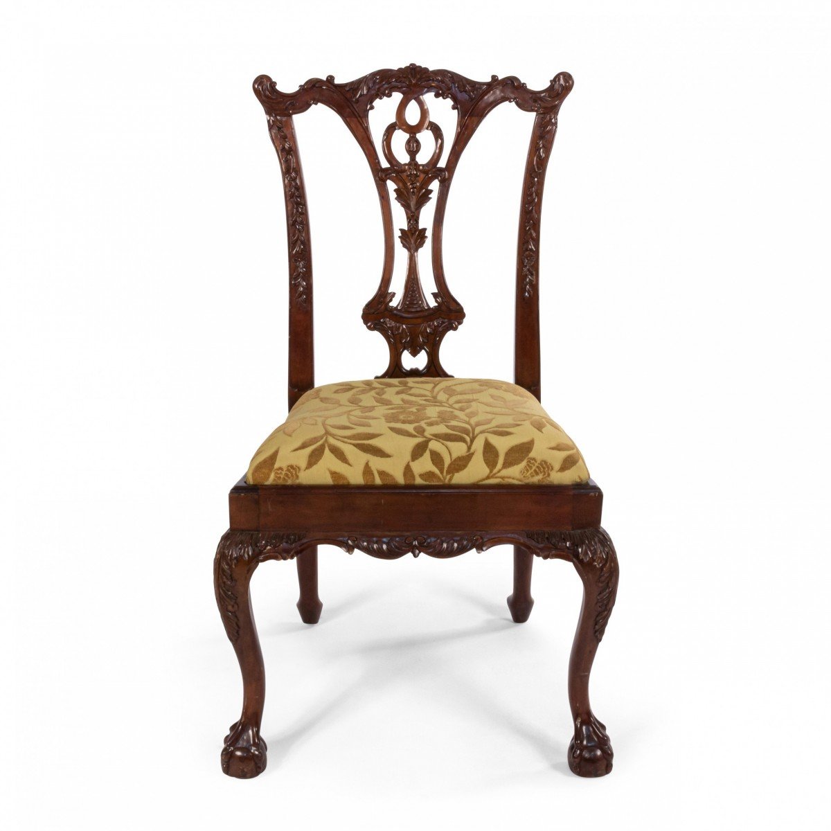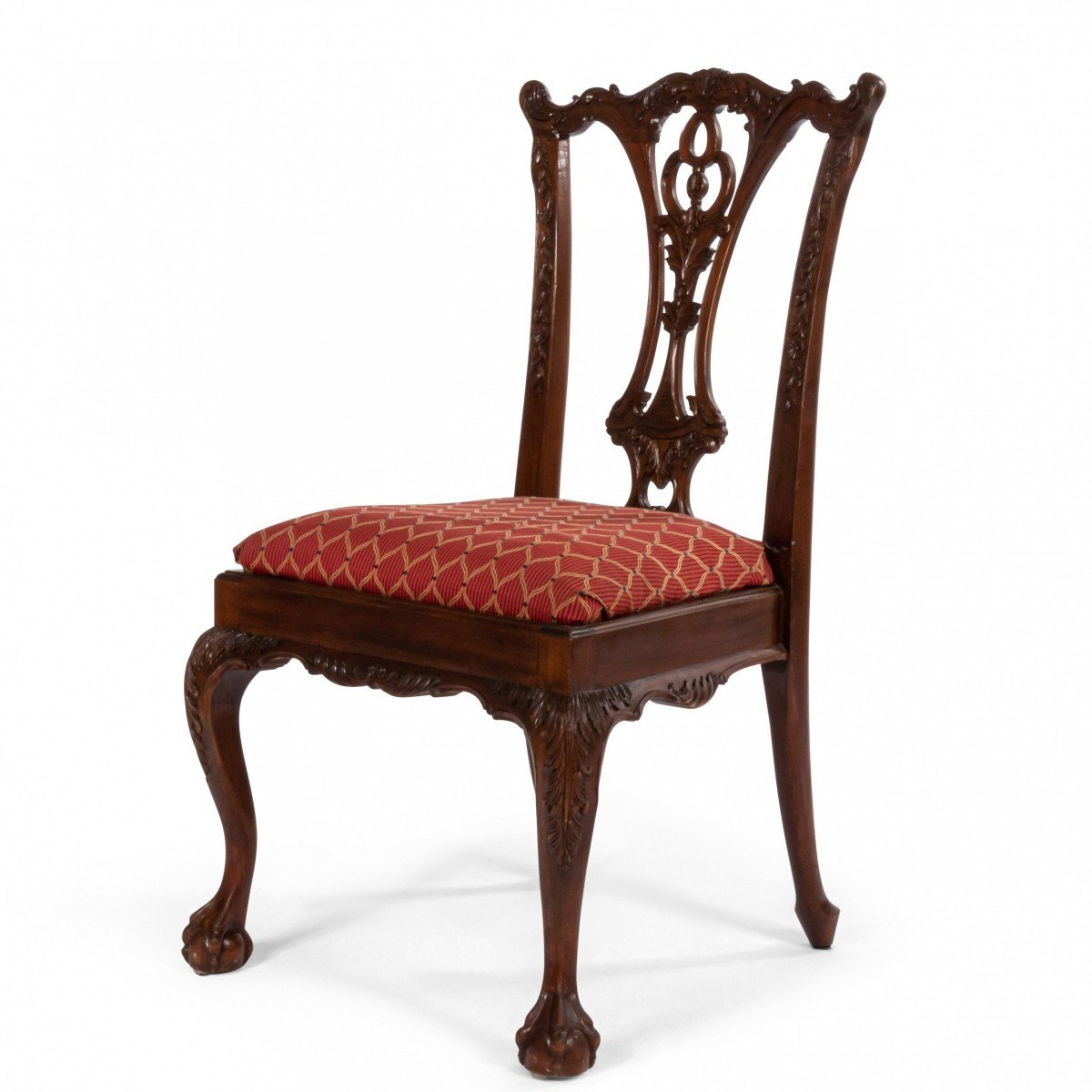 12 English Chippendale style (20th Cent) carved mahogany side chairs with slip seat.(PRICED EACH) (4 matching arm chairs Inv. #057024)