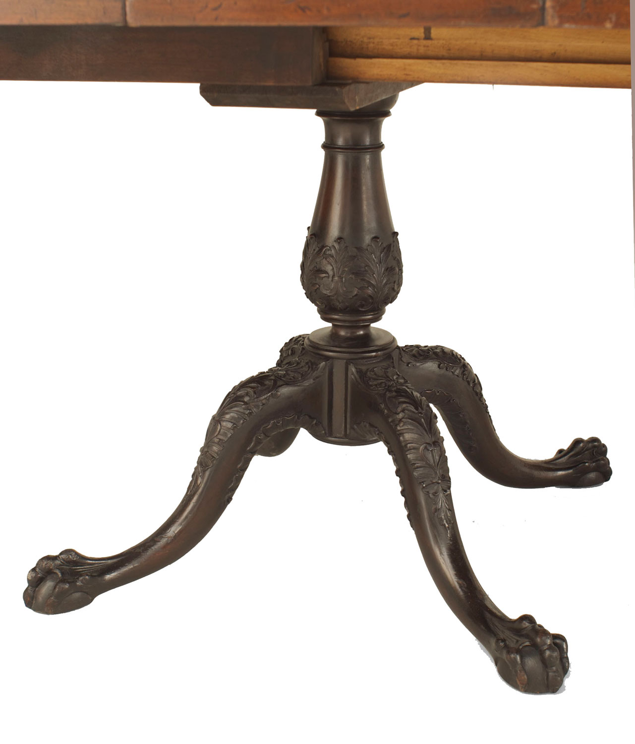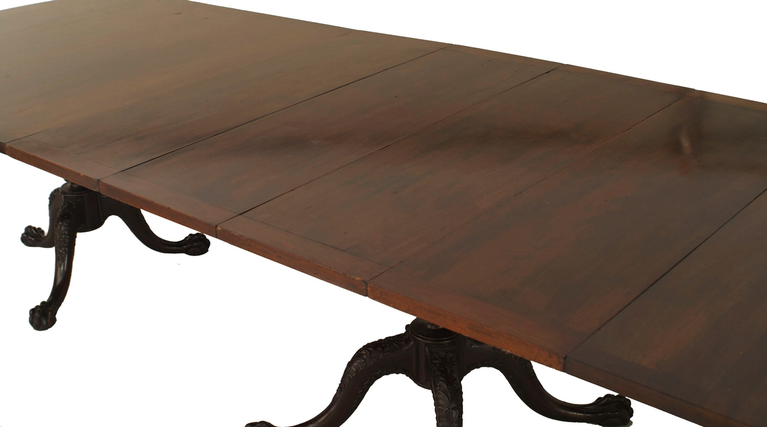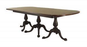 English Chippendale-style (19th Century) mahogany triple pedestal base dining table (4 table leaves - 13.5" each)