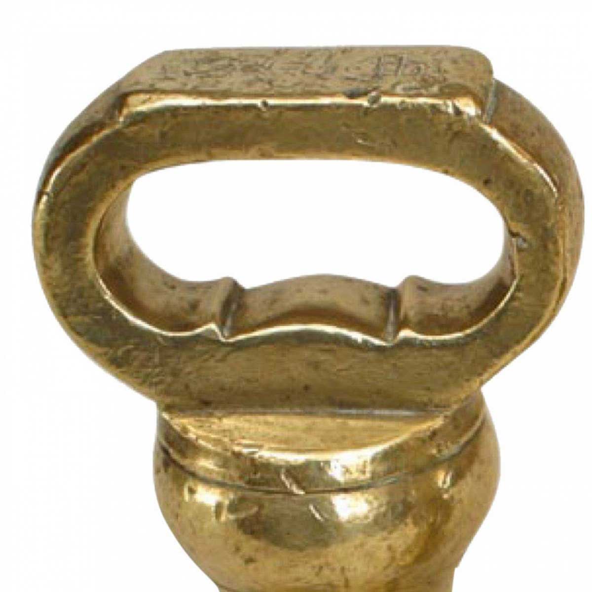 English Country style (19th Cent) brass 3 similar piece weight set with loop top (1@ 4 oz, 1 @ 1lb., 1 @ 2lbs.)