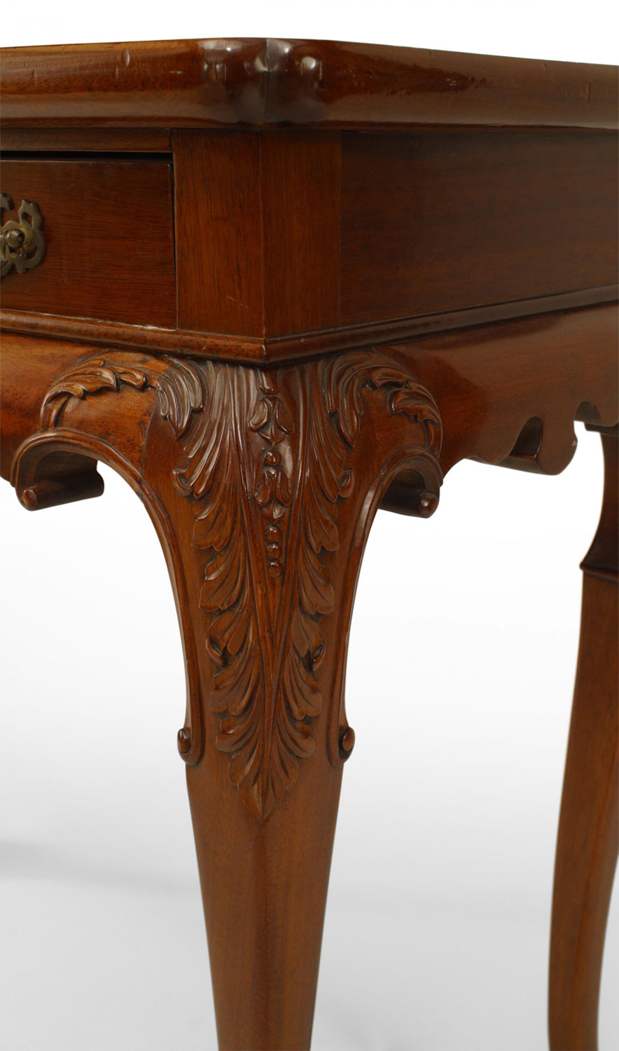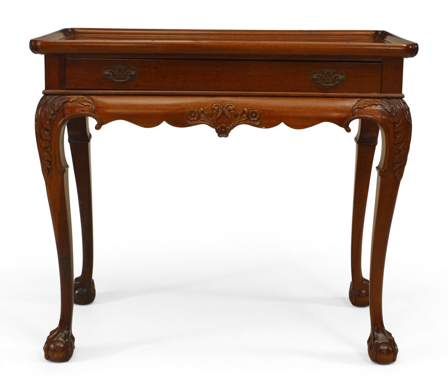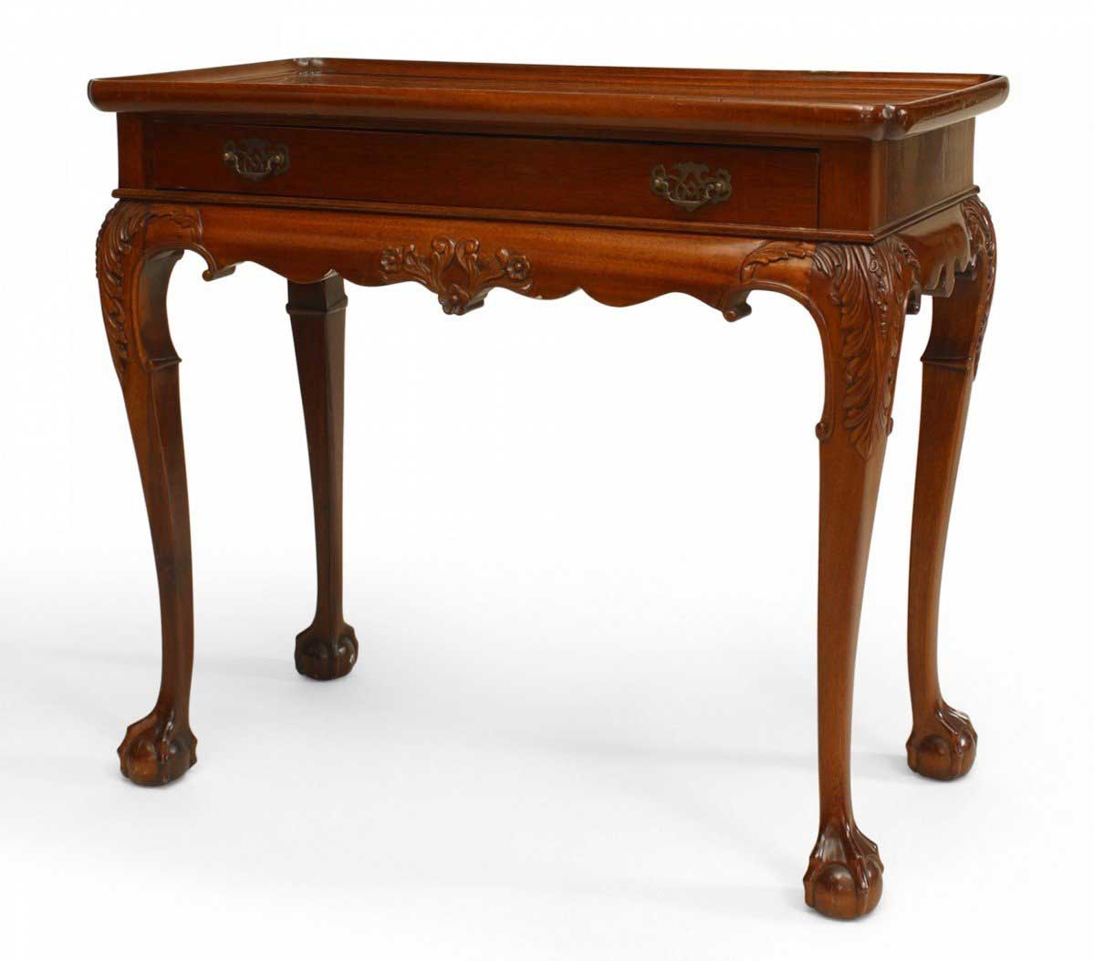 2 English Georgian-style mahogany console tables with raised edge and single drawer (PRICED EACH) (Related items: 053958, 058308)