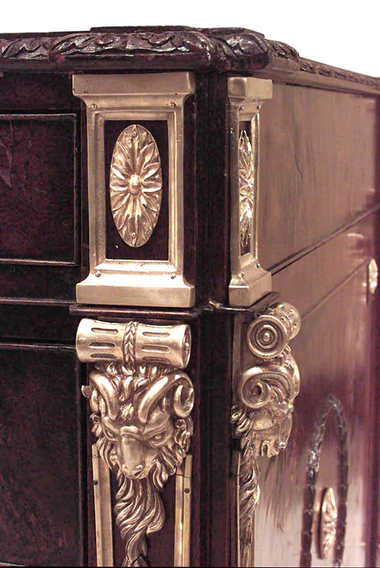 English Georgian style (19th Century) mahogany kneehole desk with bronze ram heads & trim and leather top with carved edge.
