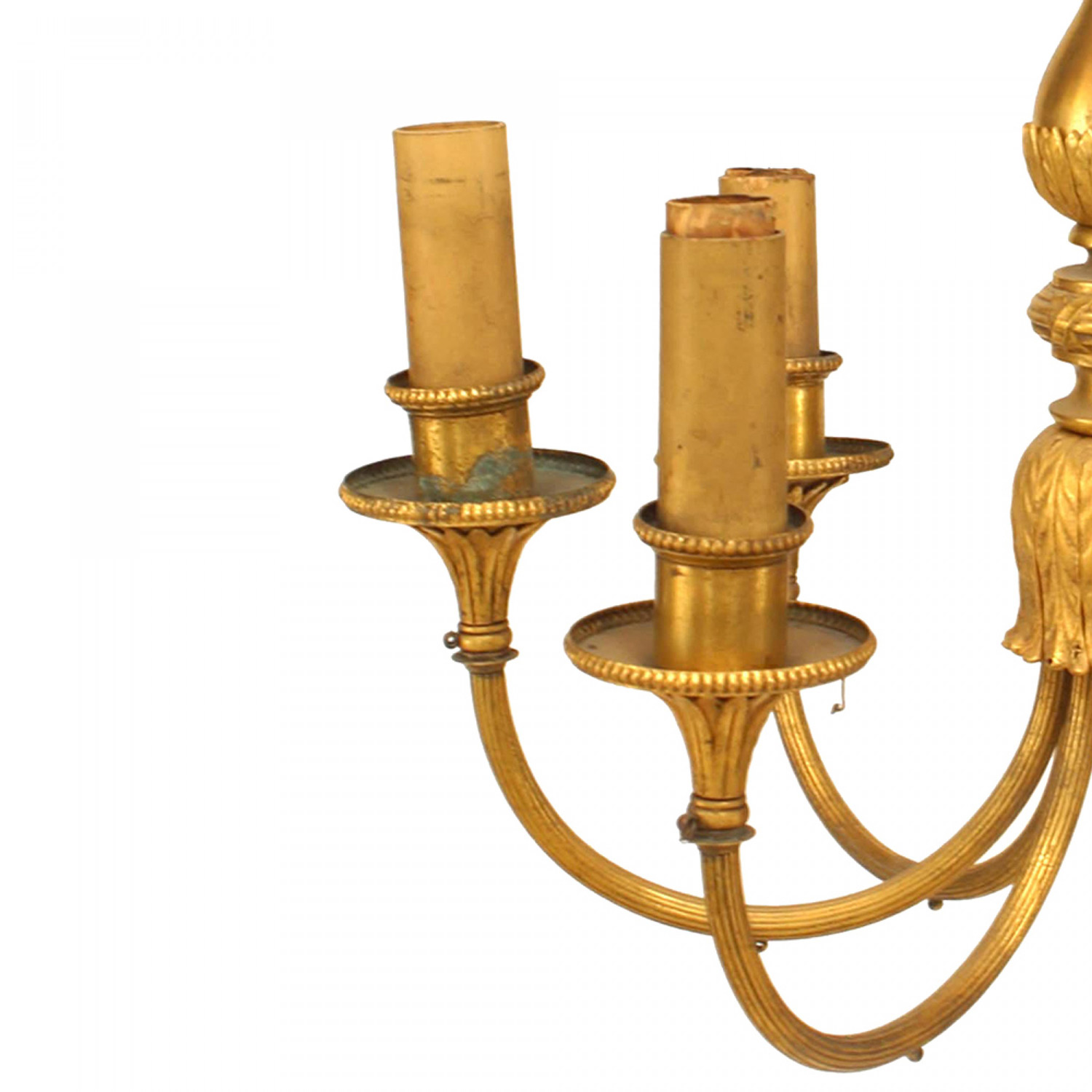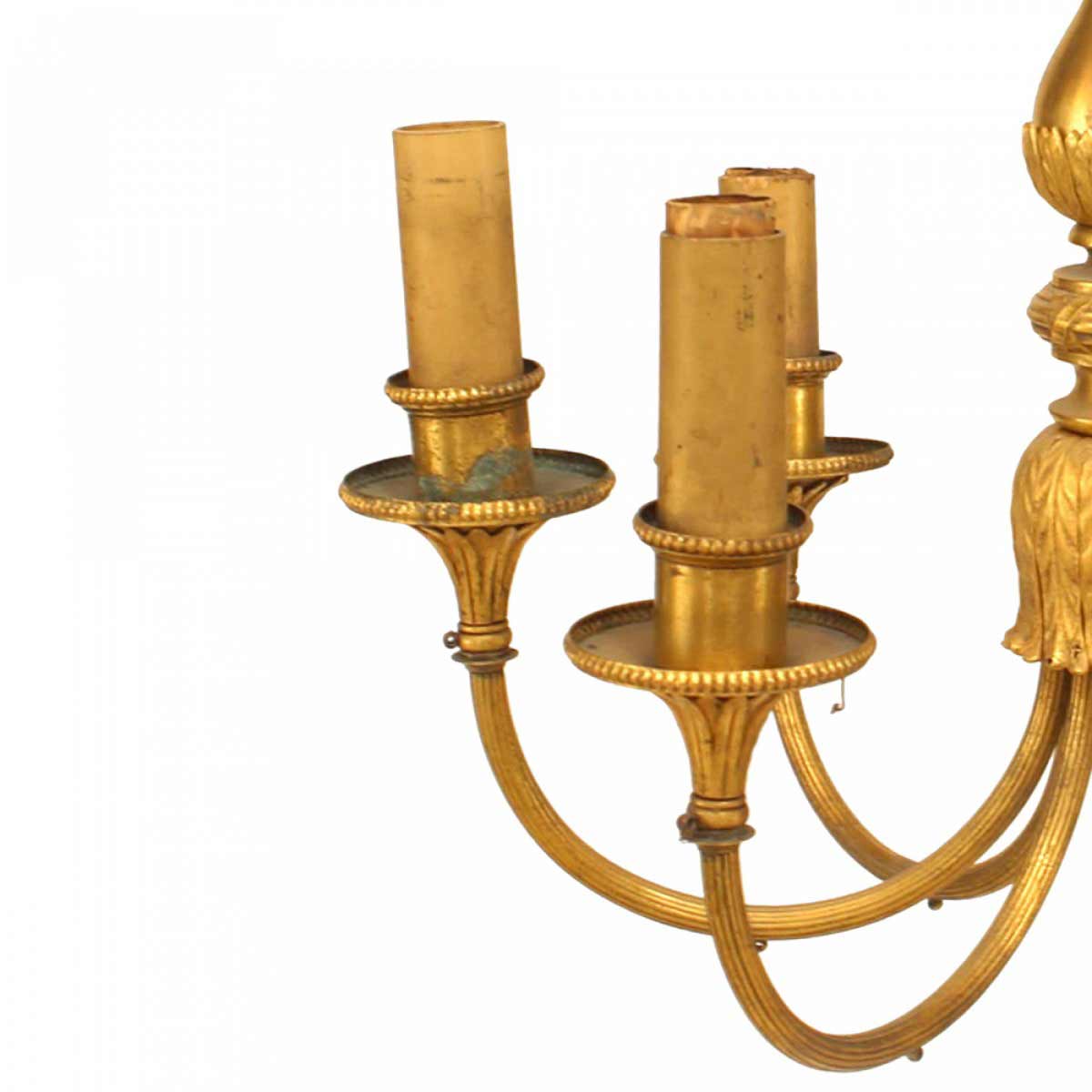 English Georgian-Style (20th Century) gilt bronze 6 arm fluted column chandelier with acanthus leaf trim.