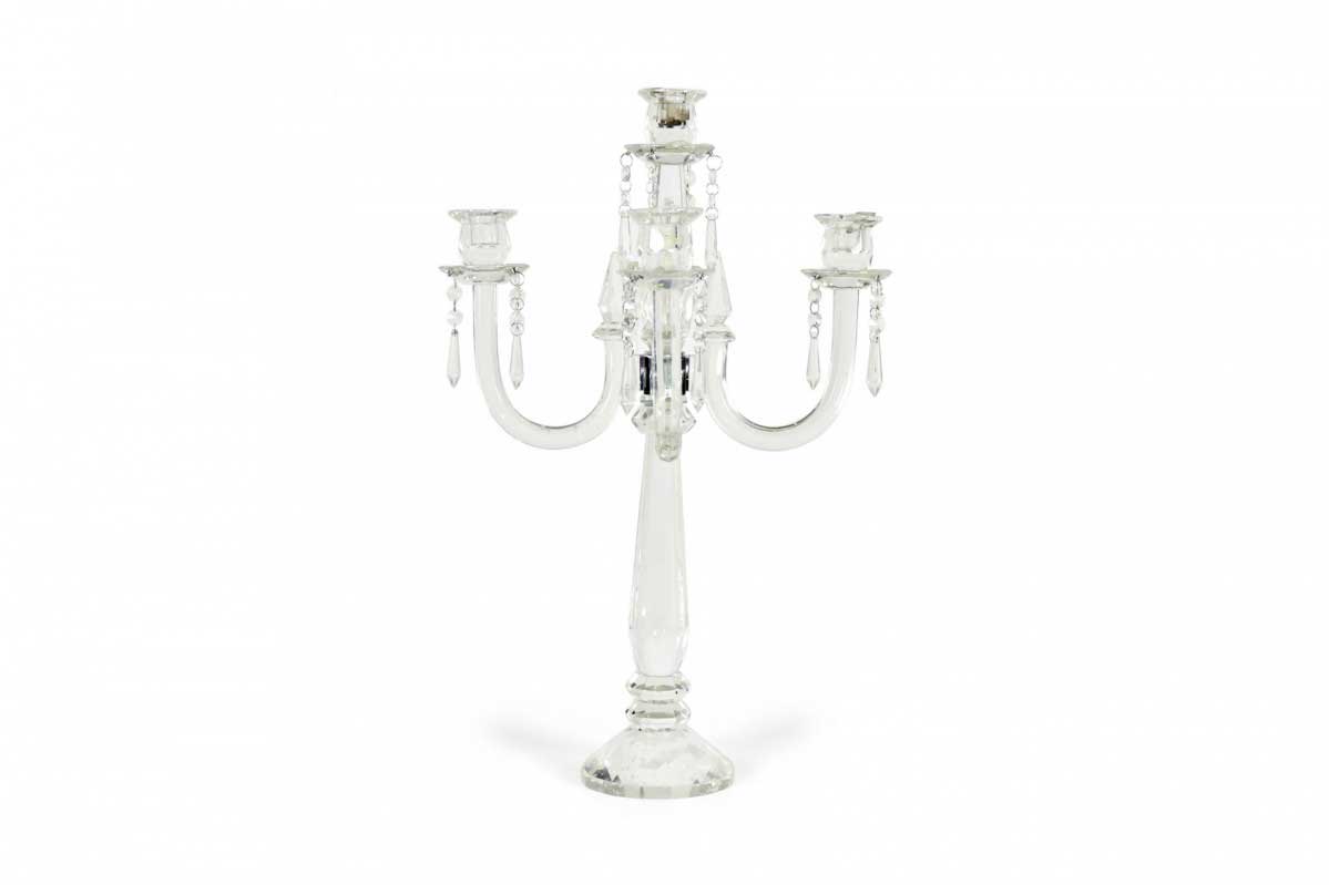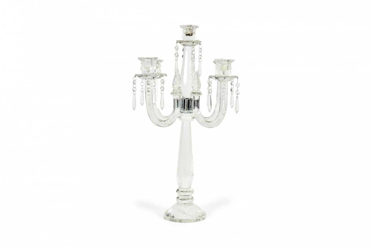 English Georgian Waterford-style (20th Century) crystal 5 arm candelabra with a faceted design.