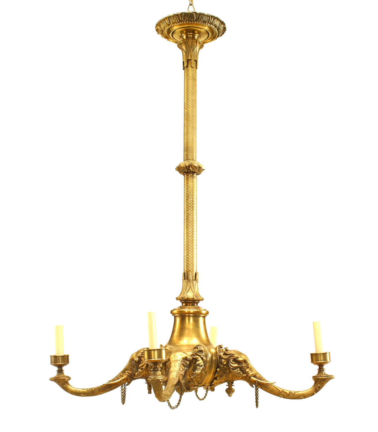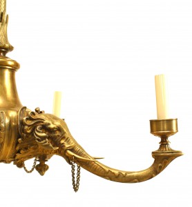 English Regency-Style (Circa 1840) bronze 4 arm chandelier with elephant heads (originally gas, now fitted for electricity)