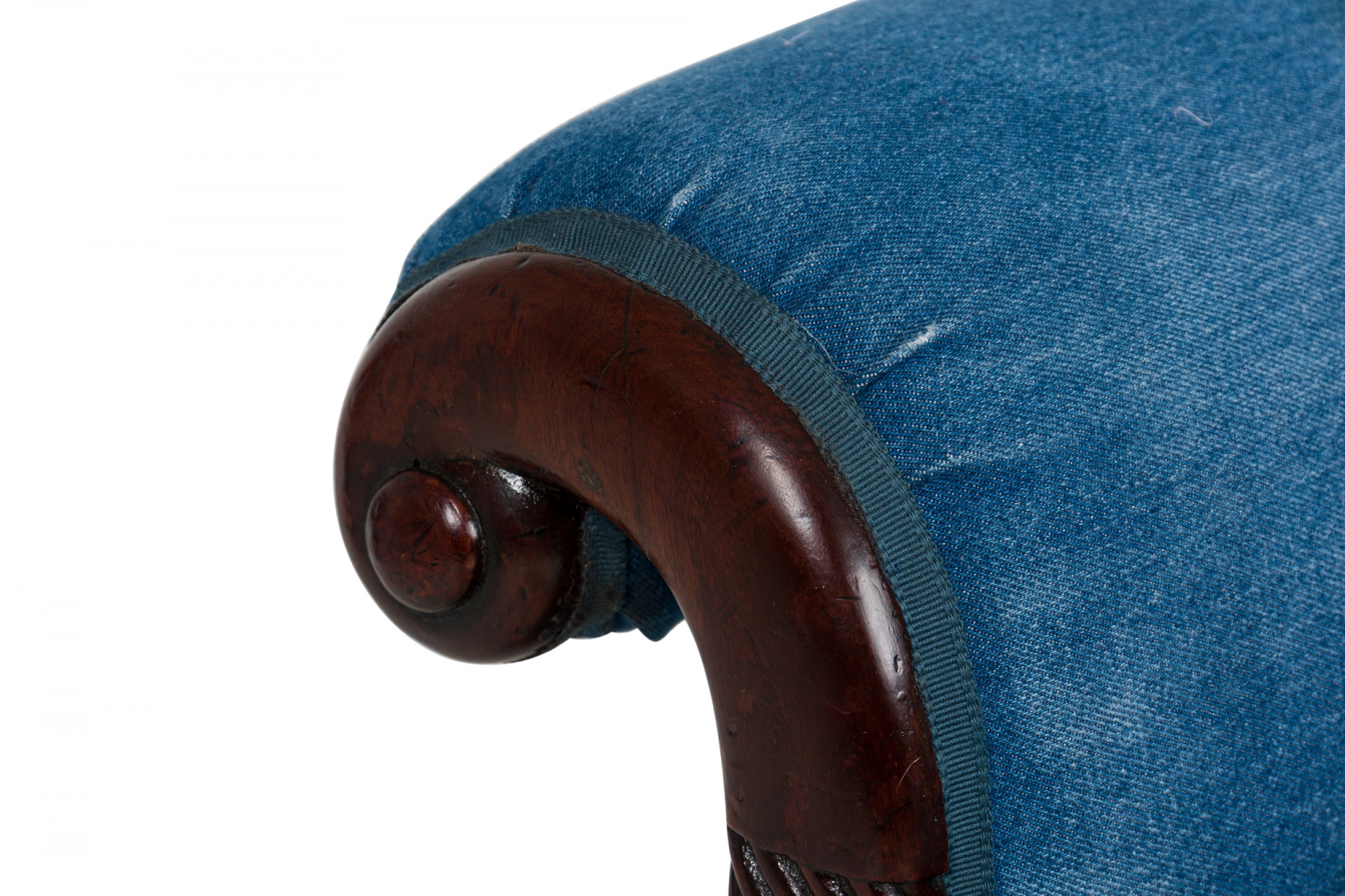 * Condition: This item has been reupholstered in a light blue fabric. Please contact us for an updated image