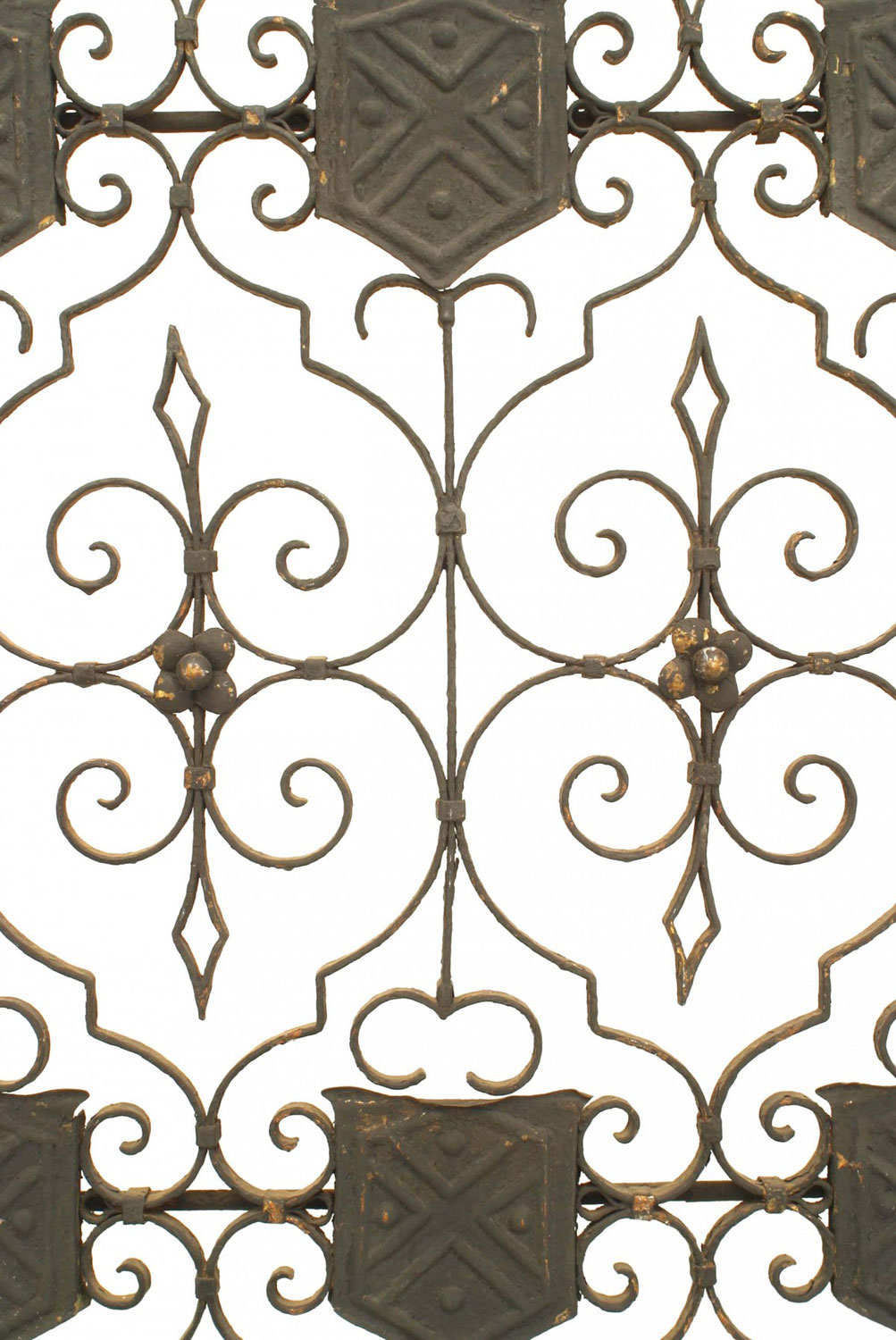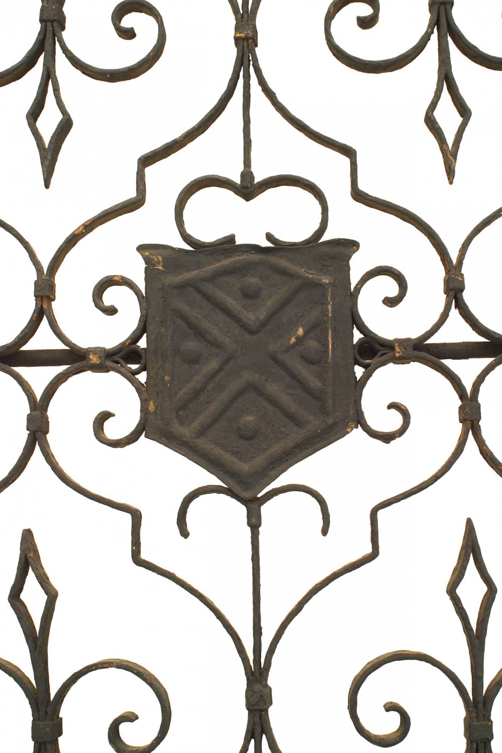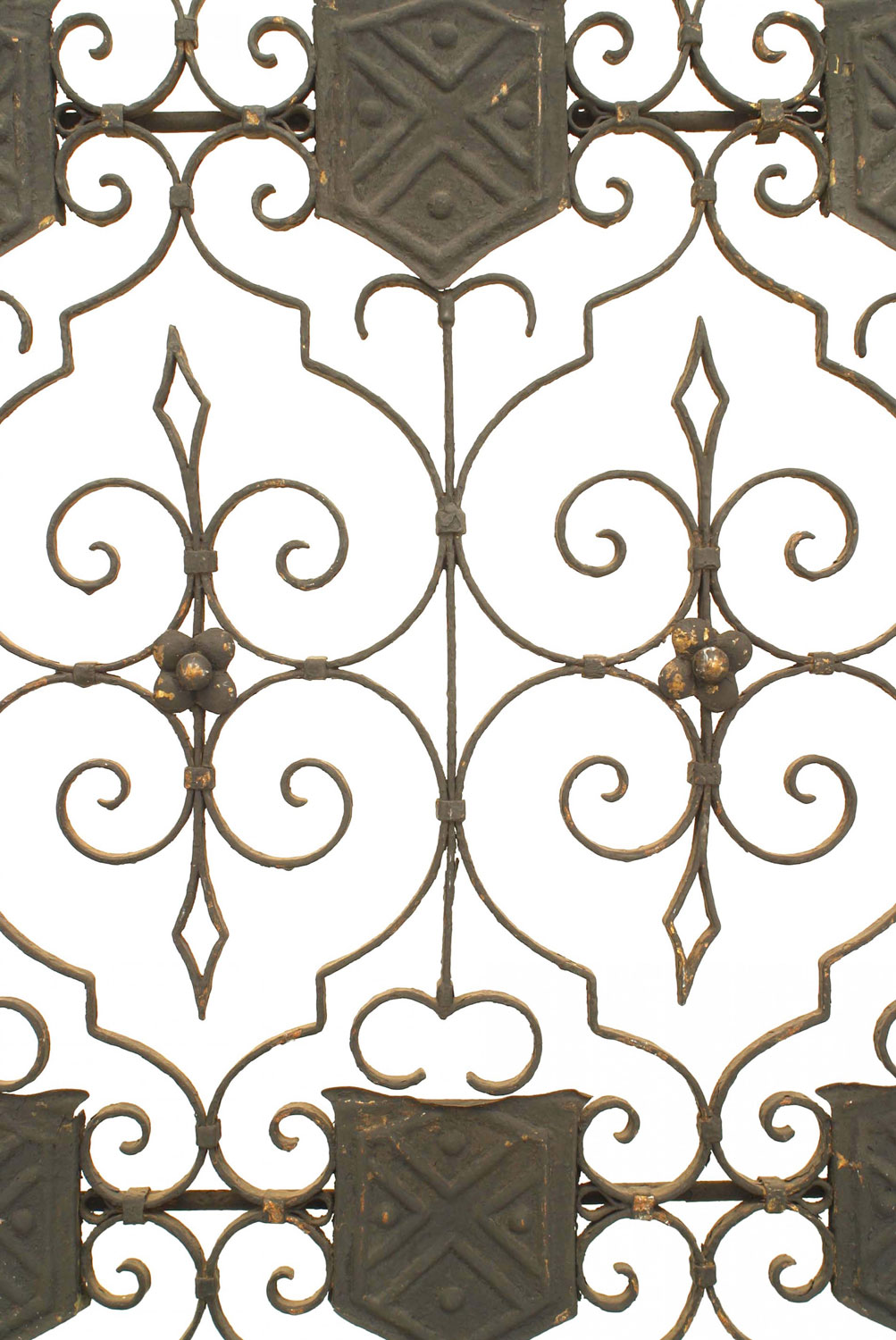 PAIR of English Renaissance style (19th Century) black painted iron gates with fleur de lis filigree design with 9 small shields (PRICED AS PAIR).