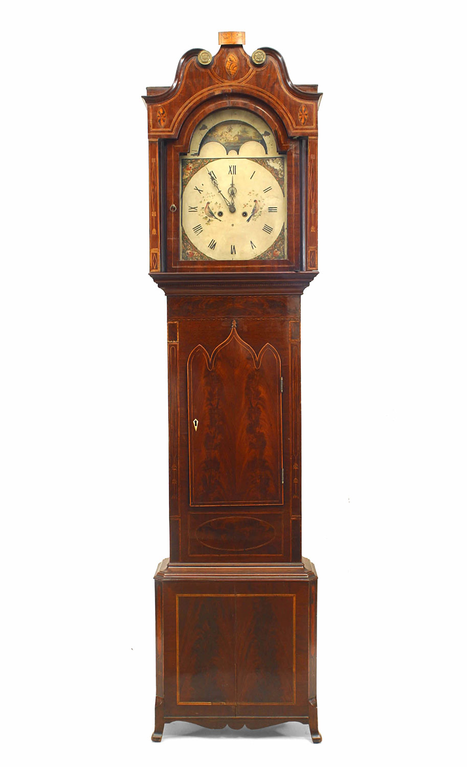 English Sheraton Mahogany Grandfather Clock