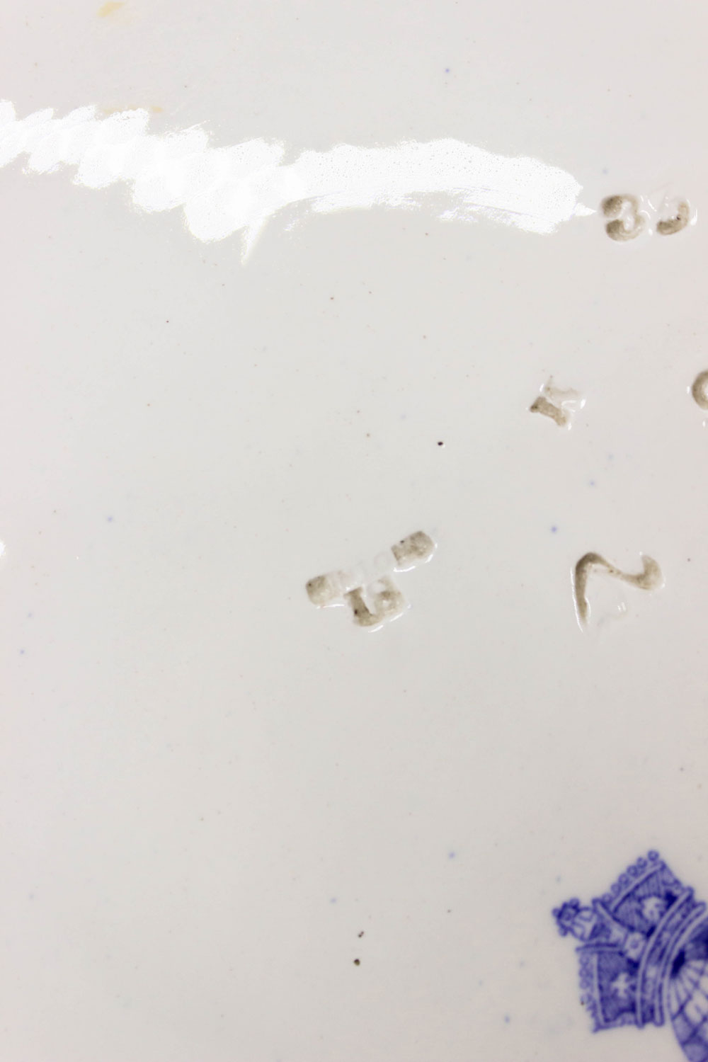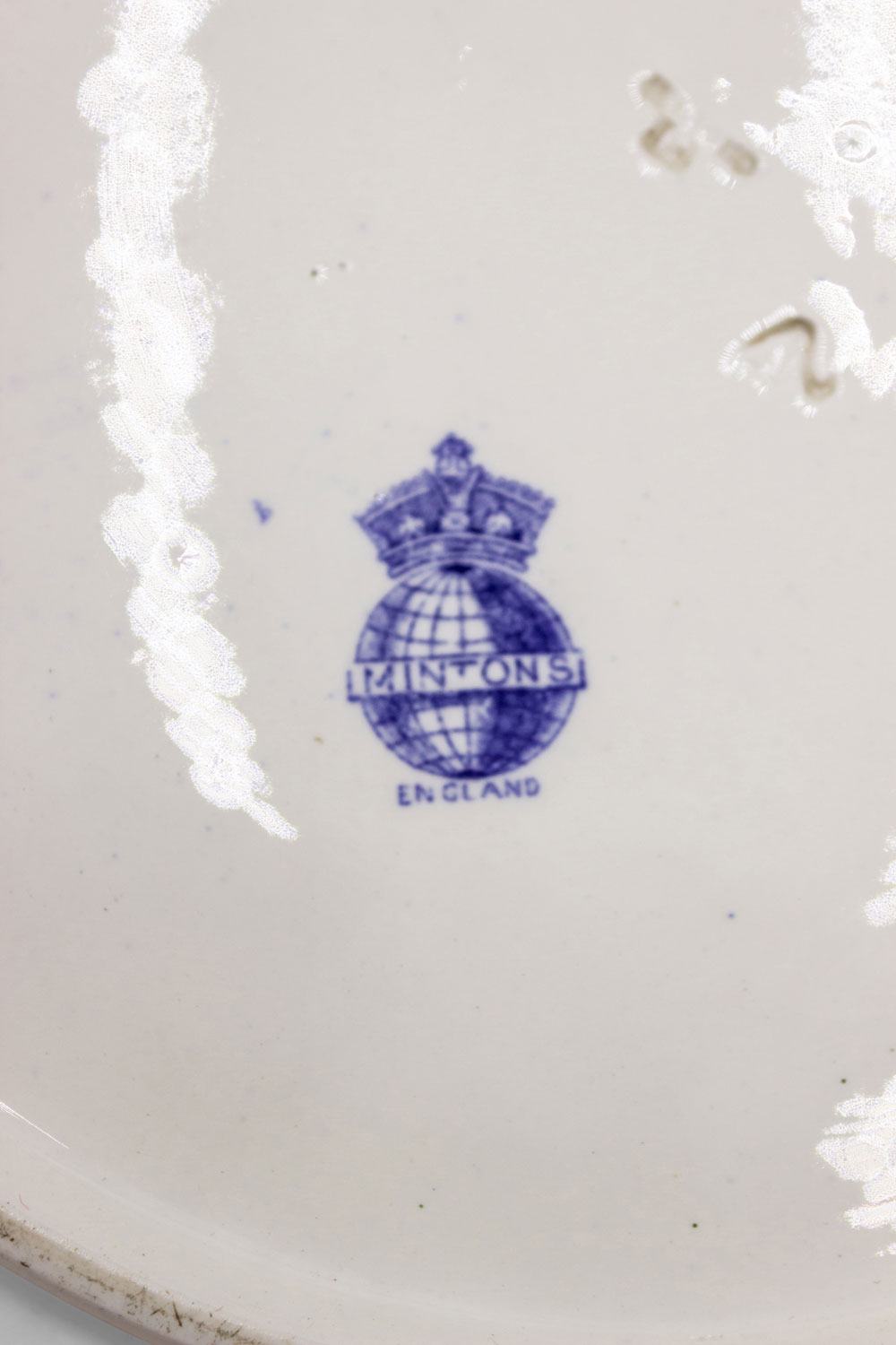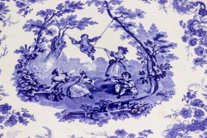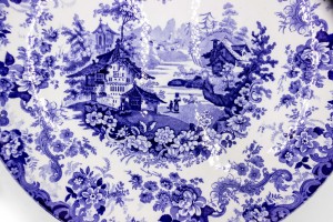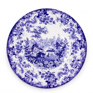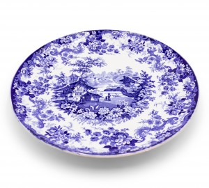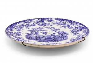 PAIR of English Victorian blue and white ceramic chargers with floral design and landscape scenes. (signed MINTON, one dated 1902, the other 1895-1900) (PRICED AS PAIR).(1 has wall mounting wire back)
