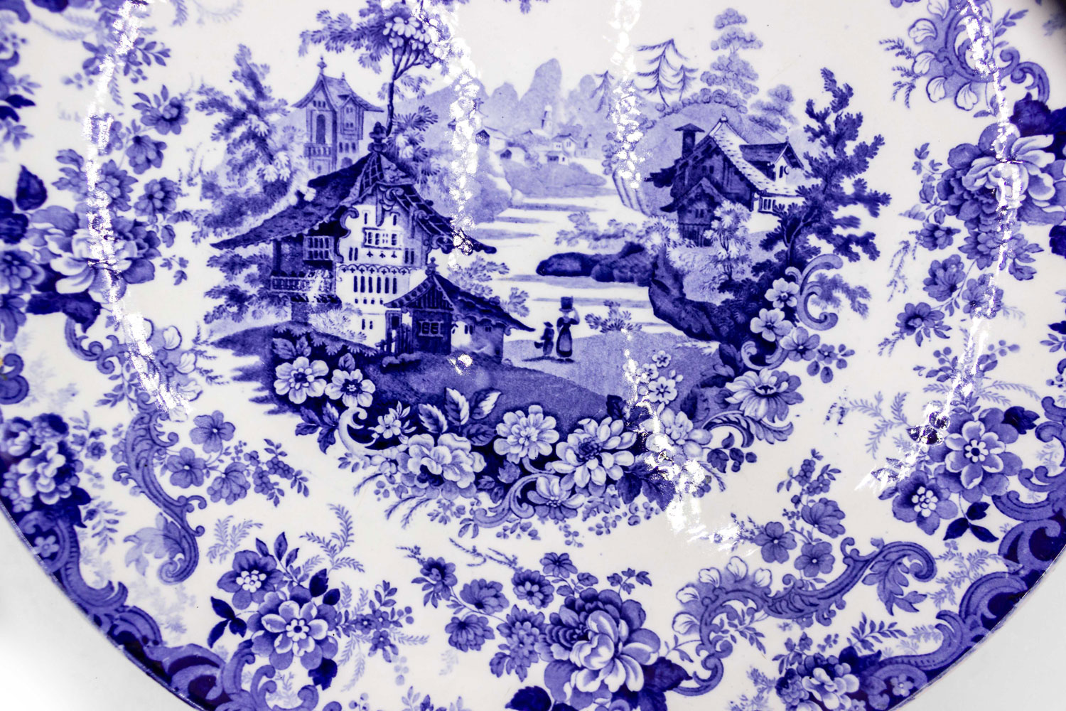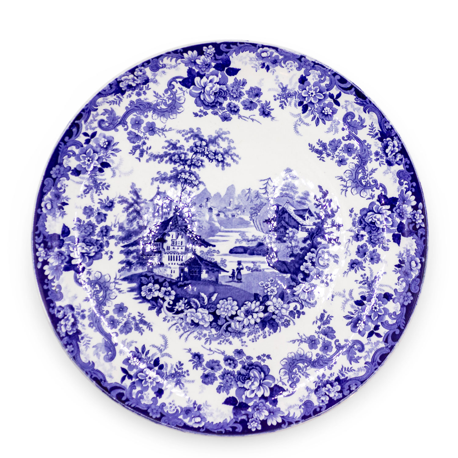 Pair of English Victorian Ceramic Floral Charger Plate
