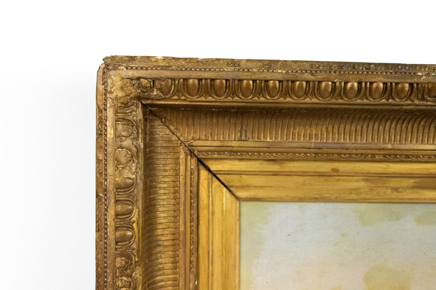 English Victorian gilt framed oil painting of fisherman in boat off coast (Haughton Fitzgerald)