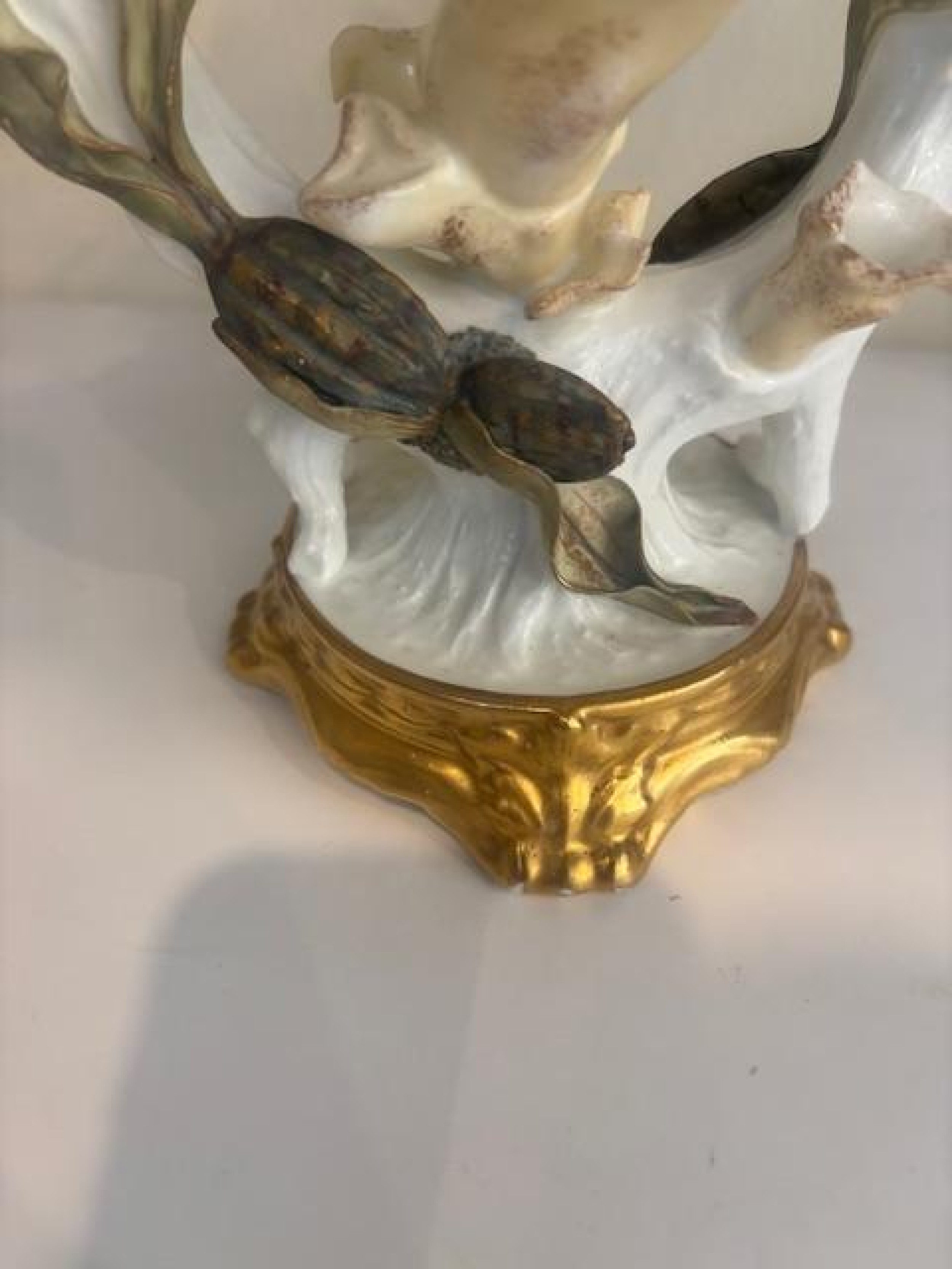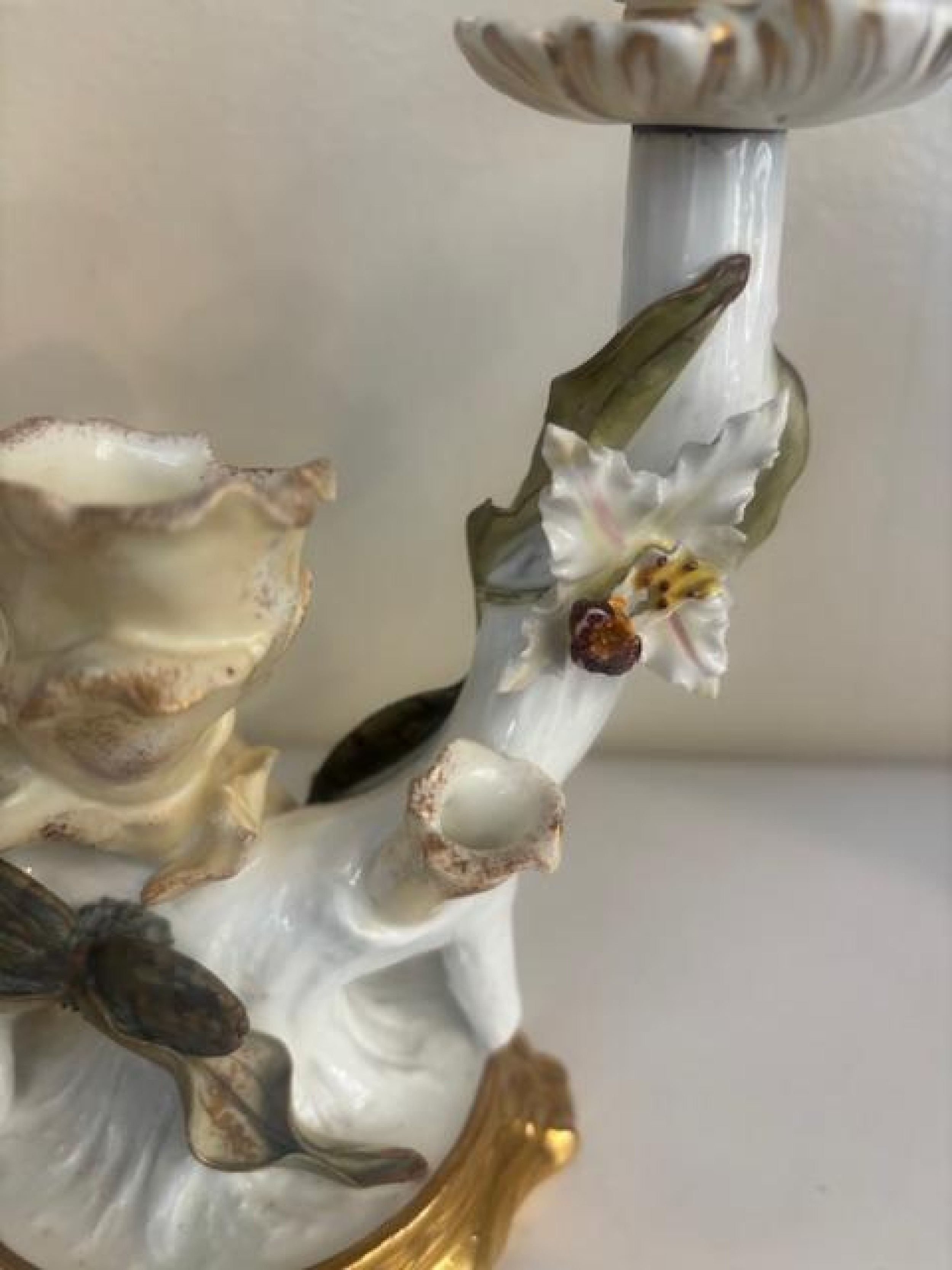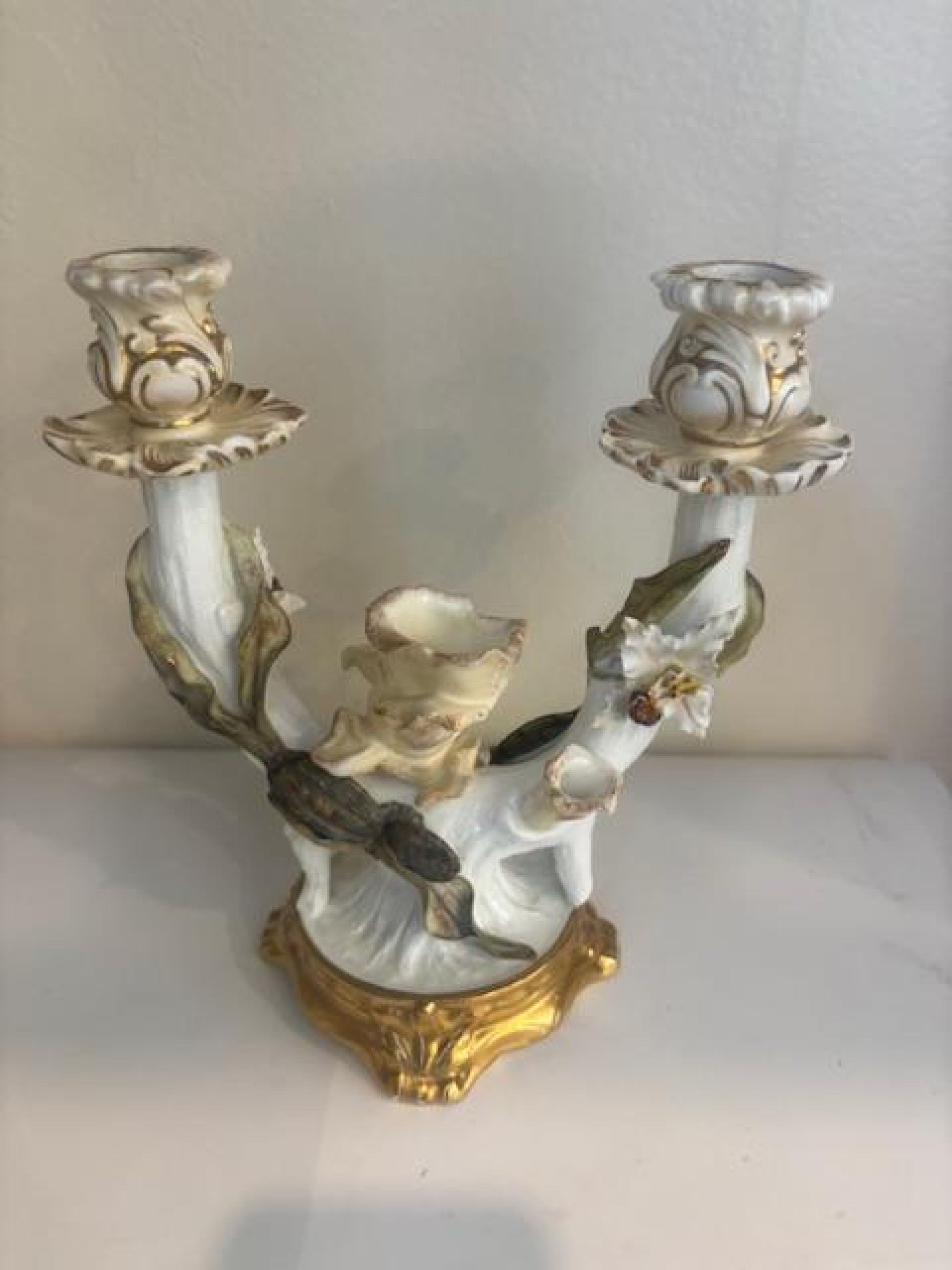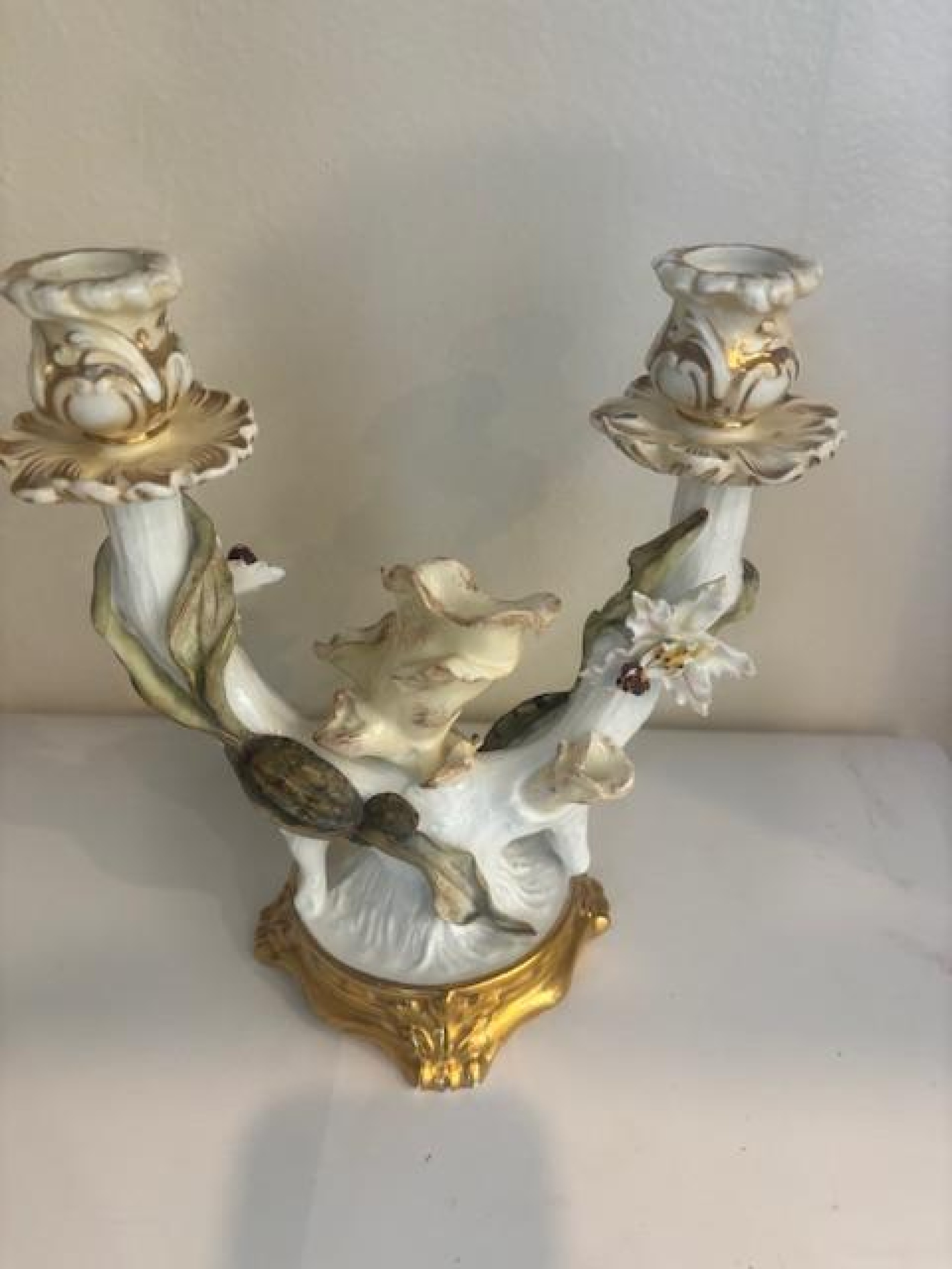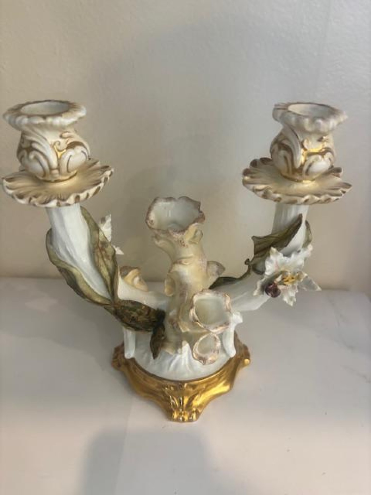 Pair of English Victorian 2 arm Moore porcelain candelabra with a floral design